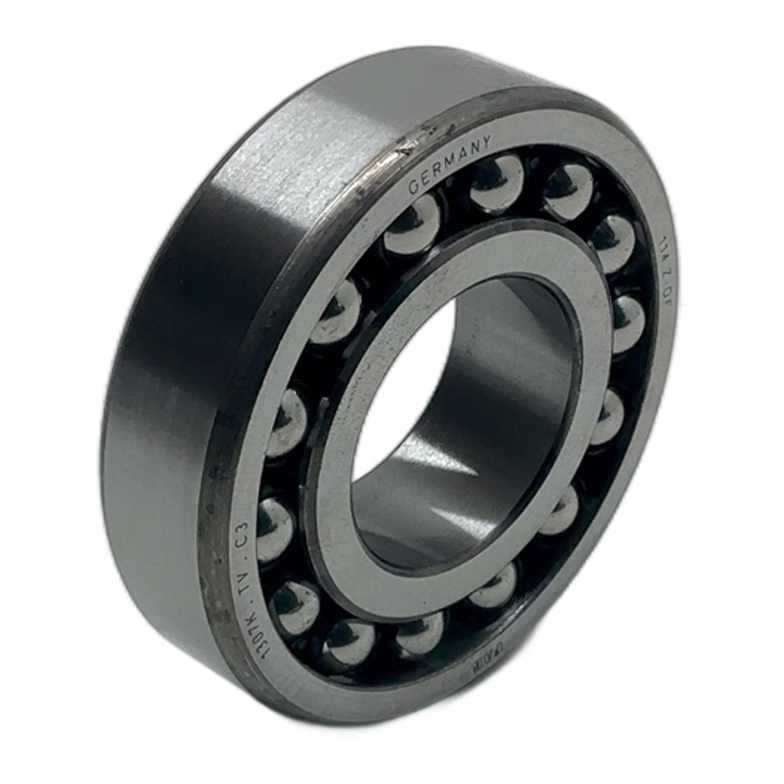 FAG 1307K.TV.C3 Self-Aligning Ball Bearing Description This is a high-performance self-aligning ball bearing, model 1307K.TV.C3, manufactured by FAG in Germany. It is designed to accommodate misalignment between the shaft and housing. This bearing is particularly suited for applications where shaft deflection or mounting errors are expected. This item is new old stock, in excellent condition, and comes in its original, though worn, packaging. Specifications Manufacturer: FAG Type Number: 1307K.TV.C3 Inner Diameter (bore): 35 mm Outer Diameter: 80 mm Width: 21 mm Bore Type: Tapered (1:12) Cage Material: Glass fibre reinforced polyamide 66 Internal Clearance: C3 (greater than normal) Number of Rows: 2 Label Info FAG 1307K.TV.C3 GERMANY Application Ideal for use in industrial machinery such as agricultural equipment, fans and blowers, conveyor systems, and textile machinery where static and dynamic misalignments occur. Country of Origin Made in Germany. CO2 Impact Choosing this reused component over a new one saves approximately 0.9 kg of CO2, which is comparable to driving a car for 4.5 kilometers. Availability In stock. Order now from profideals for expert support and fast delivery. FAQ What does the ‘K’ in 1307K.TV.C3 signify?The ‘K’ indicates that the bearing has a tapered bore with a taper of 1:12. This design allows for mounting on a cylindrical or tapered shaft using an adapter sleeve (e.g., H series) or withdrawal sleeve, providing a secure and precise fit. Why is a C3 internal clearance important for this bearing?The C3 clearance means the radial internal play is greater than standard. This is crucial for applications that involve high speeds, temperature variations between the inner and outer rings, or where a tight press fit is required during installation. It prevents the bearing from seizing due to thermal expansion. What are the typical applications for a FAG 1307 series self-aligning ball bearing?Due to their ability to accommodate misalignment, these bearings are widely used in machinery where shaft deflection is expected. Common applications include agricultural equipment, ventilation fans, paper machines, conveyor systems, and textile machinery. Last Update: Friday, March 13, 2026 profideals is not an authorized distributor, reseller or representative of the products featured on this website. All product names, trademarks, brands and logos used on this site are the property of their respective owners.