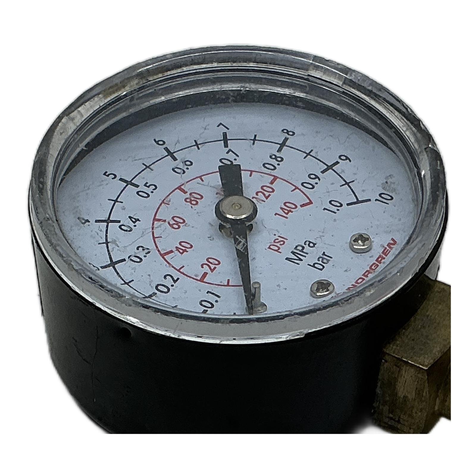 Norgren 10 bar / 140 psi Pressure Gauge Description This is a robust and reliable pressure gauge from Norgren, designed for monitoring pressure in industrial pneumatic applications. It features a clear, easy-to-read dial with dual scales for both bar and psi. The black steel casing and brass connection ensure durability in demanding environments. This gauge is ideal for use with compressed air and other non-corrosive gases. Specifications Manufacturer: Norgren Model Series: 18-013 Pressure Range: 0 – 10 bar / 0 – 140 psi / 0 – 1.0 MPa Connection Type: Bottom Mount (Stem) Casing Material: Steel Wetted Parts: Brass / Bronze Label Info Brand: Norgren Warning: Do not use on oxygen service. Refer to ASME B40.100-1998. Application Perfect for integration into FRL assemblies, air compressors, pneumatic actuators, and general compressed air lines to provide an accurate visual indication of system pressure. Country of Origin Made in USA. CO2 Impact By purchasing this pre-owned item, you are helping to reduce industrial waste and save approximately 0.3 kg of CO2 compared to a new production. This is a sustainable choice for your operations. Availability This unit is in stock and ready for immediate dispatch. Order now from profideals for expert support and fast delivery. FAQ What is the accuracy class of this Norgren gauge? Norgren 18-013 series gauges typically conform to ASME B40.100 Grade B, which corresponds to an accuracy of +/- 3-2-3% of span. This means it is most accurate in the middle half of its scale. What is the connection thread size and type for this model? While the exact model shown is not specified, the Norgren 18-013-013 typically features a 1/4 inch NPT (National Pipe Taper) bottom-mount male thread. Always verify compatibility with your existing fittings. Is this gauge suitable for liquids or only for compressed air? This gauge is designed for use with compressed air and other neutral gases. Its wetted parts, typically brass and a bronze Bourdon tube, are compatible with many non-corrosive media, but it is not recommended for use with aggressive liquids or oxygen, as stated on the warning label. Last Update: Friday, March 13, 2026 profideals is not an authorized distributor, reseller or representative of the products featured on this website. All product names, trademarks, brands and logos used on this site are the property of their respective owners.