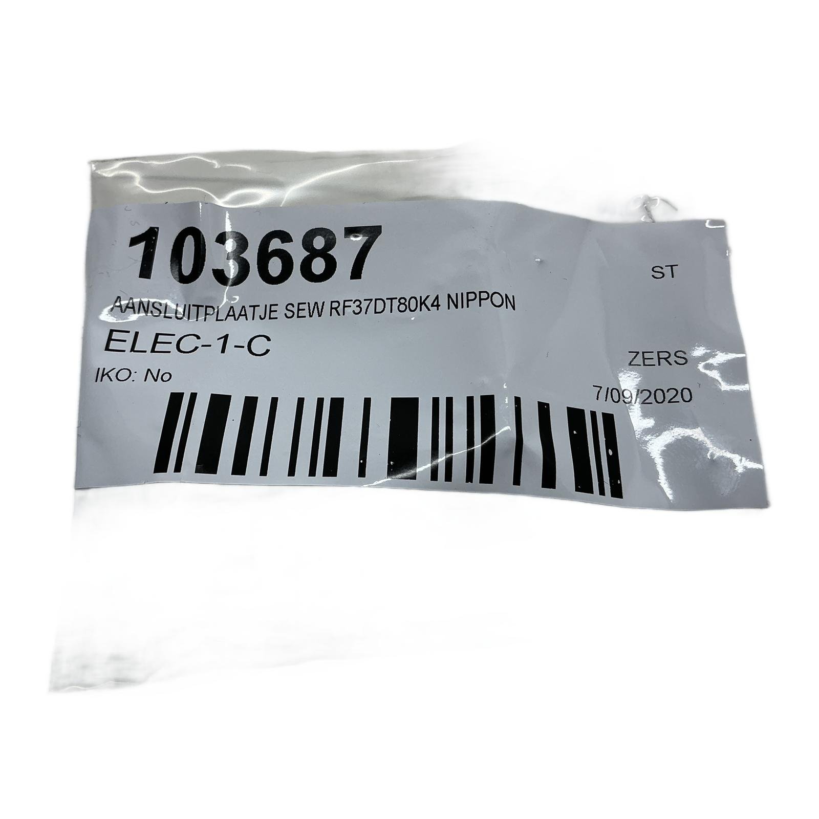 SEW-EURODRIVE Terminal Block for AC Motors Description This is a genuine replacement terminal block, part number 01869806, from SEW-EURODRIVE. It is specifically designed for three-phase AC motors with frame sizes ranging from BG71 to BG100. The block features a durable insulating base with six terminal studs, allowing for standard star (Y) or delta wiring configurations. This component is essential for establishing a secure and safe electrical connection to your SEW motor. Specifications Manufacturer: SEW-EURODRIVE Part Number: 01869806 Product Type: Motor Terminal Block Number of Poles: 6 Compatible Motor Frame Sizes: BG71, BG80, BG90, BG100 Includes: Base, studs, nuts, washers, and 3 connection links Label Info The packaging label indicates the following internal details: Internal Part ID: 103687 Description: AANSLUITPLAATJE SEW RF37DT80K4 NIPPON Internal Code: ELEC-1-C Application This terminal block is used as a direct replacement part in the terminal box of various SEW-EURODRIVE asynchronous motors. It is crucial for maintenance and repair to restore the motor’s original wiring integrity and operational safety. Country of Origin Germany CO2 Impact Choosing this reused component over a new one saves approximately 6.0 kg of CO2. This is comparable to the emissions saved by not driving a car for 30 kilometers, contributing to a more sustainable industrial operation. Availability This item is in stock and ready for immediate dispatch. Order now from profideals for expert support and fast delivery. FAQ Is this terminal block compatible with a DT90L4 motor?Yes, the DT90L4 motor has a frame size of 90, which is within the BG71 to BG100 range this terminal block is designed for. What are the torque specifications for tightening the nuts on the terminal studs?For the M5 studs typically used on this block size, SEW generally recommends a tightening torque of around 2.0 Nm. However, always refer to the specific motor’s operating manual for the exact value to ensure a secure connection without damaging the studs. Can this block be used for a single-phase motor connection?This block is specifically designed for three-phase motors with its 6-terminal layout (U1, V1, W1, U2, V2, W2) for star or delta wiring. It is not suitable for standard single-phase motor connections. Current Date: Friday, March 13, 2026 profideals is not an authorized distributor, reseller or representative of the products featured on this website. All product names, trademarks, brands and logos used on this site are the property of their respective owners.
