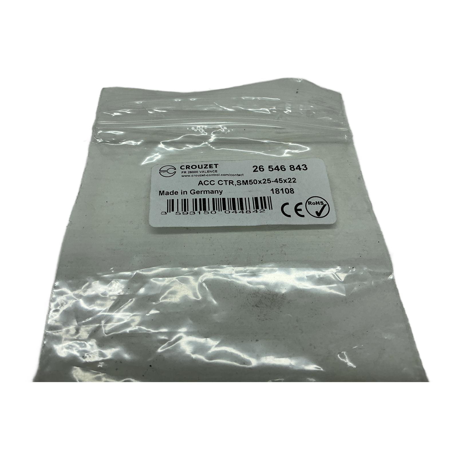 Crouzet Mounting Adapter for Panel Mount Devices Description This is a genuine mounting adapter from Crouzet, part number 26 546 843. It is specifically designed to facilitate the installation of panel-mounted devices, such as timers or counters, by adapting a component with a 50x25mm frame to fit into a smaller, standardized 45x22mm panel cutout. This accessory ensures a clean, secure, and professional fit for your automation projects. Specifications Manufacturer: Crouzet Part Number: 26 546 843 Product Type: Mounting Adapter Frame Panel Cutout Size: 45 x 22 mm Device Frame Size: 50 x 25 mm Material: Plastic Label Info ACC CTR, SM50x25-45×22 Application Ideal for use in control panels, switchboards, and machinery where Crouzet timers, counters, or similar control components need to be installed in pre-existing or standardized smaller cutouts. Country of Origin Made in Germany. CO2 Impact By purchasing this pre-owned component, you are contributing to a more sustainable circular economy and helping to avoid 0.4 kg of CO2 emissions compared to a new purchase. Availability This item is in stock and ready for immediate dispatch. Order now from profideals for expert support and fast delivery. FAQ Which Crouzet product series is this adapter 26 546 843 compatible with?This adapter is designed for Crouzet products with a 50x25mm front frame, such as certain models in their timer and counter series. It adapts them to a smaller standard panel cutout of 45x22mm. Always verify the dimensions of your specific device before purchasing. Does this package include a gasket for a dust or water-tight seal?The adapter itself provides a mechanical fit. Depending on the specific packaging, a thin gasket may be included to improve the seal, but it is primarily designed to adapt the cutout size. For applications requiring a specific IP rating, you should consult the datasheet of the main device (the timer or counter) and use any recommended sealing accessories. What is the material of this adapter and what are its environmental operating conditions?The adapter is made of a durable, black industrial-grade plastic. It is designed to operate within the same environmental conditions as the panel-mounted devices it supports, typically in standard industrial environments regarding temperature and humidity. It is not intended for use in extreme temperatures or corrosive atmospheres. profideals is not an authorized distributor, reseller or representative of the products featured on this website. All product names, trademarks, brands and logos used on this site are the property of their respective owners. Laatst bijgewerkt: March 13, 2026