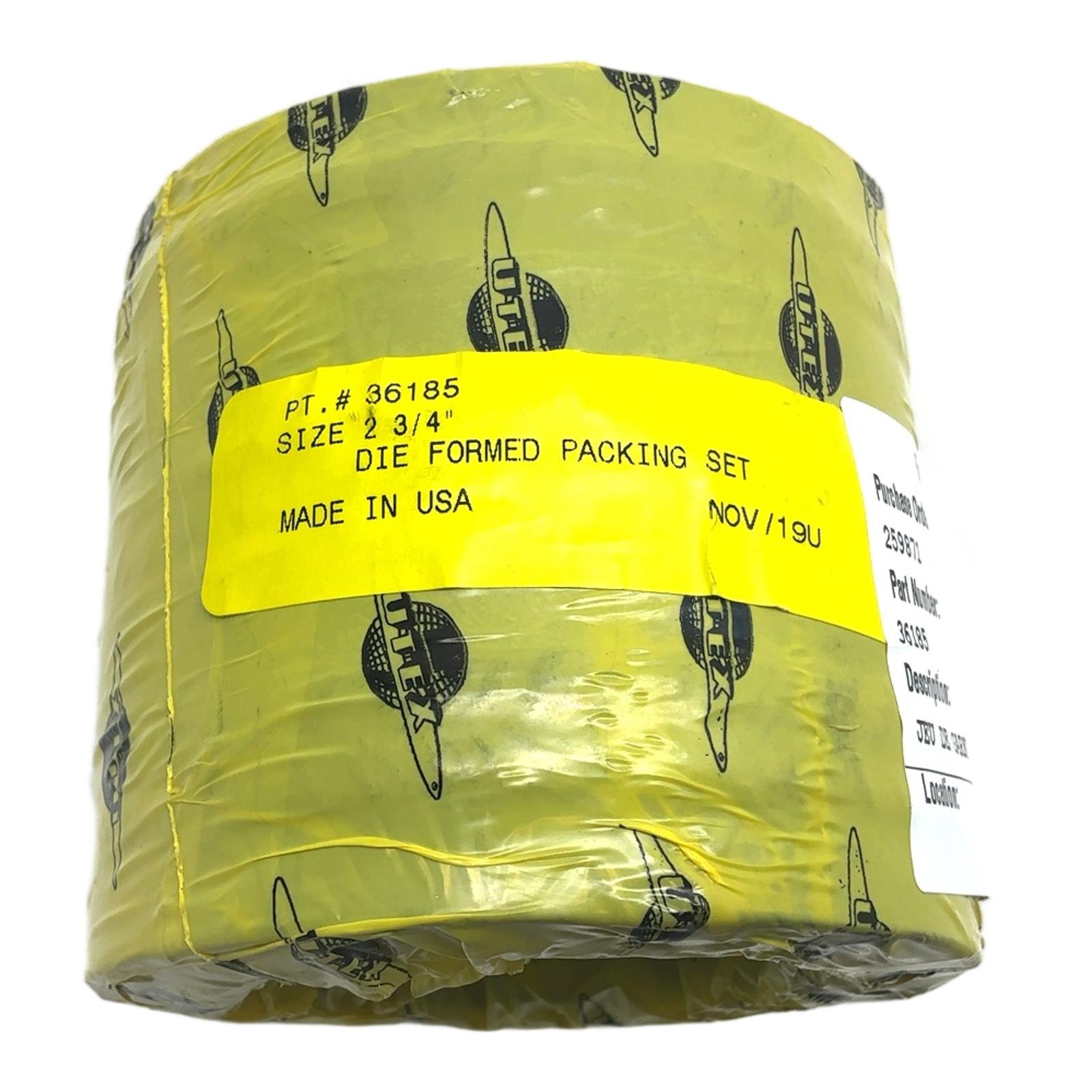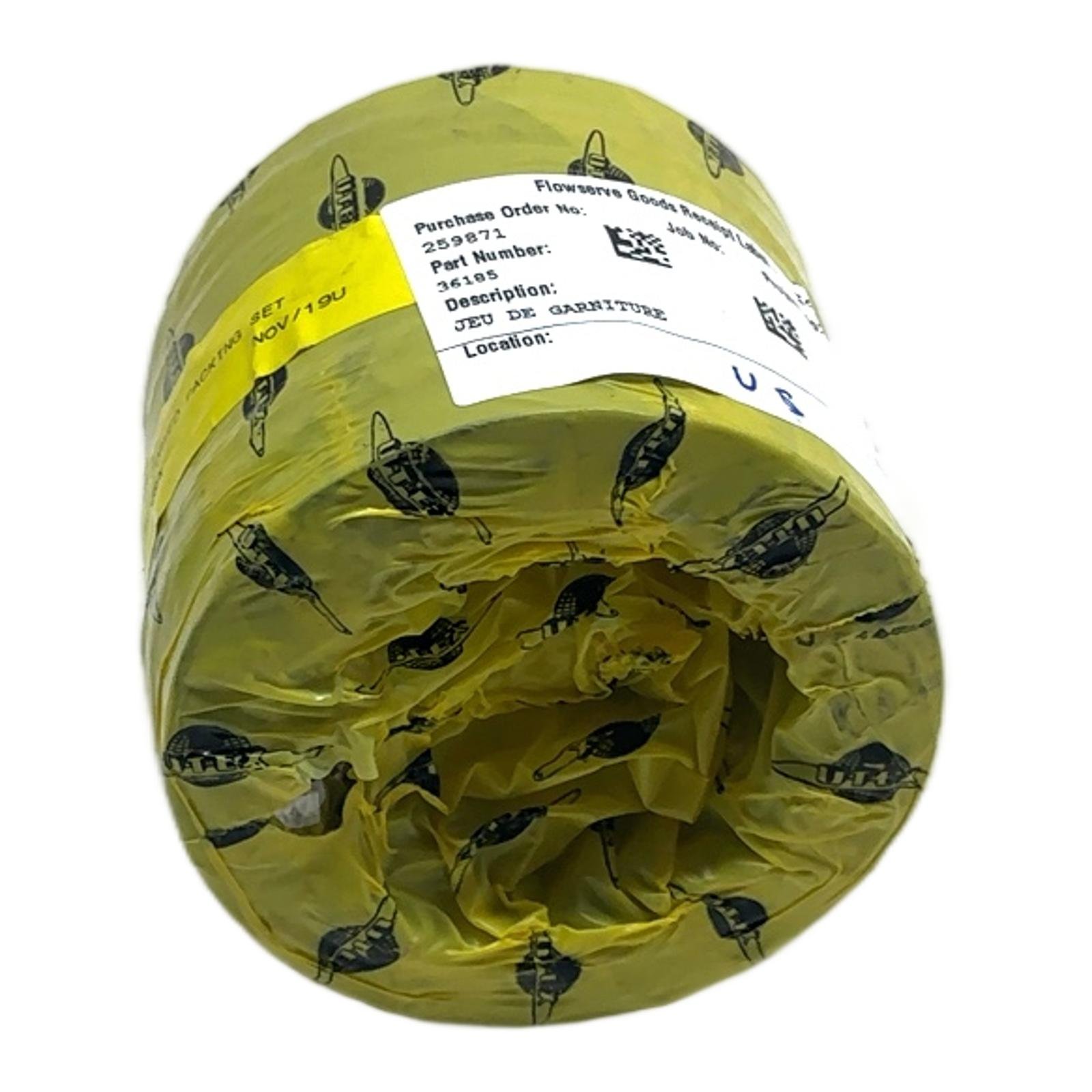 Flowserve 36185 Die Formed Packing Set Description This is a genuine Flowserve Die Formed Packing Set, part number 36185. It is designed to provide a high-integrity seal for industrial pumps, ensuring reliability and preventing leakage. This specific set has a size of 2 3/4 inches and is noted for its application in Flowserve UTE 127×70 series pumps. Manufactured in the USA, it represents the quality and engineering excellence expected from Flowserve. Specifications Manufacturer: Flowserve Part Number: 36185 Product Type: Die Formed Packing Set Size: 2 3/4 inch Intended Equipment: Flowserve Pump Type UTE 127×70 Label Info PT. #: 36185 Description: JEU DE GARNITURE (French for Packing Set) Date Code: NOV/19U (November 2019) Application Primarily used for creating a dynamic seal around the shaft of industrial pumps to prevent fluid leakage. It is essential for maintenance and repair of compatible Flowserve pump models to maintain operational efficiency and safety. Country of Origin MADE IN USA. CO2 Impact Opting for this unused surplus component prevents the emission of approximately 4.5 kg of CO2 required for manufacturing a new one. This saving is comparable to the emissions of a car driving over 22 kilometers. Availability This item is in stock and ready for immediate dispatch. Order now from profideals for expert support and fast delivery. FAQ What is the typical material composition of a Flowserve die-formed packing set?While the exact composition for part 36185 isn’t specified on the label, these sets are typically made from high-quality materials like flexible graphite or other carbon-based composites, chosen for their excellent sealing properties, chemical resistance, and temperature tolerance. Is this packing set suitable for high-temperature or high-pressure applications?Die-formed graphite packing sets are generally well-suited for both high-temperature and high-pressure services. However, you should always verify the specific pressure and temperature ratings for your Flowserve UTE 127×70 pump model to ensure compatibility. Can I use this packing set for a pump other than the Flowserve UTE 127×70?It is strongly recommended to use this packing set only for the equipment specified by the manufacturer. Using it in an incompatible pump could lead to improper sealing, premature failure, and potential equipment damage. profideals is not an authorized distributor, reseller or representative of the products featured on this website. All product names, trademarks, brands and logos used on this site are the property of their respective owners. The depiction, description or sale of products featuring these names, trademarks, brands and logos is for identification purposes only and is not intended to indicate any affiliation with or authorization by any rights holder. Last Update: Friday, March 13, 2026