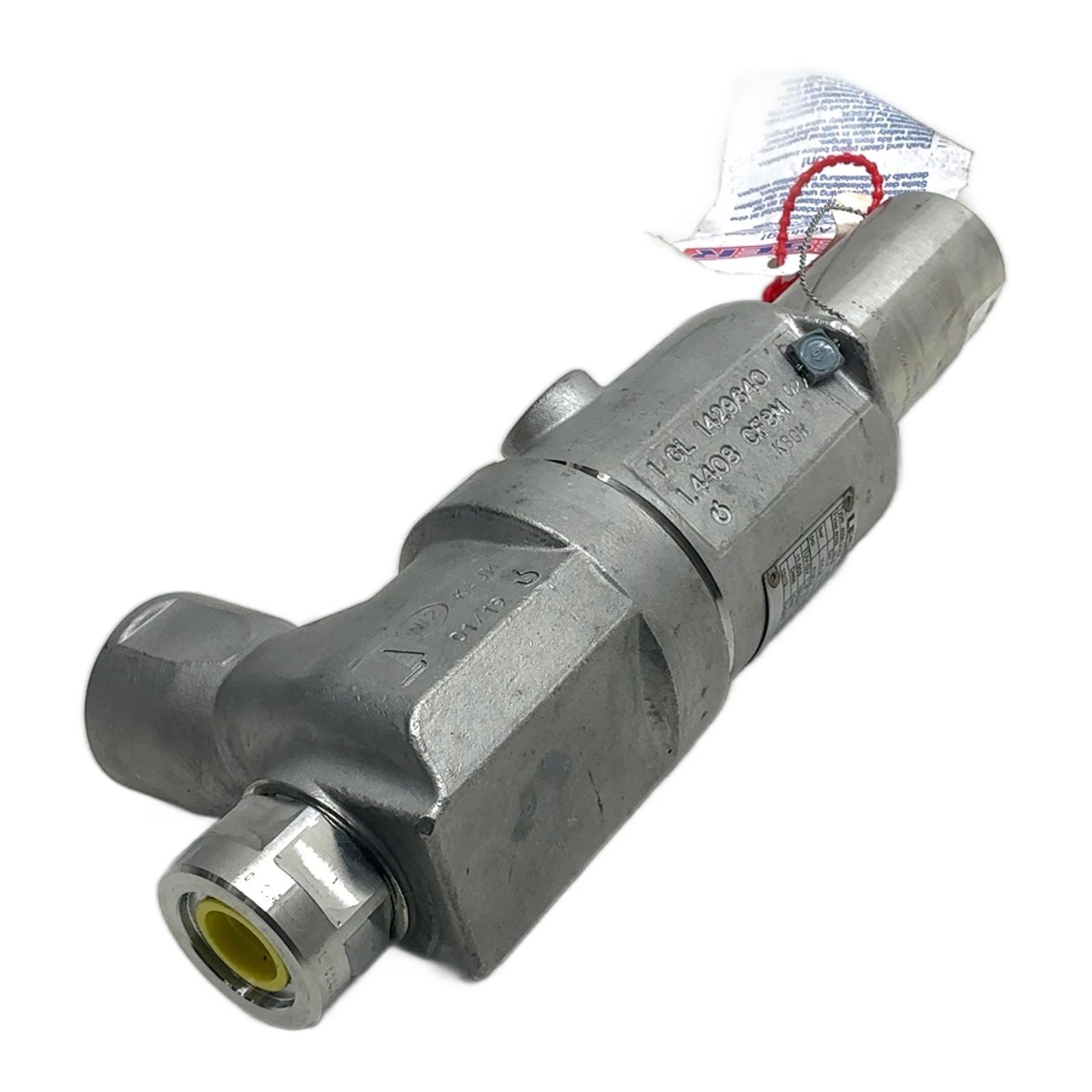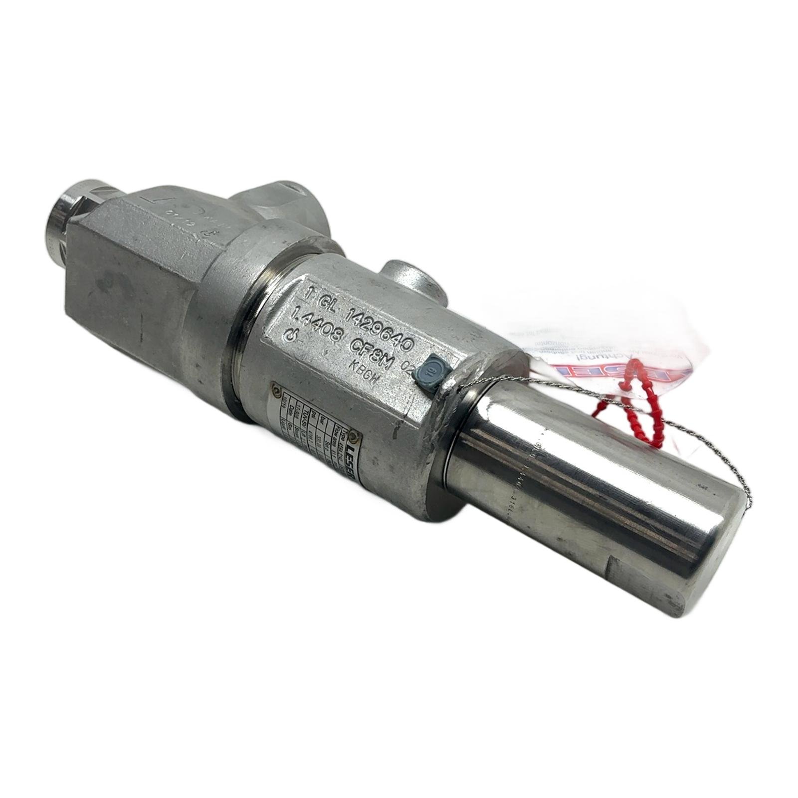 LESER 4594.2142 High-Pressure Safety Relief Valve Description The LESER Type 4594.2142 is a robust and reliable safety relief valve from the Compact Performance series, engineered for high-pressure applications. Constructed from high-grade 1.4404 / 316L stainless steel, it offers excellent corrosion resistance and durability. This valve is designed to protect pressure vessels and piping systems from overpressure by automatically discharging excess pressure. Specifications Set Pressure: 330 bar (4786.2 psig) Inlet Connection: G 1/2 inch Outlet Connection: G 1 inch Body Material: 1.4404 / 316L Stainless Steel Flow Area: 63.6 mm2 Orifice (d0): 9.0 mm Temperature Range: up to 20 deg C (68 deg F) per tag Pressure Rating Inlet: PN 500 Pressure Rating Outlet: PN 160 Label Info Manufacturer: LESER Type: 4594.2142 Serial Number: 11612887 Job Number: 20428734/10 Configuration Code: L20L44MA3H01 Date of Manufacture: October 2019 Application This valve is ideally suited for pressure protection in various industries, including chemical, petrochemical, oil and gas, and power generation, especially in systems handling high-pressure liquids and gases. Country of Origin Made in Germany. CO2 Impact By purchasing this refurbished or surplus valve, you are contributing to a circular economy and avoiding approximately 5.0 kg of CO2 emissions associated with the production of a new one. Availability This item is in stock and ready for immediate dispatch. Order now from profideals for expert support and fast delivery. FAQ Question? Can the set pressure of this valve be adjusted? Answer: Safety relief valves are factory-set and sealed to a specific pressure (330 bar in this case). Adjusting the set pressure requires specialized equipment and expertise, and it will break the factory seal. Any modification must be done by an authorized service center to ensure safety and compliance with regulations. Question? What does the body material 1.4404 / 316L signify for this valve’s application? Answer: The use of 1.4404 / 316L stainless steel provides excellent corrosion resistance against a wide range of chemicals, acids, and saltwater. This makes the valve suitable for demanding environments such as chemical processing, offshore applications, and the food and beverage industry, where material purity and resistance to aggressive media are critical. Question? Is this valve suitable for both liquid and gas service? Answer: Yes, the data plate indicates performance coefficients for steam, gas, and liquid (0.83 for gas, 0.61 for liquid). This means the valve has been tested and certified for use with all three media types, making it a versatile choice for various overpressure protection scenarios. Last Update: Friday, March 13, 2026 profideals is not an authorized distributor, reseller or representative of the products featured on this website. All product names, trademarks, brands and logos used on this site are the property of their respective owners. The depiction, description or sale of products featuring these names, trademarks, brands and logos is for identification purposes only and is not intended to indicate any affiliation with or authorization by any rights holder.