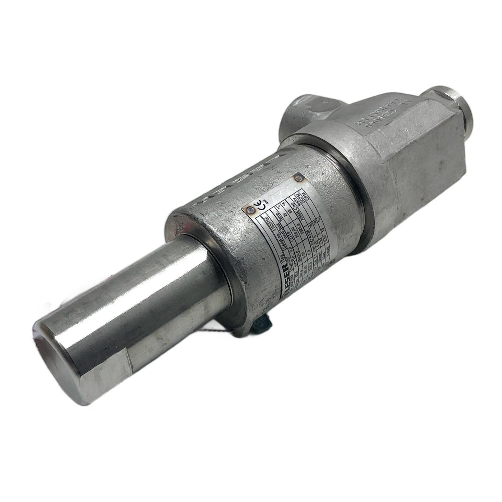 LESER 4594.2162 Stainless Steel Safety Relief Valve Description The LESER 4594.2162 is a compact and high-performance safety valve from the Type 459 series, engineered for reliable overpressure protection in a wide range of industrial systems. Manufactured from high-grade 1.4404 / 316L stainless steel, it offers excellent resistance to corrosion and is suitable for steam, gas, and liquid media. This valve is factory-set to a pressure of 250 bar, ensuring precise and dependable operation. Order now from profideals for expert support and fast delivery. Specifications Manufacturer: LESER Type: 4594.2162 Set Pressure: 250 bar (3625.9 psig) Inlet Connection: G 1/2 inch Outlet Connection: G 1 inch Body Material: 1.4404 / 316L Stainless Steel Pressure Rating Inlet: PN 250 Pressure Rating Outlet: PN 160 Label Info Serial Number: 11639766 Job Number: 20434044/10 Year of Manufacture: 2019 Application This safety valve is ideal for protecting pressure vessels, pipelines, and other equipment in chemical plants, power generation facilities, and general process engineering applications where high-pressure and corrosive media are present. Country of Origin Made in Germany. CO2 Impact Opting for this component saves approximately 5.0 kg of CO2 compared to manufacturing a new one. This saving is equivalent to driving a car for about 25 kilometers. Availability This item is in stock and ready for immediate dispatch. FAQ What is the significance of the body material 1.4404/316L?This is a high-grade austenitic stainless steel known for its excellent corrosion resistance, particularly against chlorides and other industrial chemicals, making it suitable for a wide range of aggressive media. Can the set pressure of 250 bar be adjusted in the field?Safety relief valves are precision safety devices. Any adjustment to the set pressure must be performed by a qualified technician with proper test equipment to ensure it operates correctly and safely. Unauthorized tampering is highly discouraged and can void certifications. What types of media is this valve suitable for?As indicated on the nameplate data (Steam, Gas, Liquid), this valve is designed for versatile use with various media, which is typical for valves made from 316L stainless steel. profideals is not an authorized distributor, reseller, or representative of the products featured on this website. All product names, trademarks, brands, and logos used on this site are the property of their respective owners. Last Update: Friday, March 13, 2026