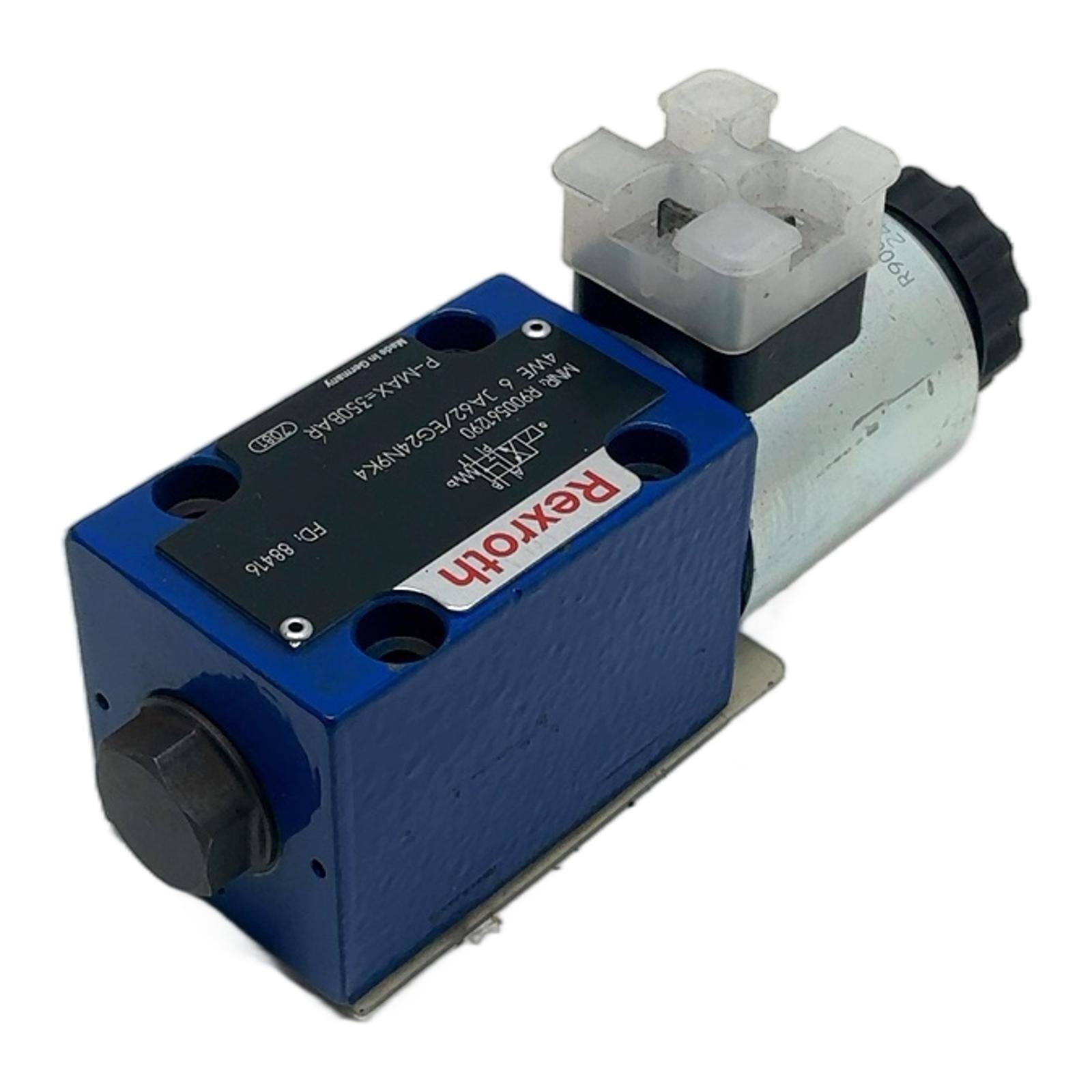 Rexroth 4WE 6 Directional Spool Valve Description This is a direct solenoid operated directional spool valve, type 4WE 6 JA62/EG24N9K4 from Rexroth. It is a high-performance component designed for controlling the start, stop, and direction of fluid flow in a hydraulic system. This valve is size 6 (NG6) and operates with a 24V DC solenoid, capable of handling pressures up to 350 bar. Its robust design ensures reliability in demanding industrial environments. Specifications Manufacturer: Rexroth Type: 4WE 6 JA62/EG24N9K4 Material Number (MNR): R900561290 Valve Type: 4/2-way Directional Spool Valve Actuation: Solenoid Operated Size: NG6 (Size 6) Operating Voltage: 24V DC Maximum Operating Pressure: 350 bar Component Series: 6X Hydraulic Connection: Subplate mounting, Porting pattern to ISO 4401-03-02-0-05 Label Info MNR: R900561290 FD: 88416 P-MAX=350BAR Application This valve is widely used in industrial hydraulics, including machine tools, manufacturing equipment, presses, and mobile machinery where reliable directional control is essential. Country of Origin Made in Germany. CO2 Impact Opting for a refurbished component like this one prevents the emission of approximately 10.6 kg of CO2, which is comparable to the CO2 absorbed by over 500 trees in a day. Availability In stock and ready for worldwide shipping. Order now from profideals for expert support and fast delivery. FAQ What type of connector is required for this 4WE 6 JA62/EG24N9K4 valve?This valve uses a K4 individual connection, which corresponds to a DIN EN 175301-803 (formerly DIN 43650) Form A connector. What does the ‘JA’ in the type code signify?The ‘JA’ designates the specific spool symbol and its flow paths in different switched positions. It describes how the P, T, A, and B ports are interconnected when the solenoid is de-energized and energized. Referencing the official datasheet for the ‘JA’ symbol will show the exact hydraulic schematic. Can this 24VDC solenoid be replaced with a different voltage coil?Yes, Rexroth offers interchangeable solenoids for the 4WE6 series with various voltages (e.g., 12VDC, 110VAC, 230VAC). However, you must ensure the replacement solenoid is compatible with the 6X component series and has the correct force characteristics for the valve. profideals is not an authorized distributor, reseller or representative of the products featured on this website. All product names, trademarks, brands and logos used on this site are the property of their respective owners. Last Update: Friday, March 13, 2026