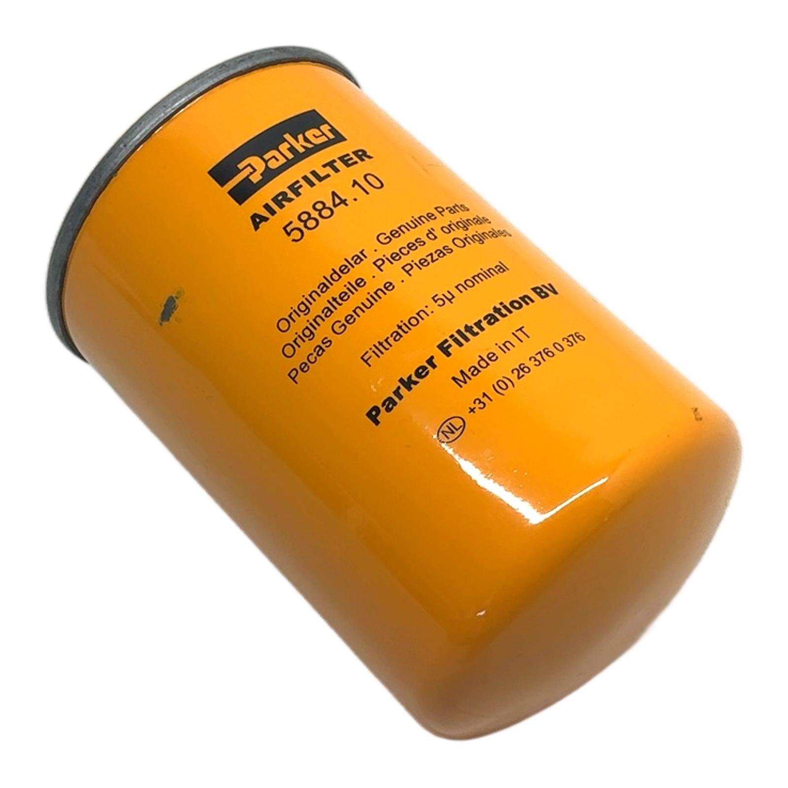 Parker 5884.10 Genuine Air Filter Element Description The Parker 5884.10 is a high-quality spin-on air filter element designed for use in industrial compressed air systems. It provides reliable filtration to protect downstream pneumatic components from particulate contamination, ensuring system efficiency and longevity. This is a genuine Parker part, guaranteeing optimal fit and performance. Specifications Manufacturer: Parker Part Number: 5884.10 Product Type: Air Filter Element Filtration Rating: 5 micron (nominal) Label Info Brand: Parker Model: AIRFILTER 5884.10 Text: Originaldelar, Genuine Parts, Originalteile, Pieces d’originale, Pecas Genuine, Piezas Originales Application This filter element is typically installed in filter housings within compressed air lines to remove solid particles, dust, and rust. It is essential for applications requiring clean air, such as in automation, manufacturing, and processing industries. Country of Origin This product is manufactured in Italy. CO2 Impact By purchasing this reused component, you are helping to reduce industrial waste and save approximately 1.0 kg of CO2. This saving is equivalent to the emissions from driving a car for 5 kilometers. Availability This item is in stock and ready for immediate dispatch. Order now from profideals for expert support and fast delivery. FAQ What is the difference between a ‘nominal’ and an ‘absolute’ micron rating?A nominal rating, like the 5-micron rating on this filter, indicates the filter can capture a certain percentage (e.g., 95%) of particles of that size. An absolute rating would mean it captures nearly 100% of particles of that size. Nominal ratings are common and effective for general industrial applications. What are the typical signs that this air filter needs replacement?The most common indicator is a noticeable pressure drop across the filter housing, which can be monitored with a differential pressure gauge. Other signs include reduced performance of pneumatic tools or visible contaminants downstream of the filter. Can this filter element be used with synthetic compressor oils?Yes, Parker filter elements like the 5884.10 are designed to be compatible with both mineral and synthetic compressor oils. The filter media and seals are constructed from materials that resist degradation from common lubricants. Last Update: Friday, March 13, 2026 profideals is not an authorized distributor, reseller or representative of the products featured on this website. All product names, trademarks, brands and logos used on this site are the property of their respective owners. The depiction, description or sale of products featuring these names, trademarks, brands and logos is for identification purposes only and is not intended to indicate any affiliation with or authorization by any rights holder.