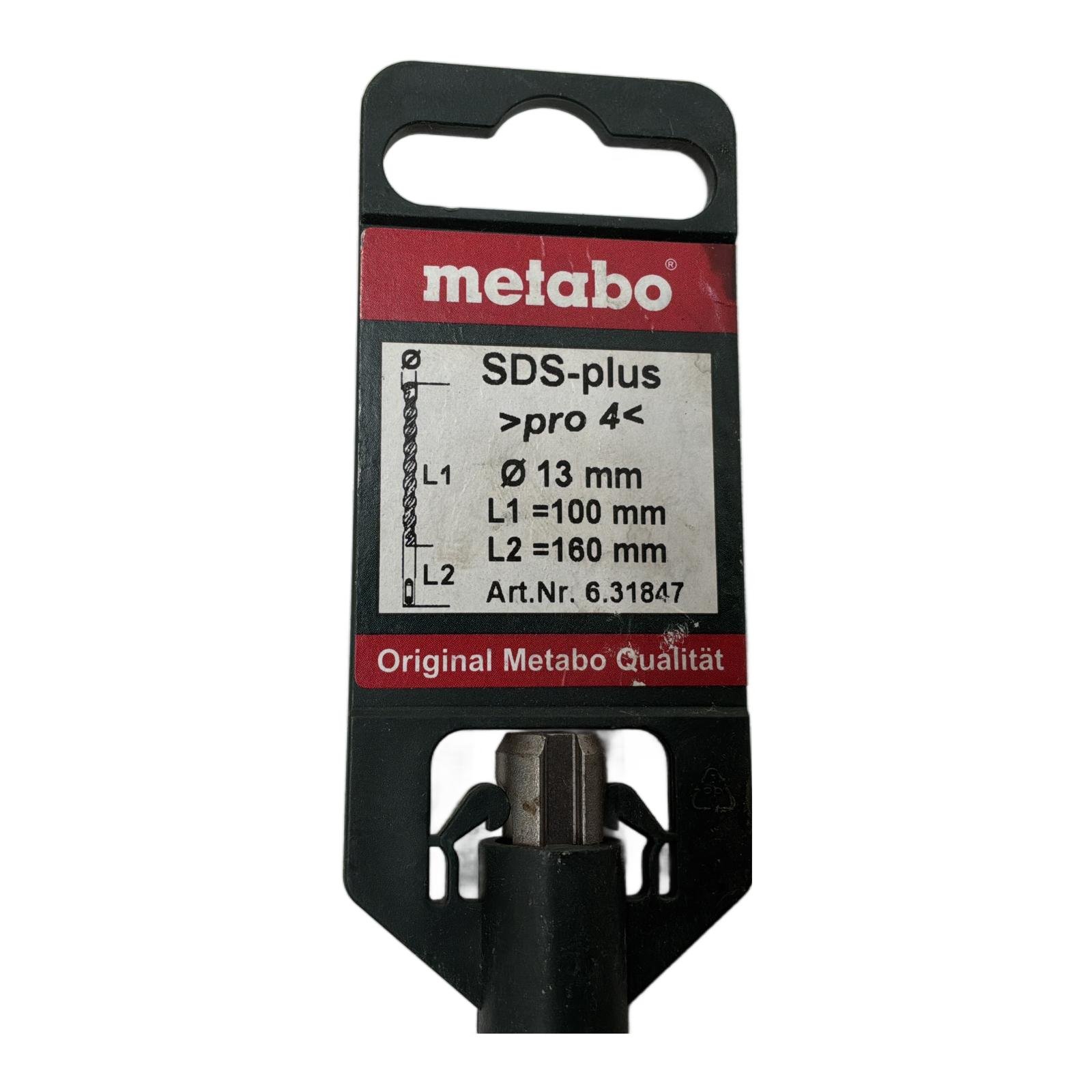 6.31847 Metabo Hammer Drill Bit SDS-Plus 13x100mm Pro4 for Professional Drilling |