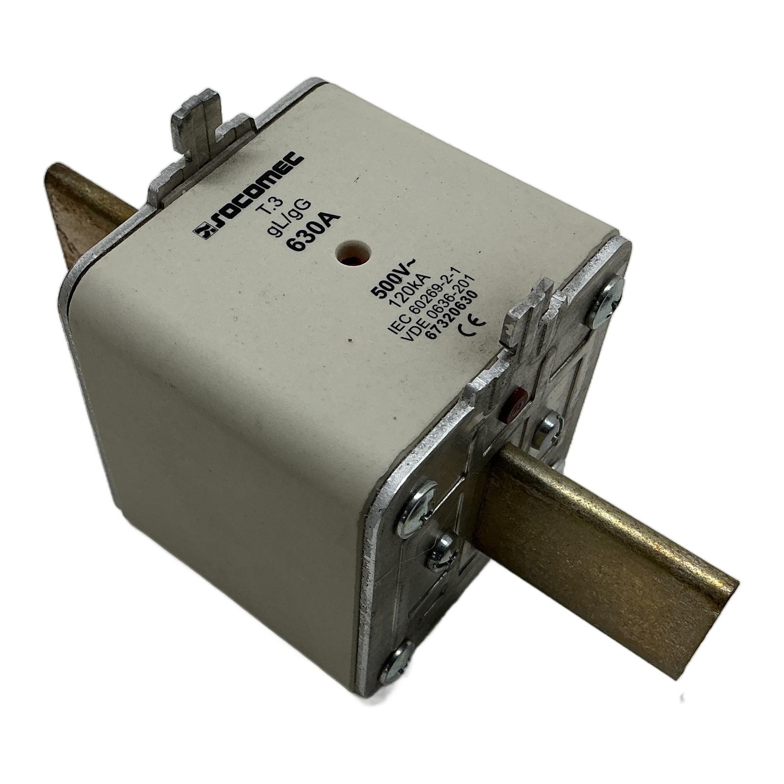 <h2>Socomec 67320630 NH Size 3 Industrial Fuse</h2> <h3>Description</h3> <p>The Socomec 67320630 is a high-performance NH-type fuse, Size 3, designed for industrial low-voltage applications. It provides reliable and safe protection for electrical installations, cables, and equipment against overloads and short-circuits. With its gG/gL characteristic, it is a versatile solution for general-purpose protection.</p> <h3>Specifications</h3> <ul> <li>Manufacturer: Socomec</li> <li>Part Number: 67320630</li> <li>Fuse Size: NH3</li> <li>Rated Current: 630A</li> <li>Rated Voltage: 500V AC</li> <li>Fuse Characteristic: gG/gL (General Purpose Line Protection)</li> <li>Breaking Capacity: 120kA</li> <li>Indicator: Dual Indicator</li> </ul> <h3>Label Info</h3> <ul> <li>Model: T.3 gL/gG</li> <li>Standards: IEC 60269-2-1, VDE 0636-201</li> </ul> <h3>Application</h3> <p>This fuse is ideal for use in industrial distribution boards, main switchboards, and as backup protection for motor starters and other critical equipment in manufacturing plants and commercial buildings.</p> <h3>Country of Origin</h3> <p>Made in France.</p> <h3>CO2 Impact</h3> <p>Choosing a pre-owned component like this Socomec fuse prevents the emissions associated with new manufacturing, saving an estimated 16.5 kg of CO2. This is equivalent to driving a car for over 82 kilometers.</p> <h3>Availability</h3> <p>This item is in stock and ready for worldwide shipping. Order now from profideals for expert support and fast delivery.</p> <h3>FAQ</h3> <p><strong>What does the ‘gG’ characteristic signify?</strong><br><p>The ‘gG’ characteristic indicates a general-purpose fuse for full-range breaking capacity. It is designed to protect against both overload currents (the ‘g’) and short-circuit currents, making it suitable for protecting cables and general equipment.</p> <strong>Is this fuse suitable for protecting semiconductor devices?</strong><br><p>No, gG fuses are not fast-acting enough to protect sensitive semiconductor devices like thyristors, diodes, or IGBTs. For those applications, you should use ultra-rapid fuses with ‘aR’ or ‘gS’ characteristics.</p> <strong>What is the significance of the 120 kA breaking capacity?</strong><br><p>The 120 kA (kiloamperes) breaking capacity is the maximum fault current that the fuse can safely interrupt without rupturing or causing a hazard. This high rating ensures safety in industrial systems where potential short-circuit currents can be very large.</p> </p> <p>Last Update: Friday, March 13, 2026</p> <p><em>profideals is not an authorized distributor, reseller, or representative of the products featured on this website. All product names, trademarks, brands, and logos used on this site are the property of their respective owners.</em></p>
