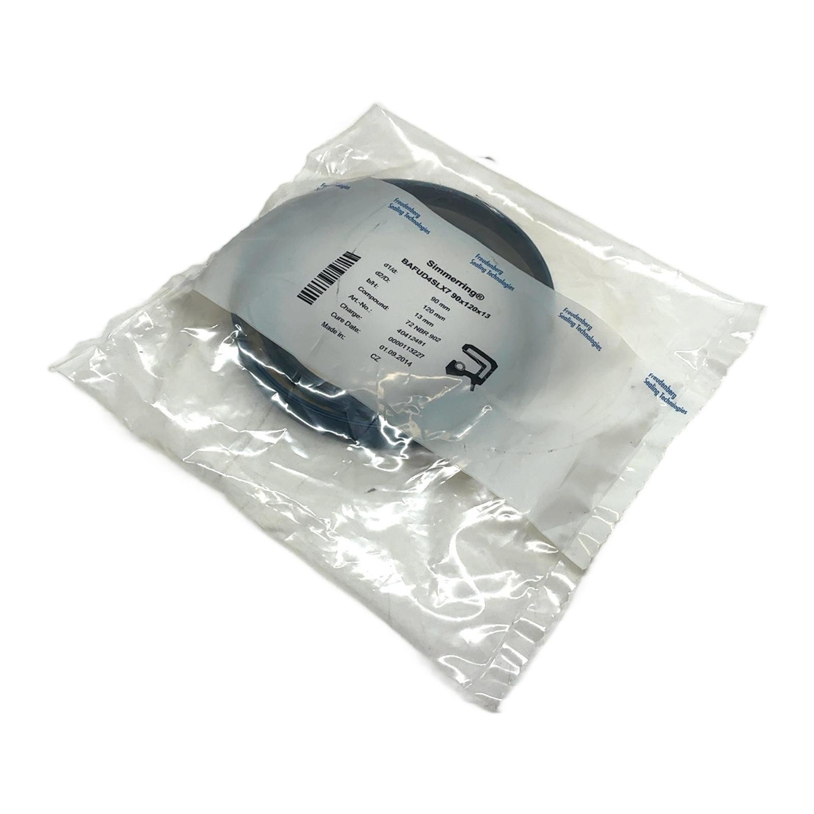 Freudenberg Simmerring BAFUD4SLX7 Radial Shaft SealDescriptionThis is a genuine Simmerring BAFUD4SLX7 from Freudenberg Sealing Technologies, a high-performance radial shaft seal designed for rotating or pivoting shafts. It effectively seals lubricants in and keeps contaminants like dirt and moisture out, ensuring the longevity and reliability of your machinery. This model, made from the robust 72 NBR 902 compound, is suitable for a wide range of standard industrial applications.SpecificationsInner Diameter (d1): 90 mmOuter Diameter (d2): 120 mmWidth (b): 13 mmMaterial: 72 NBR 902 (Nitrile Butadiene Rubber)Design: BAFUD4SLX7, with dust lipLabel InfoBrand: FreudenbergType: BAFUD4SLX7 90x120x13Article Number: 40412481Charge: 0000113227ApplicationIdeal for use in gearboxes, pumps, electric motors, and general mechanical engineering where a reliable seal for rotating shafts is required. The NBR material provides good resistance to mineral oils, greases, and hydraulic fluids.Country of OriginThis product is made in the Czech Republic (CZ).CO2 ImpactBy choosing this new-old-stock component, you help avoid the CO2 emissions of new production, estimated at 0.3 kg. This saving is equivalent to the emissions from driving a car for 1.5 kilometers.AvailabilityThis item is in stock and ready for immediate dispatch. It is a new-old-stock product in its original, sealed packaging. Order now from profideals for expert support and fast delivery.FAQWhat is the difference between NBR and FKM/Viton material?NBR (Nitrile Butadiene Rubber), as used in this seal, is excellent for applications involving oils and fuels at moderate temperatures (typically -30 deg C to 100 deg C). FKM (Viton) offers superior resistance to higher temperatures and a broader range of chemicals but is generally more expensive.Is this BAFUD4SLX7 seal suitable for pressurized applications?Standard Simmerring designs like this are typically suitable for low-pressure applications, up to approximately 0.5 bar. The ‘U’ in the type designation (BAFUD4SLX7) often indicates suitability for some pressure, but for high-pressure systems, a specially designed seal would be required. Always consult the manufacturer’s datasheet for your specific pressure requirements.What does the ‘Cure Date’ of 2014 mean for the performance of this seal?The cure date is the date of vulcanization (manufacturing). For NBR seals, the shelf life is typically 7-10 years when stored correctly (away from light, heat, and ozone). While this seal is past the typical shelf life, its performance is often unaffected if it has been stored in its original, sealed packaging, which protects it from environmental factors.Last Update: Friday, March 13, 2026PLC2DAY is not an authorized distributor, reseller, or representative of the products featured on this website. All product names, trademarks, brands, and logos used on this site are the property of their respective owners.