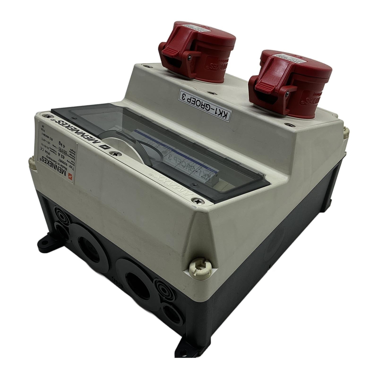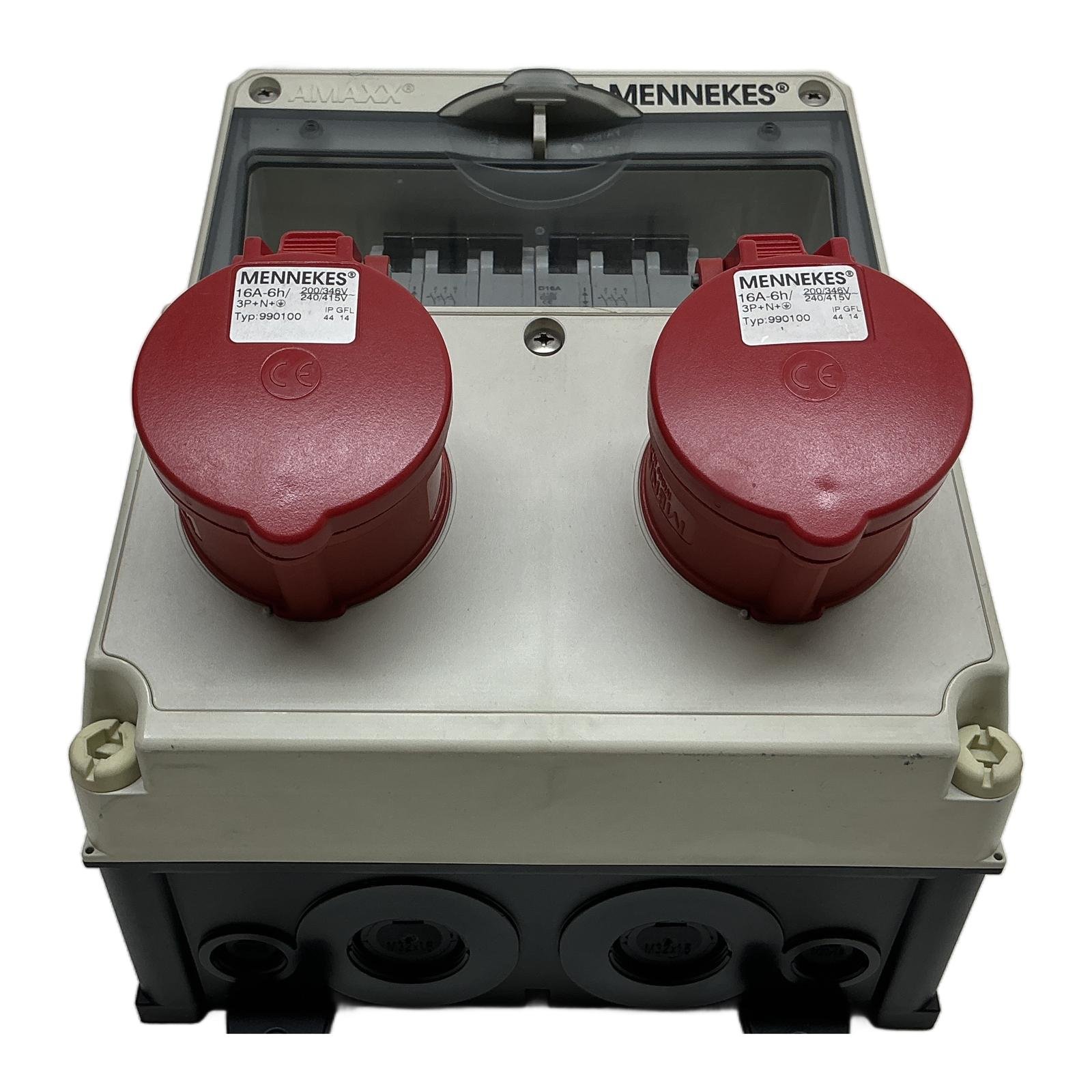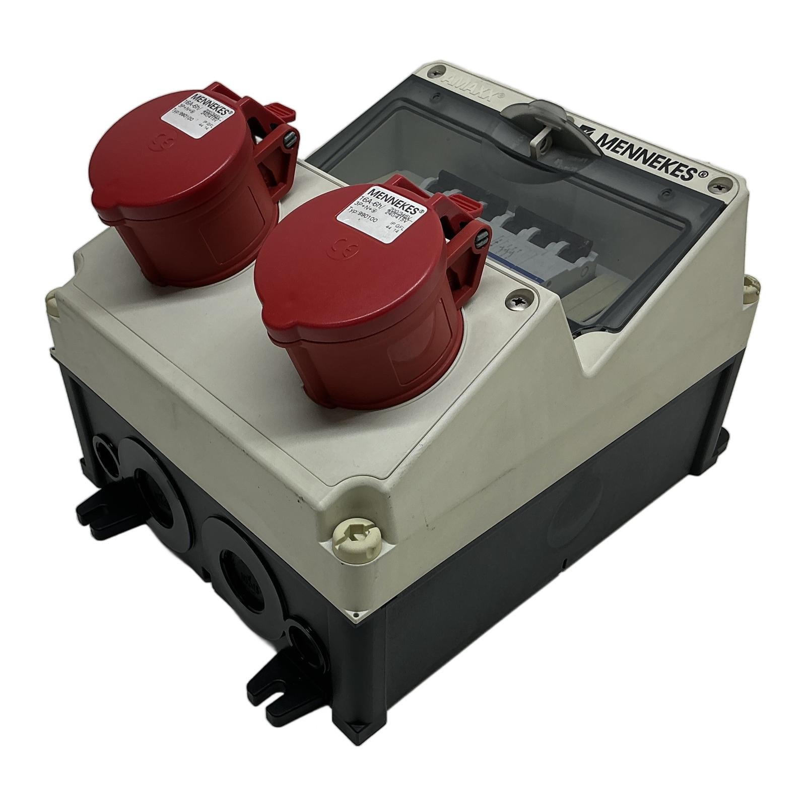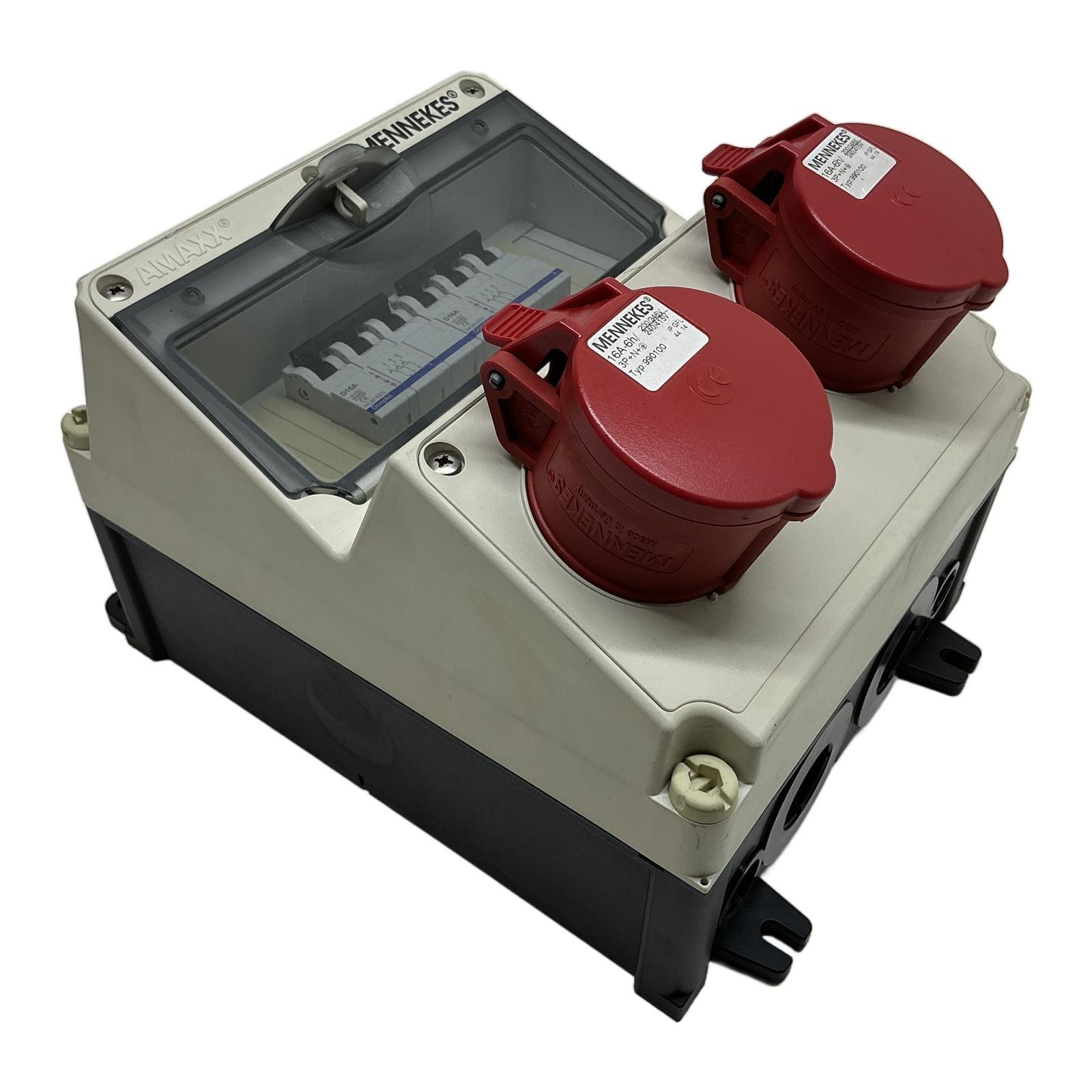 Mennekes AMAXX Power Distribution Box Description The Mennekes AMAXX 920067 is a highly durable and versatile socket combination box, designed for providing safe and reliable power in demanding industrial environments. This pre-wired unit simplifies installation and ensures compliance with safety standards. It features a rugged enclosure with a transparent, lockable window for easy inspection and access to the internal circuit breakers. This model is equipped with two CEE sockets for three-phase power connections. Specifications Manufacturer: Mennekes Series: AMAXX Model: 920067 Input Voltage: 200/346V to 240/415V AC Frequency: 50-60 Hz Max Input Current: 63 A Output Sockets: 2x CEE 16A, 5-pin (3P+N+E), 6h, 400V Protection Class: IP44 (splash-proof) Housing Material: Plastic Label Info Typ: 920067 Sicherung/Fuse: 63 A Spannung/Voltage: 200/346V – 240/415V Standard: IEC 60439-1 Application Ideal for use in workshops, construction sites, manufacturing plants, and event venues where robust and mobile power distribution is required. Country of Origin Made in Germany. CO2 Impact Opting for this pre-owned unit prevents the emission of approximately 160 kg of CO2 compared to manufacturing a new one. This saving is equivalent to the CO2 absorption of 8 trees over a year. Availability This item is in stock and ready for immediate dispatch. Order now from profideals for expert support and fast delivery. FAQ Can the internal circuit breakers be changed or upgraded?Yes, the AMAXX series uses a standard DIN rail. You can replace the existing breakers with others of a suitable rating, provided they physically fit and are compliant with local electrical codes. What does the ‘6h’ on the socket mean?The ‘6h’ (6 o’clock) designation refers to the position of the earth pin relative to the keyway on the socket. This is a standard IEC 60309 convention to ensure that plugs and sockets of different voltage and frequency ratings cannot be connected. 6h is standard for 380-415V three-phase systems. Is this unit suitable for outdoor use?With an IP44 rating, this unit is protected against splashing water from all directions. It is suitable for use in covered outdoor areas or locations where it is not exposed to direct, heavy rain or water jets. For full outdoor exposure, a unit with a higher IP rating (e.g., IP67) would be recommended. Last Update: Friday, March 13, 2026 profideals is not an authorized distributor, reseller or representative of the products featured on this website. All product names, trademarks, brands and logos used on this site are the property of their respective owners.
