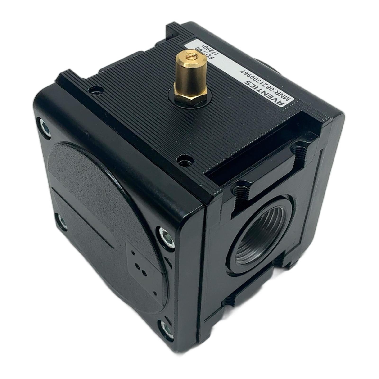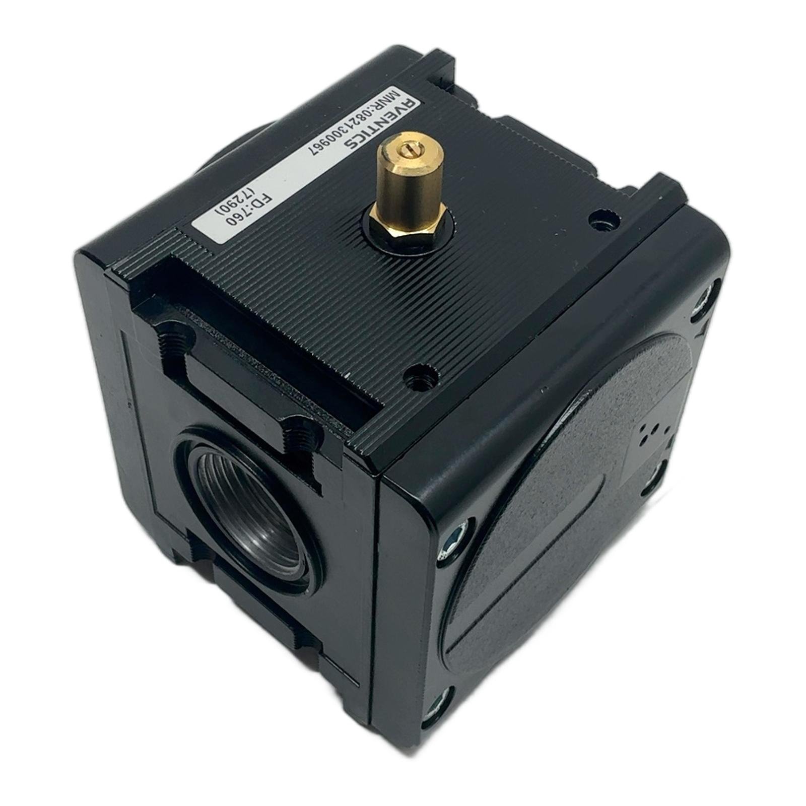 AVENTICS AS3-SOV Soft Start / Shut-off Valve Description The AVENTICS 0821300967 is a 3/2 soft-start and shut-off valve from the AS3 series of air preparation units. It is designed to safely and gradually build up pressure in a pneumatic system, preventing abrupt and potentially dangerous actuator movements. When de-energized, it provides a quick exhaust function, rapidly venting the downstream system. This component is essential for machine safety and smooth operational start-ups. Specifications Manufacturer: AVENTICS Part Number: 0821300967 Series: AS3 Type: AS3-SOV (Soft-Start / Shut-off Valve) Pneumatic Connection: G 1/2 Operating Pressure: 3 to 10 bar Nominal Flow Qn: 5500 l/min Control: External pilot required Label Info MNR: 0821300967 FD: 760 Application This valve is typically used as the main shut-off valve in a pneumatic FRL (Filter, Regulator, Lubricator) assembly. It’s ideal for applications requiring controlled pressurization after a system stop or during initial machine power-up. Country of Origin Made in Germany. CO2 Impact Opting for a refurbished pneumatic component like this one prevents the emission of approximately 7.2 kg of CO2 compared to manufacturing a new one. Availability This item is in stock and ready for immediate dispatch. Order now from profideals for expert support and fast delivery. FAQ Does this valve include the solenoid pilot valve?No, this is the main valve body (part number 0821300967). The solenoid pilot valve must be ordered separately according to the required control voltage (e.g., 24V DC). What is the purpose of the adjustment screw on this AS3-SOV valve?The brass adjustment screw on top is a needle valve that controls the pressurization time. By turning it, you can regulate how quickly the downstream pressure builds up, allowing for a ‘soft start’ of pneumatic actuators. Can this valve be used for safety applications like emergency stops?Yes, the AS3-SOV is designed for this purpose. When the pilot signal is removed, the valve quickly blocks the inlet pressure and rapidly exhausts the downstream system (port 2 to 3), which is a key function for safety-related pressure dumping. However, always verify the required safety performance level (PL) for your specific application. Last Update: Friday, March 13, 2026 profideals is not an authorized distributor, reseller or representative of the products featured on this website. All product names, trademarks, brands and logos used on this site are the property of their respective owners.