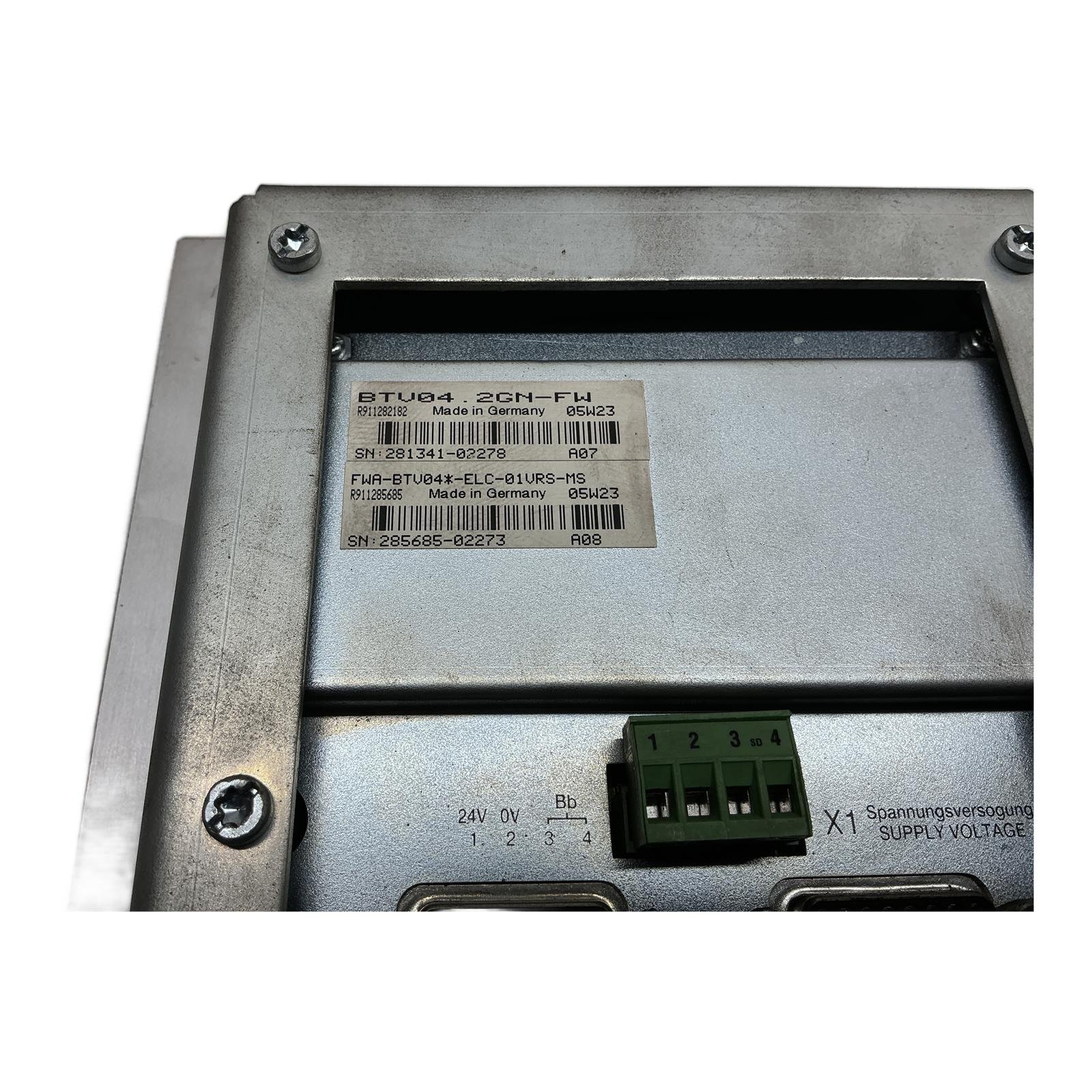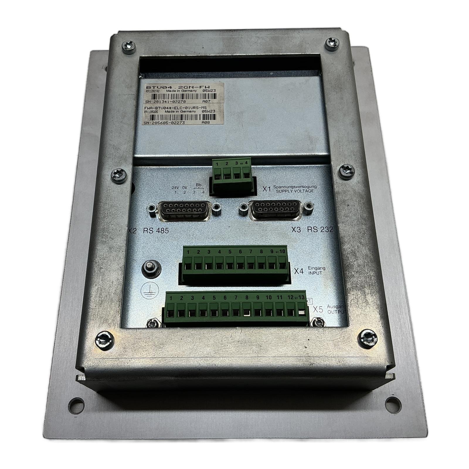 Rexroth Indramat BTV04 Operator Terminal Description The Rexroth Indramat BTV04.2GN-FW, with part number R911282182, is a durable HMI operator panel designed for the SYSTEM 200 automation platform. This terminal provides operators with a clear interface for machine control and process monitoring through its monochrome display and tactile keypad. It is a reliable and essential component for maintaining legacy systems that rely on the Indramat architecture. Specifications Manufacturer: Rexroth Indramat Model: BTV04.2GN-FW Part Number: R911282182 Power Supply: 24V DC Communication Ports: RS-232, RS-485 Display Type: Monochrome LCD Keypad: Numeric, Function, and Control Keys Label Info BTV04.2GN-FW, R911282182, SN: 281341-02278 Associated Firmware: FWA-BTV04*-ELC-01VRS-MS, R911285685, SN: 285685-02273 Application This operator terminal is specifically used in conjunction with Rexroth Indramat SYSTEM 200 controllers, commonly found in applications such as CNC machinery, printing presses, and packaging lines from its era. Country of Origin Made in Germany. CO2 Impact Opting for this pre-owned HMI panel saves an estimated 60 kg of CO2 compared to producing a new one. This is equivalent to charging a smartphone over 7,200 times. Availability This item is an obsolete part but is available from our stock. Order now from profideals for expert support and fast delivery. FAQ Is this BTV04.2GN-FW compatible with any controller, or only specific Rexroth Indramat systems? This HMI is specifically designed for the Rexroth Indramat SYSTEM 200 and communicates with its associated controllers, like the PPC series. It is not a universal HMI and cannot be used with other brands or modern systems without significant custom integration, which is not recommended. Does this unit come with the system firmware (FWA-BTV04*-ELC-01VRS-MS) pre-installed? The label indicates the hardware is associated with firmware R911285685. However, as a used part, the currently installed firmware or its configuration might differ. It is assumed to have a functional firmware installation, but project-specific programming will be required by the end-user. What are the communication settings for the RS-232 and RS-485 ports? The default communication parameters (baud rate, parity, data bits) are set within the project configuration loaded from the main system controller (e.g., PPC). There are no physical DIP switches on the unit to set these. You must ensure your system’s configuration matches the expected settings for the HMI. Last Update: Friday, March 13, 2026 profideals is not an authorized distributor, reseller or representative of the products featured on this website. All product names, trademarks, brands and logos used on this site are the property of their respective owners.