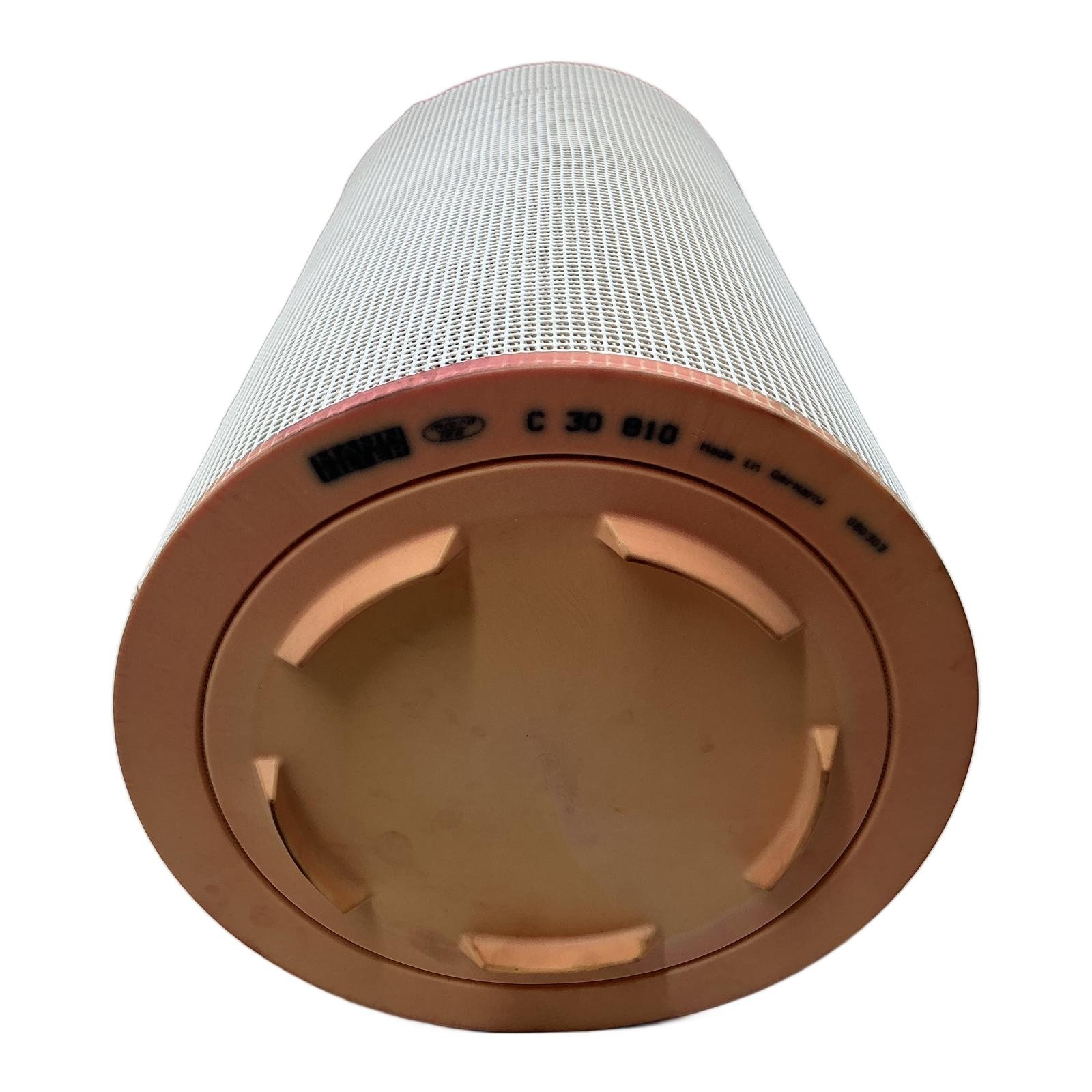 MANN-FILTER C 30 810 Air Filter Element Description The MANN-FILTER C 30 810 is a premium air filter element engineered for superior performance in demanding industrial and automotive applications. This filter provides excellent protection for engines by efficiently removing dust, pollen, and other airborne particles, ensuring clean air intake for optimal combustion and engine longevity. Manufactured in Germany, it represents the highest standards of quality and reliability. Specifications Manufacturer: MANN-FILTER Model: C 30 810 Type: Air Filter (Cylindrical) Outer Diameter: 296 mm Inner Diameter: 186 mm Height: 502 mm Label Info Brand: MANN-FILTER Part Number: C 30 810 EAN: 4011558176006 Application This air filter is commonly used in heavy-duty trucks, buses, construction equipment, and agricultural machinery from manufacturers such as DAF, Iveco, MAN, Mercedes-Benz, Renault, Scania, and Volvo. Country of Origin Made in Germany. CO2 Impact Opting for this component instead of a new one prevents approximately 38.0 kg of CO2 emissions, contributing to a more sustainable industrial environment. Availability This item is in stock and ready for immediate dispatch. Order now from profideals for expert support and fast delivery. FAQ What are the key dimensions of the C 30 810 filter?The filter has an outer diameter of 296 mm, an inner diameter of 186 mm, and a total height of 502 mm. Always verify these dimensions against your equipment’s requirements. Is the C 30 810 a standalone filter or does it require a secondary element?The C 30 810 is the primary air filter element. For many applications, a compatible secondary or safety element (such as the MANN-FILTER CF 1840) is recommended for enhanced engine protection. What materials are used in this filter’s construction?It is constructed with a high-efficiency filter medium, typically a cellulose or synthetic blend, and features durable polyurethane (PU) end caps to ensure a secure and lasting seal within the filter housing. Last Update: Friday, March 13, 2026 profideals is not an authorized distributor, reseller or representative of the products featured on this website. All product names, trademarks, brands and logos used on this site are the property of their respective owners.