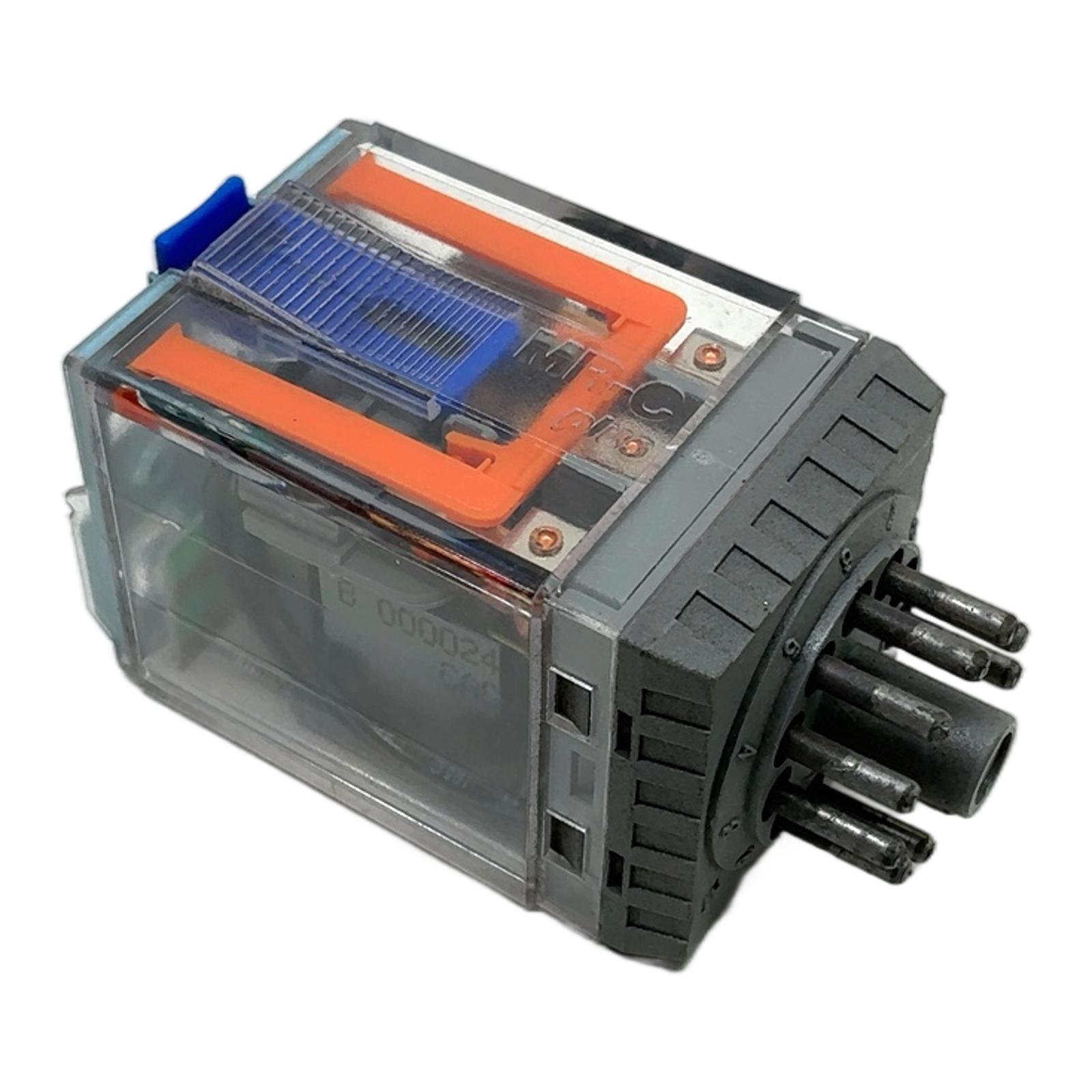 Releco C3-A30X Industrial Plug-in Relay Description The Releco C3-A30X is a high-quality industrial relay designed for general purpose switching applications in control and automation systems. It features a 24V DC coil and a robust 3-pole changeover contact arrangement. The integrated mechanical indicator and manual test button facilitate easy system checks and maintenance. With its standard 11-pin base, this relay is easy to install and replace, ensuring minimal downtime. Specifications Manufacturer: Releco Model: C3-A30X Coil Voltage: 24V DC Coil Power Consumption: 1.3 W Contact Configuration: 3PDT (3 Changeover Contacts) Contact Current Rating: 10A (AC1) Mounting: 11-pin circular socket Features: Manual test button, mechanical status indicator Label Info Releco MR-C C3-A30X / …V DC 24V AC 2.2 VA – DC 1.3 W 10A AC1 / 6A AC15 Application This relay is ideal for use in industrial control panels, HVAC systems, packaging machinery, and other applications requiring reliable electrical load switching. Country of Origin Made in Spain. CO2 Impact Opting for a reconditioned C3-A30X relay prevents the emission of approximately 2.4 kg of CO2 compared to manufacturing a new one. This saving is comparable to the emissions from driving a standard car for 12 kilometers. Availability This item is a tested, pre-owned component in excellent working condition. Limited stock available. Order now from profideals for expert support and fast delivery. FAQ Question?What type of socket is required for the C3-A30X relay? Answer:This relay uses a standard 11-pin circular socket, such as the Releco S3-B or S3-MP models, which allows for easy plug-in installation and replacement. Question?Can the blue button on top be used for continuous operation? Answer:No, the blue button is a manual test/latching actuator. It is designed for momentary testing of the circuit or for locking the contacts in the energized position during commissioning or maintenance. It should not be used for normal switching operations. Question?What do the ’30’ and ‘X’ in the C3-A30X model number signify? Answer:In the Releco naming convention, ‘C3′ indicates a 3-pole changeover contact configuration (3PDT). The ’30’ refers to the contact material, which is typically a Silver-Nickel (AgNi) alloy suitable for general-purpose loads. The ‘X’ denotes that the relay is equipped with a mechanical indicator and a manual test button. Friday, March 13, 2026 profideals is not an authorized distributor, reseller or representative of the products featured on this website. All product names, trademarks, brands and logos used on this site are the property of their respective owners. The depiction, description or sale of products featuring these names, trademarks, brands and logos is for identification purposes only and is not intended to indicate any affiliation with or authorization by any rights holder.
