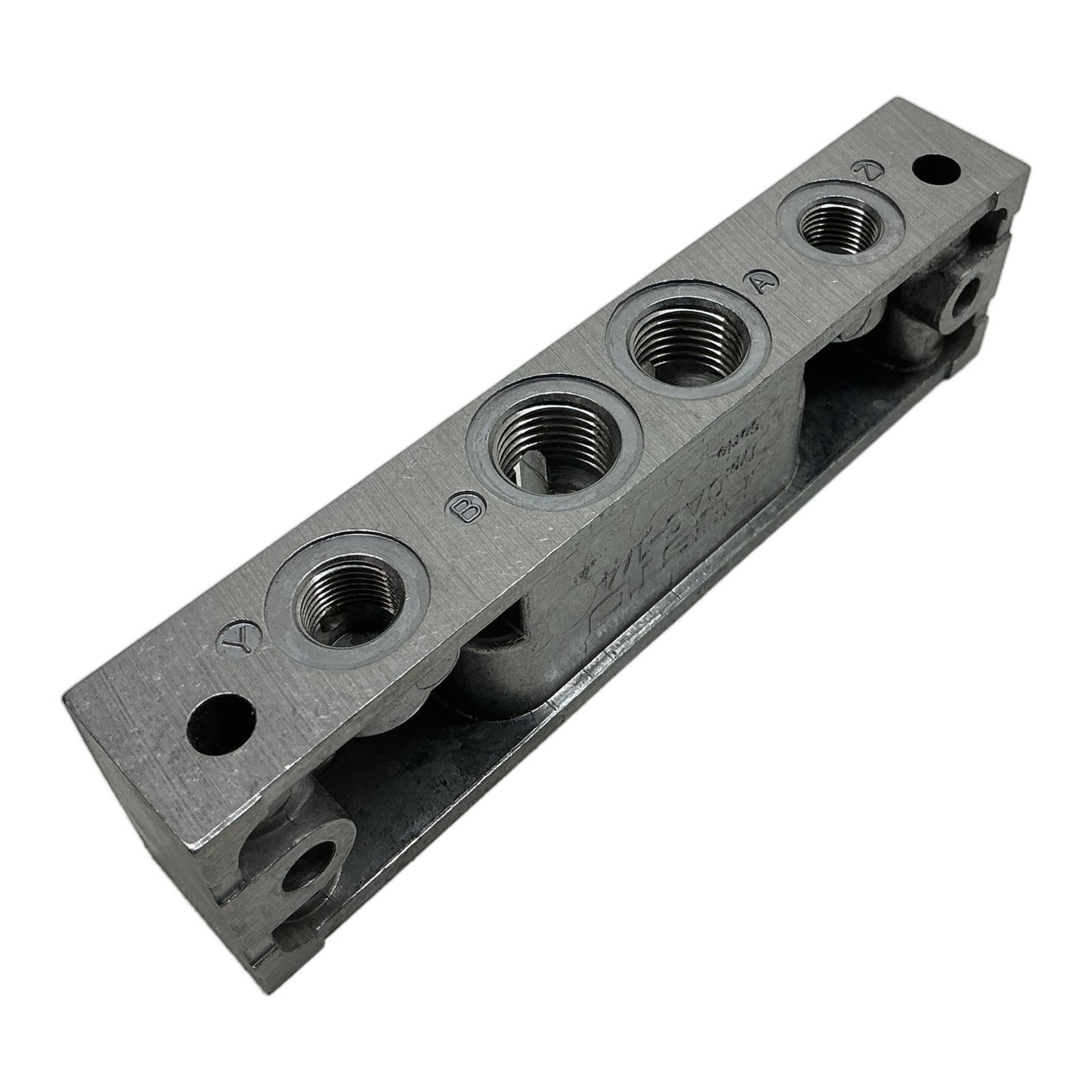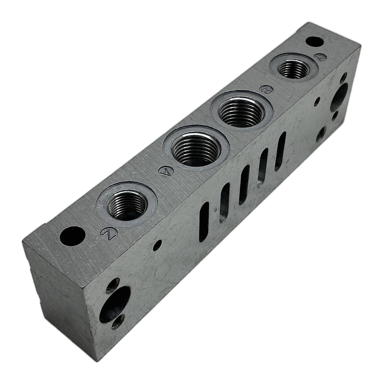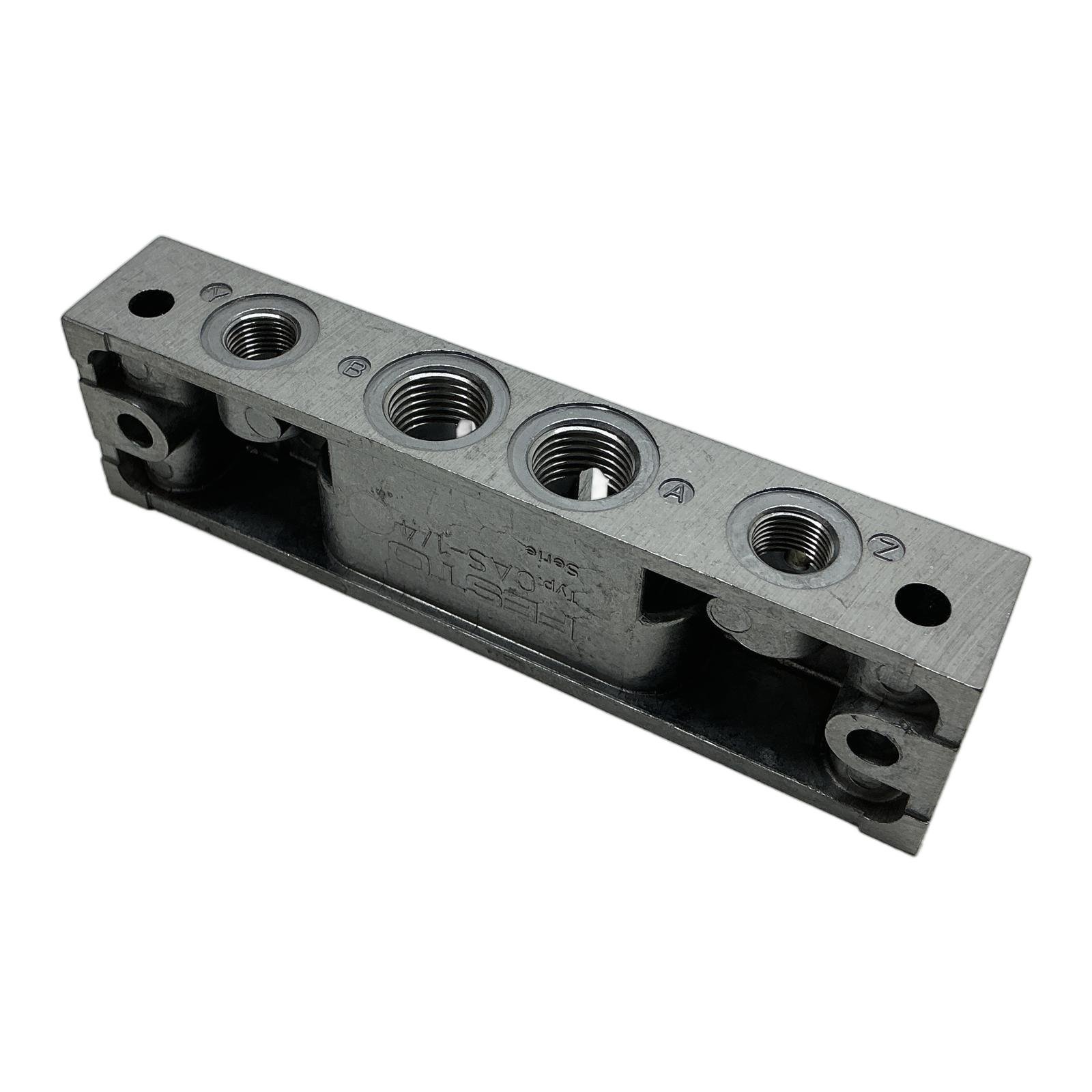 Festo CAS-1/4 4-Station Pneumatic Manifold Block Description The Festo CAS-1/4, part number 5830, is a high-quality 4-station manifold block designed for mounting pneumatic valves. Its compact design and robust anodized aluminum construction make it an ideal solution for organizing complex pneumatic circuits while saving space. All ports feature standard G1/4 threading for easy integration. Specifications Manufacturer: Festo Type: CAS-1/4 Part Number: 5830 Number of Valve Stations: 4 Pneumatic Connection (all ports): G1/4 Operating Pressure: -0.95 to 10 bar Material: Anodized Wrought Aluminium Alloy Ambient Temperature: -10 to 80 deg C Label Info Brand: FESTO Type: CAS-1/4 Material Number: 5830 Application This manifold block is suitable for a wide range of industrial automation applications, including packaging machinery, assembly lines, and material handling systems, where multiple pneumatic actuators need to be controlled from a central point. Country of Origin Germany CO2 Impact By purchasing this reused component, you are helping to avoid approximately 3.2 kg of CO2 emissions. This saving is comparable to the emissions from driving a car for 16 kilometers. Availability This is an obsolete item, but it is available from our stock. Order now from profideals for expert support and fast delivery. FAQ Question? What series of Festo valves are compatible with the CAS-1/4 manifold?The CAS-1/4 manifold block is specifically designed for use with the Festo J-series pneumatic solenoid valves. Question? What are the mounting options for this manifold block?This block can be mounted directly onto a machine frame or panel using the through-holes provided at each end. Question? Is it possible to block unused valve stations on this manifold?Yes, unused stations can be sealed off using appropriate blanking plates, such as the Festo part number J-BP (part no. 2785). Last Update: Friday, March 13, 2026 profideals is not an authorized distributor, reseller or representative of the products featured on this website. All product names, trademarks, brands and logos used on this site are the property of their respective owners.