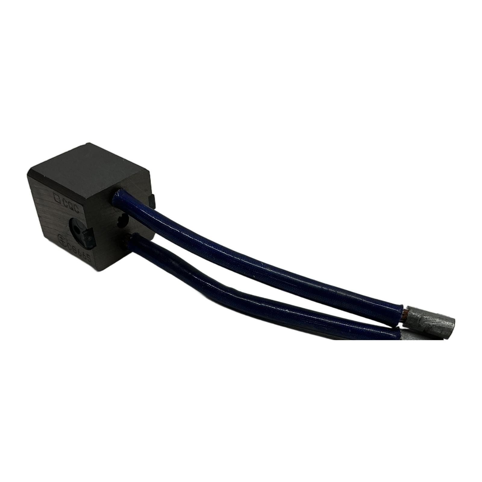 Mersen CQC Carbon Brush Grade CG665 Description This is a high-performance carbon brush from Mersen, part number/grade CG665. The CG665 grade is a carbon-graphite material known for its excellent commutating properties and long service life, making it ideal for DC motors and generators operating under demanding conditions. This brush features a dual-lead design with forked terminals for secure and reliable electrical contact. Specifications Manufacturer: Mersen Brand: CQC (Carbone de Qualite Competitive) Material Grade: CG665 Product Type: Carbon Brush Lead Configuration: Dual flexible leads with forked terminals Label Info Brand Marking: CQC Grade Marking: CG665 Application Designed for use in a wide range of industrial applications including traction motors, elevators, mining equipment, paper mills, and other heavy-duty DC motor and generator systems where reliability is critical. Country of Origin France CO2 Impact By purchasing this pre-owned component, you contribute to a circular economy and help avoid the emission of approximately 3.0 kg of CO2, which is comparable to the savings from driving 15 km in a standard car. Availability This item is in stock and ready for immediate dispatch. Order now from profideals for expert support and fast delivery. FAQ What is the significance of the CG665 grade?CG665 is a Mersen material grade designation for a specific carbon-graphite composite. It is engineered for low friction, good load-carrying capacity, and excellent commutation, which helps reduce sparking and commutator wear in DC machines. How do I ensure this brush is the correct size for my motor?While the grade CG665 is critical for electrical performance, you must also match the brush’s physical dimensions (length, width, thickness) to your motor’s brush holder. Please measure your existing brush or holder carefully before purchasing. Can I use a different grade of carbon brush if CG665 is not available?It is strongly recommended to use the grade specified by the motor manufacturer. Using a different grade can lead to poor performance, excessive sparking, and accelerated wear of the commutator. Consult a motor specialist if you are considering a substitution. profideals is not an authorized distributor, reseller or representative of the products featured on this website. All product names, trademarks, brands and logos used on this site are the property of their respective owners. Last Update: Friday, March 13, 2026