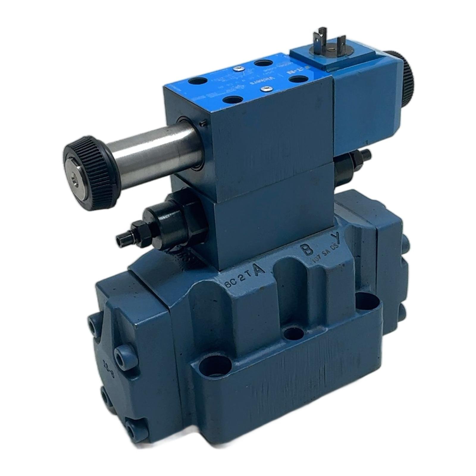 Eaton Vickers Proportional Directional Valve Assembly Description This is a complete two-stage proportional directional valve assembly from Eaton Vickers, identified by assembly ID 02-138550. It features a main stage model DG5V-7-6C-2T-M-U-C6-30, combining high performance with a precise pilot valve and a modular flow control. This unit delivers exceptional control for demanding hydraulic systems and is built for reliability and precision in applications like metal forming, injection molding, and heavy industrial machinery. Specifications Manufacturer: Eaton Vickers Main Valve Type: DG5V-7-6C-2T-M-U-C6-30 Pilot Valve Type: DG4V-3-6C-M-U-C6-60 Modular Valve Type: DGMFN-3-Y-A2W-B2W-41 Assembly ID: 02-138550 Nominal Size: NG16 (CETOP 7) Mainstage, NG6 (CETOP 3) Pilot Maximum Operating Pressure (Pilot P,A,B): 350 bar (5075 psi) Maximum Operating Pressure (Pilot T): 210 bar (3045 psi) Coil Voltage: 220V 50Hz Label Info Main Valve: DG5V 7 6C 2 T M U C6 30 Pilot Valve: DG4V 3 6C M U C6 60 Modular Valve: DGMFN 3 Y A2W B2W 41 Application Ideal for systems requiring accurate control of hydraulic actuator speed, direction, and acceleration/deceleration. Commonly used in presses, die-casting machines, wood processing equipment, and test rigs. Country of Origin Made in England. CO2 Impact Opting for this pre-owned component saves an estimated 49 kg of CO2 compared to manufacturing a new one. This is equivalent to the emissions from driving a car for 245 kilometers. Availability This unit is in stock and ready for immediate dispatch. Order now from profideals for expert support and fast delivery. FAQ What type of hydraulic fluid is recommended for this valve?These valves are typically designed for use with mineral oil-based hydraulic fluids (HL, HLP) according to DIN 51524. For use with other fluids like synthetics or water-glycols, consult the manufacturer’s datasheet to ensure seal compatibility. What does the ‘6C’ spool designation signify?The ‘6C’ designation in both the DG5V and DG4V model codes refers to the spool type. It typically indicates a closed-center spool where in the neutral position, ports P, T, A, and B are all blocked, holding the actuator in a fixed position. Is a specific mounting orientation required for this two-stage valve?While these valves can often be mounted in any orientation, it is best practice to mount them horizontally to ensure the spool remains centered and functions correctly, especially in applications with high vibration. Always refer to the installation manual for specific guidelines. Last Update: Friday, March 13, 2026 profideals is not an authorized distributor, reseller or representative of the products featured on this website. All product names, trademarks, brands and logos used on this site are the property of their respective owners.