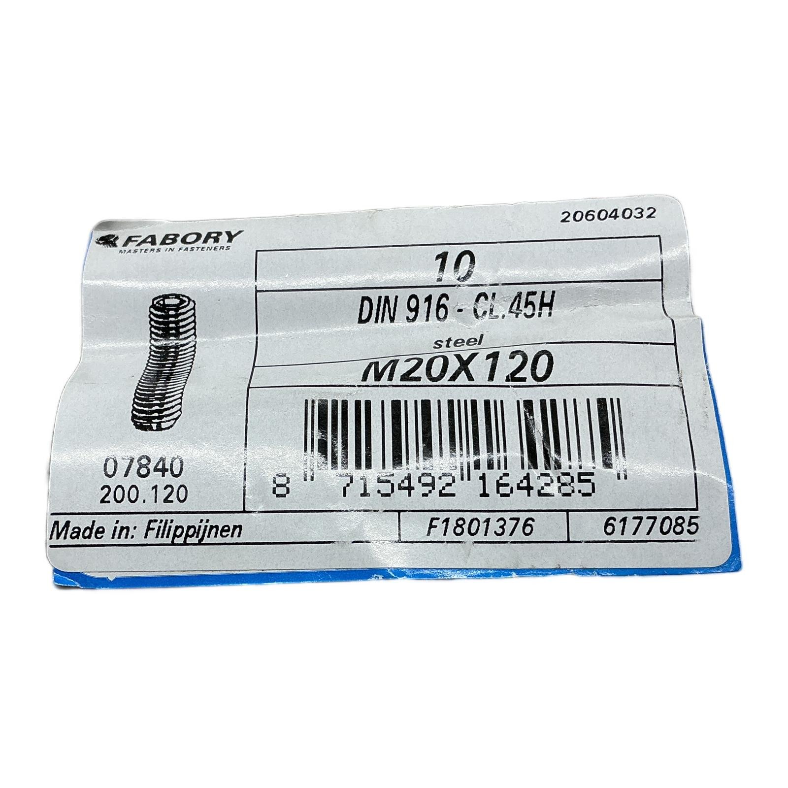 FABORY DIN 916 M20X120 Stelschroef kratereind staal 45H