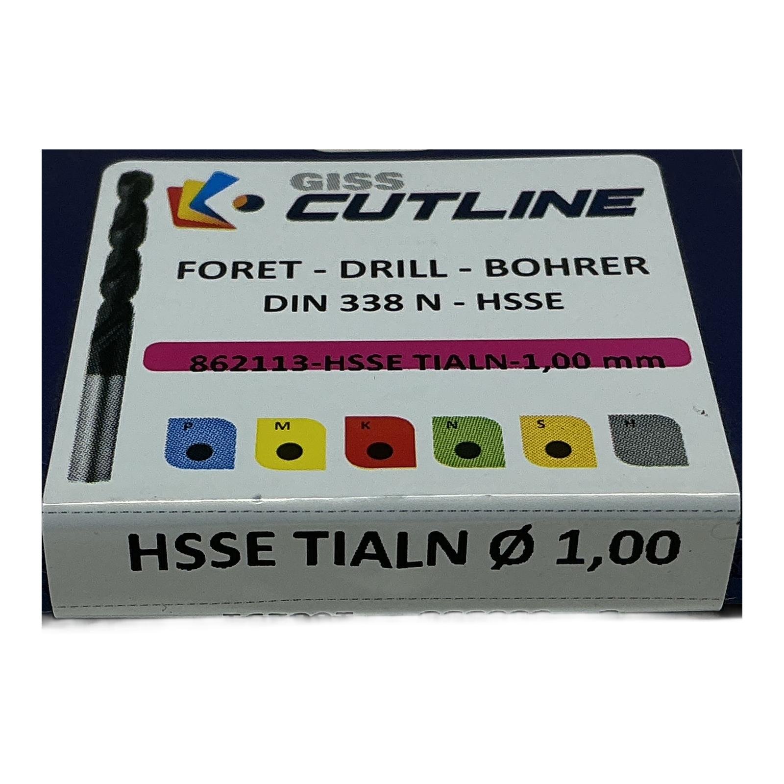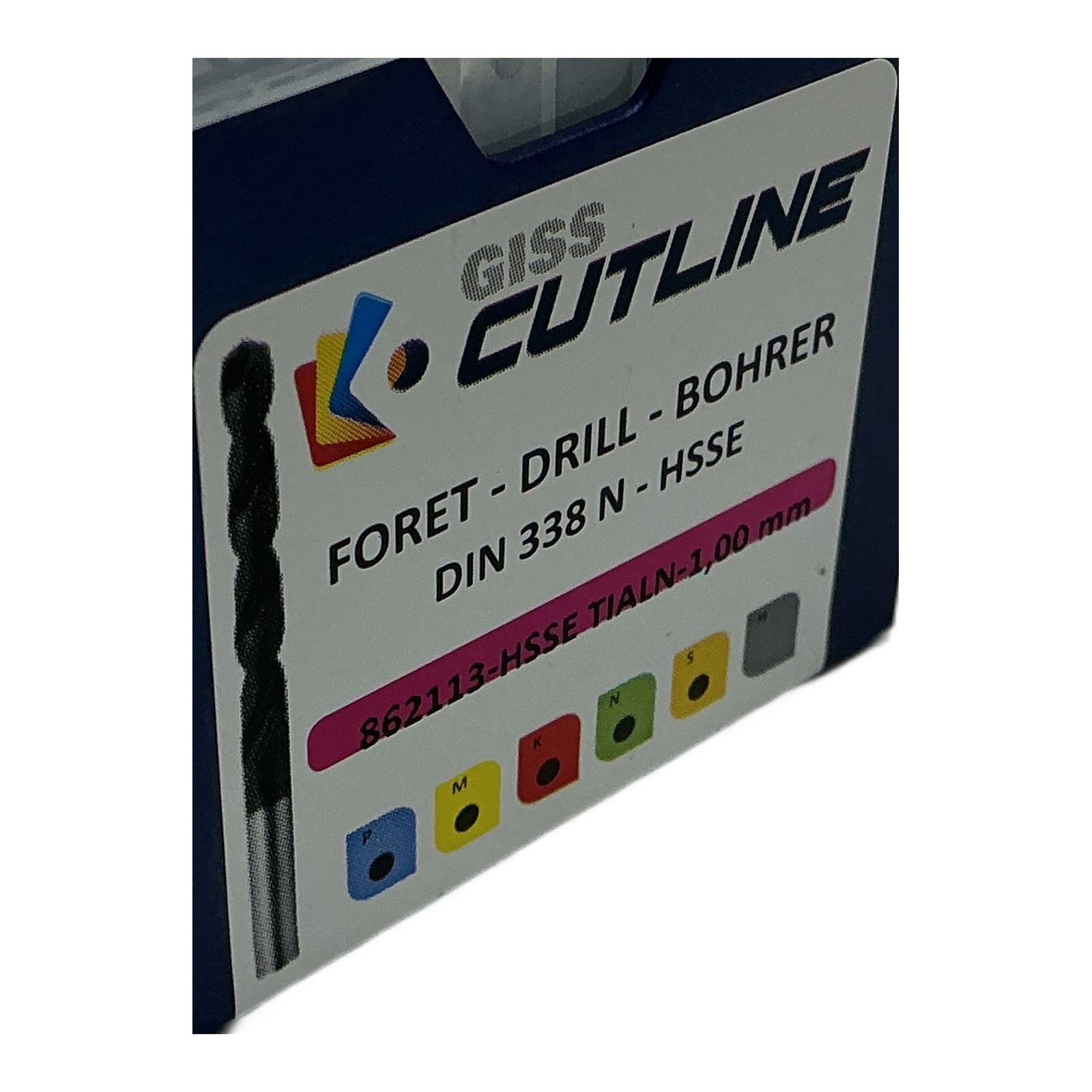 GISS Drill HSSE Din 338N Tialn 1.0mm 862113