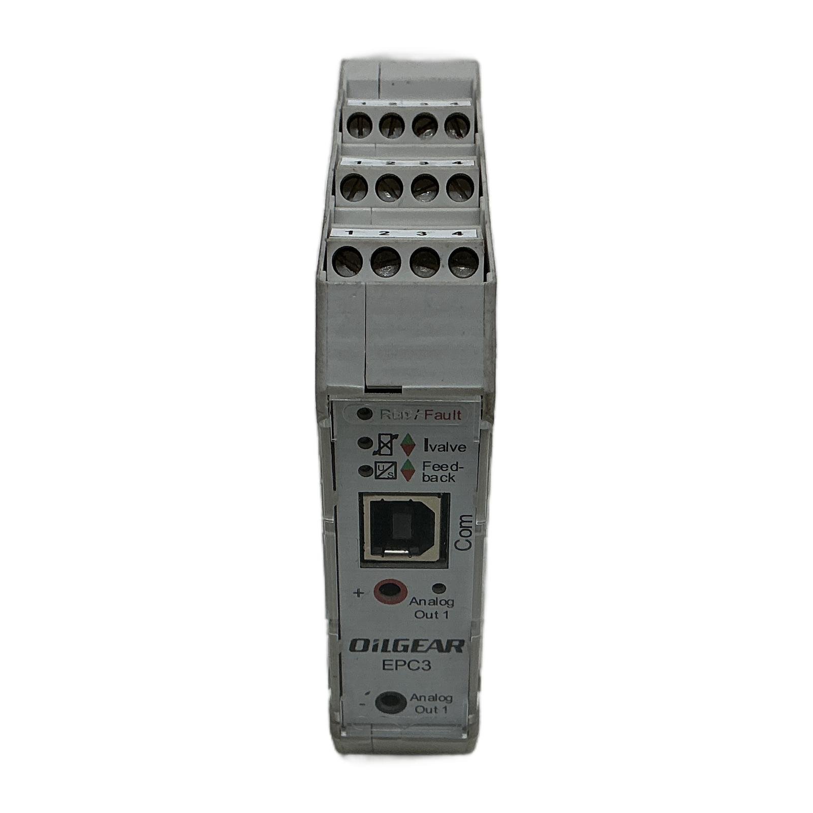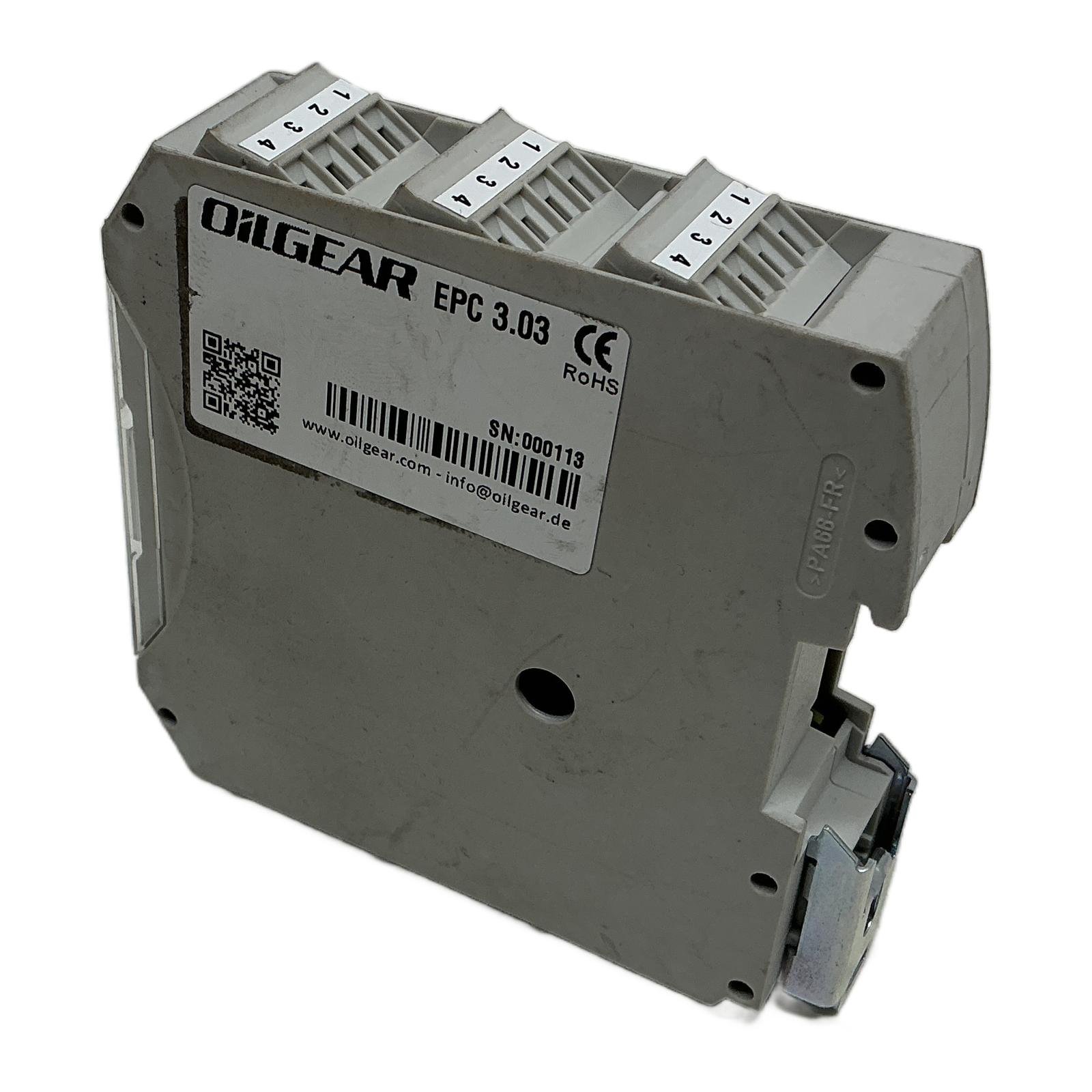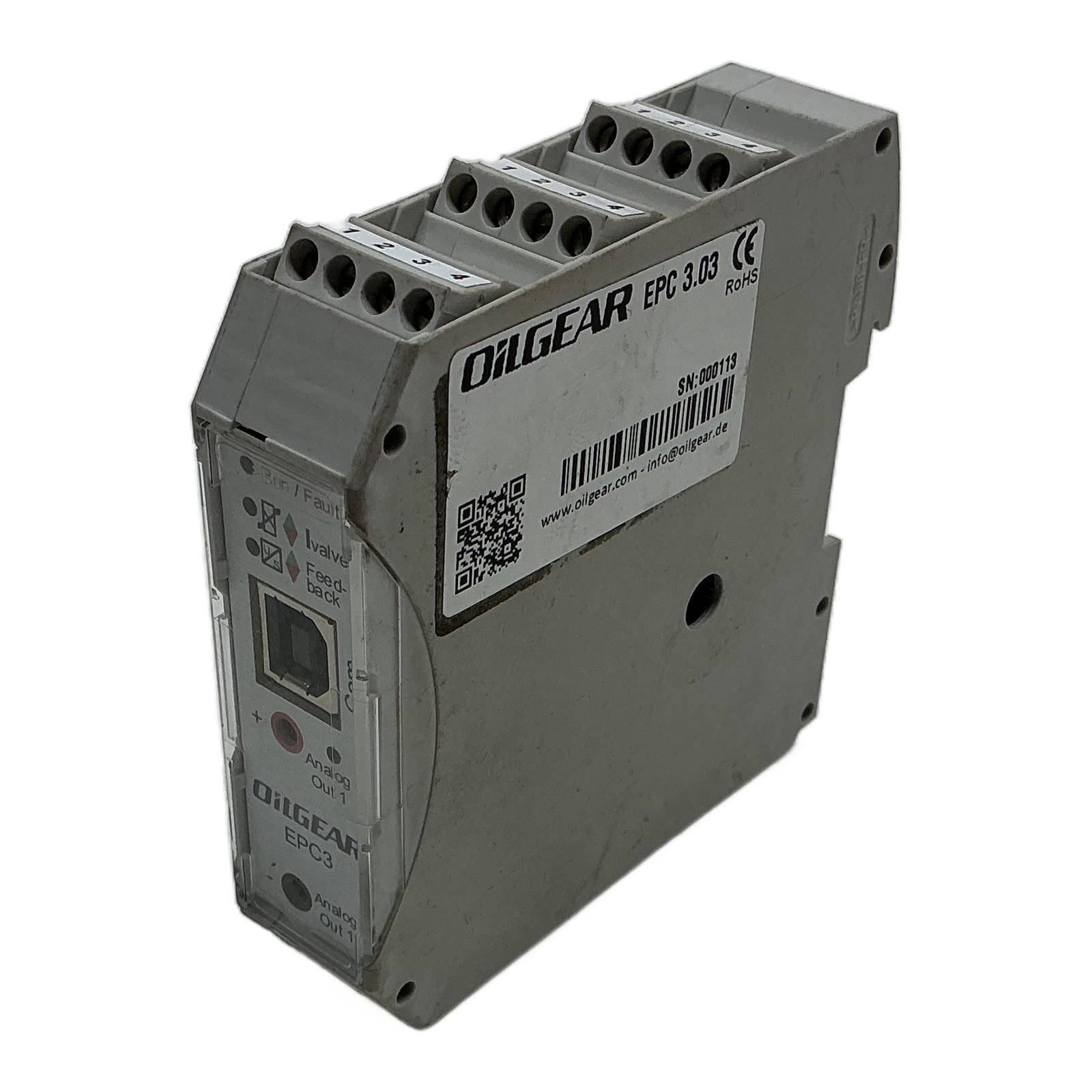 Oilgear EPC 3.03 Digital Amplifier for Proportional Valves Description The Oilgear EPC 3.03 is a single-axis digital amplifier card engineered for the precise control of proportional hydraulic valves. Designed for DIN-rail mounting, this compact unit integrates seamlessly into modern control cabinets. It features a range of analog and digital I/O, including support for LVDT feedback, enabling both open and closed-loop control strategies. Configuration is simplified through its built-in USB port and the EPC Manager software, providing an intuitive interface for setup, tuning, and diagnostics. Specifications Manufacturer: Oilgear Model: EPC 3.03 Product Type: Proportional Valve Amplifier Input Voltage: 24VDC Mounting: DIN Rail Communication Interface: USB, CANopen Analog Inputs: 3 (Differential) Digital Inputs: 1 Analog Outputs: 2 Digital Outputs: 1 Feedback Support: LVDT, Inductive Sensor, Potentiometer Label Info Brand: OILGEAR Model: EPC 3.03 Serial Number: 000113 Application This amplifier is ideal for a wide range of industrial applications, including machine tools, test benches, steel mills, presses, and mobile machinery where precise and dynamic control of hydraulic actuators is essential. Country of Origin Made in Germany. CO2 Impact By reusing this component, you are preventing the emission of approximately 10.0 kg of CO2. This saving is equivalent to the carbon captured by 0.5 trees in a year. Availability This item is in stock and ready for immediate dispatch. Order now from profideals for expert support and fast delivery. FAQ What software is required to configure the Oilgear EPC 3.03? The EPC 3.03 is configured using Oilgear’s EPC Manager software, which connects to the device via its USB port. This software allows for parameter setting, diagnostics, and real-time monitoring of the valve and system performance. Can this amplifier control valves with or without integrated feedback sensors? Yes, the EPC 3.03 is highly versatile. It can operate in an open-loop configuration for simple proportional valves or in a closed-loop configuration using feedback from various sensors, including LVDT, inductive sensors, or potentiometers, for high-precision control. Is the CANopen interface standard on all EPC 3.03 models? The CANopen interface is a standard feature of the EPC 3.03, enabling seamless integration into larger automation networks. It supports various DS401 device profiles, allowing it to function as a slave device under a master PLC or network controller. profideals is not an authorized distributor, reseller or representative of the products featured on this website. All product names, trademarks, brands and logos used on this site are the property of their respective owners. Last Update: Friday, March 13, 2026