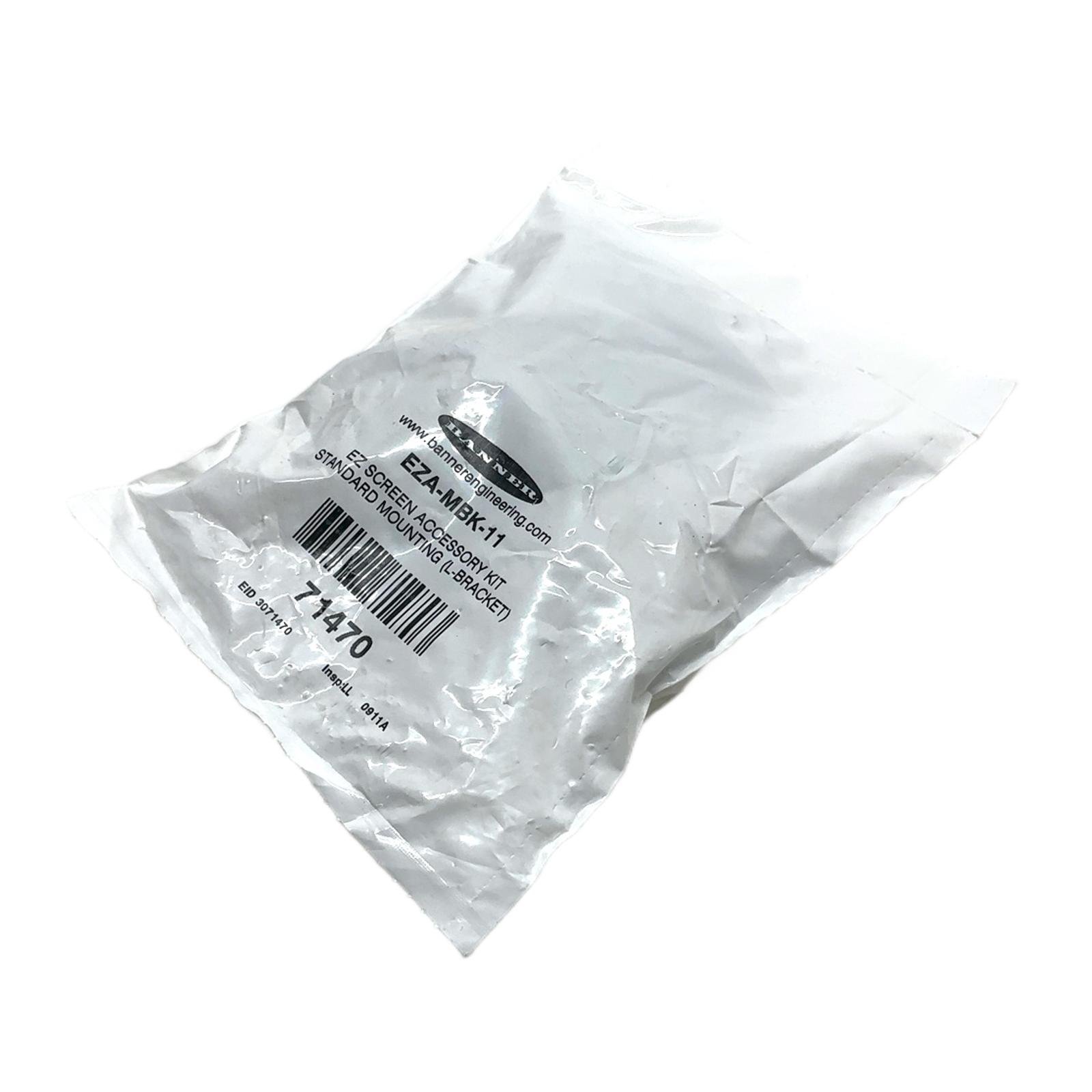 Banner EZA-MBK-11 Mounting Bracket Kit Description The EZA-MBK-11 is a standard mounting bracket accessory kit manufactured by Banner Engineering. It is specifically designed to provide a secure and straightforward mounting solution for Banner’s EZ-SCREEN series of safety light curtains. This kit contains L-brackets and all the necessary hardware to mount the emitter and receiver units to a flat surface, ensuring proper alignment and stable operation of your safety system. Specifications Manufacturer: Banner Engineering Model: EZA-MBK-11 Part Number: 71470 Product Type: Mounting Bracket Kit Bracket Style: L-Bracket (End-cap mounting) Compatibility: Banner EZ-SCREEN LS, LP, and LP Basic series Label Info EZA-MBK-11 EZ SCREEN ACCESSORY KIT STANDARD MOUNTING (L-BRACKET) P/N: 71470 EID: 3071470 Application This kit is ideal for standard industrial applications where safety light curtains need to be mounted securely onto machine frames, posts, or other flat surfaces. It is commonly used in manufacturing, packaging, and material handling environments to safeguard personnel from point-of-operation hazards. Country of Origin Made in the USA. CO2 Impact By purchasing this pre-owned component, you are contributing to a circular economy and have helped avoid approximately 0.4 kg of CO2 emissions. This is equivalent to the savings from driving a car for 2 kilometers. Availability This item is in stock and ready for immediate dispatch. Order now from profideals for expert support and fast delivery. FAQ Which Banner safety light curtains is the EZA-MBK-11 kit compatible with?This kit is primarily designed for the Banner EZ-SCREEN LS, LP, and LP Basic series of safety light curtains. Always consult the specific light curtain’s manual to confirm compatibility and mounting instructions. What is included in the EZA-MBK-11 kit?The kit includes two L-shaped mounting brackets and all the necessary hardware (screws, nuts) for attaching them to both the light curtain end-caps and the mounting surface. A small wrench is also typically included. Can these brackets be used for side mounting?The EZA-MBK-11 provides L-brackets for standard end-cap mounting. For side mounting or other configurations, Banner offers different bracket kits, such as the SMB-series. This kit is not intended for side mounting. Last Update: March 13, 2026 profideals is not an authorized distributor, reseller or representative of the products featured on this website. All product names, trademarks, brands and logos used on this site are the property of their respective owners. The depiction, description or sale of products featuring these names, trademarks, brands and logos is for identification purposes only and is not intended to indicate any affiliation with or authorization by any rights holder.