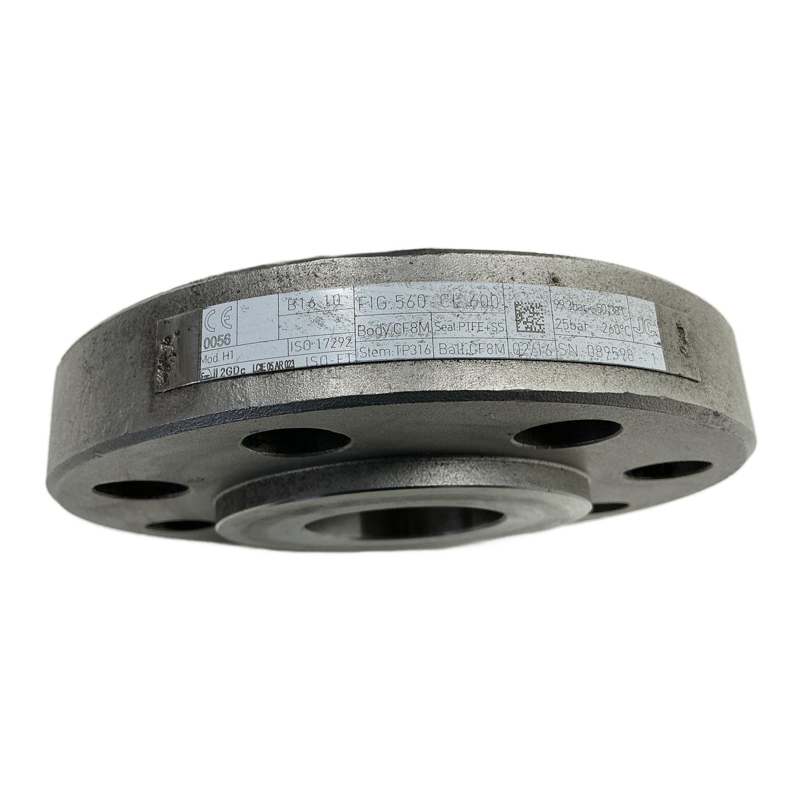 Product Details Description This is a complete, pre-owned actuated valve assembly, featuring a high-quality Emerson El-O-Matic F0350M pneumatic actuator mounted on a JC Valves FIG 560 stainless steel ball valve. The 2-inch (DN50) valve with a Class 600 rating is designed for high-pressure applications. The robust stainless steel (CF8M/316) construction of the valve body, ball, and stem ensures excellent durability and resistance to corrosion, making it suitable for a wide range of industrial process control applications. Specifications Actuator Manufacturer: Emerson El-O-Matic Actuator Type: F0350M Valve Manufacturer: JC Valves Valve Figure: FIG 560 Size: 2 Inch / DN50 Pressure Class: ANSI Class 600 Connection: Flanged (ASME B16.5) Maximum Actuator Pressure: 8 Bar (120 PSI) Label Info Valve Body Material: CF8M Stainless Steel Ball Material: CF8M Stainless Steel Stem Material: TP316 Stainless Steel Seat Material: PTFE+SS Actuator Serial Number: 378005 Valve Serial Number: 089598 Application Ideal for automated flow control in industries such as oil and gas, chemical processing, power generation, and water treatment where high pressure and corrosive media are present. Country of Origin This assembly consists of components made in the Netherlands (Actuator) and Spain (Valve). CO2 Impact Reusing this heavy-duty industrial valve assembly saves approximately 90 kg of CO2 compared to producing a new one. This environmental saving is equivalent to the emissions from driving a car for 450 kilometers. Availability This item is in stock and ready for immediate dispatch. Order now from profideals for expert support and fast delivery. FAQ What type of actuator is the El-O-Matic F0350M?The F0350M is a pneumatic rack and pinion actuator. Based on the model number without an ‘S’ prefix/suffix, this is likely a double-acting model, meaning it requires compressed air to both open and close the valve. What are the flange specifications for the JC FIG 560 valve?The valve is marked with ‘CL 600’ and ‘B16.10’. This indicates it has ANSI Class 600 Raised Face (RF) flanges, conforming to ASME B16.5 dimensions, with a face-to-face length as per ASME B16.10. Is the CF8M body material suitable for my application?CF8M is the cast equivalent of 316 stainless steel. It offers excellent corrosion resistance in a wide range of chemical and industrial environments, particularly against chlorides. However, you should always verify material compatibility with your specific process fluid and operating conditions. profideals is not an authorized distributor, reseller or representative of the products featured on this website. All product names, trademarks, brands and logos used on this site are the property of their respective owners. Last Update: Friday, March 13, 2026