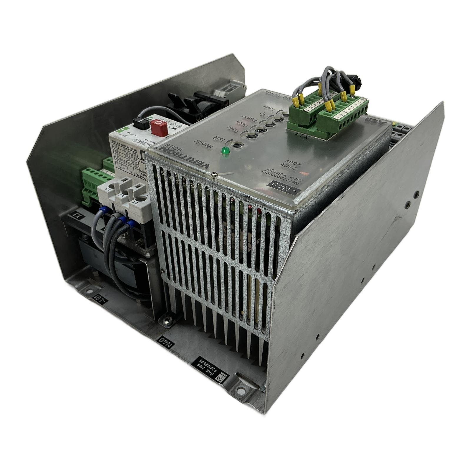 ABB Veritron DC Drive Control Module Description This is a complete control module featuring the classic ABB Veritron GCB6 DC drive. The assembly is designed for robust control of DC motors and includes high-quality components from Klockner-Moeller for motor protection and switching. Housed in a durable steel chassis, this unit is a reliable solution for replacing failed components in older industrial equipment, ensuring continued operation and minimizing downtime. Specifications Main Drive: ABB Veritron GCB6 DC Drive Motor Protector: Klockner-Moeller PKZM 1-16 Current Range (Protector): 10-16 Amps Contactor: Klockner-Moeller DIL EM-10-GI Input Voltage: Selectable 230V or 400V AC Output: Variable DC voltage for motor speed control Adjustments: n_min, n_max, Ramp, I_max, IxR Label Info Brand: ABB Drives, VERITRON, Klockner-Moeller Model: GCB6, PKZM 1-16, DIL EM-10-GI Origin: MADE IN W.GERMANY Application This control module is suitable for a wide range of legacy industrial applications requiring variable speed control of DC motors, such as in conveyor systems, mixers, textile machinery, and other specialized equipment from the era. Country of Origin Manufactured in West Germany. CO2 Impact By purchasing this refurbished module, you are saving approximately 150 kg of CO2 compared to buying a new one. This is equivalent to the emissions from driving a car 750 kilometers. Availability This is an obsolete item, but it is available from our stock. Order now from profideals for expert support and fast delivery. FAQ What type of motor is the Veritron GCB6 designed for? The GCB6 is a thyristor-based converter designed for controlling variable speed permanent magnet or shunt-wound DC motors. Can the current limit on this module be adjusted? Yes, the module has two levels of current adjustment. The I_max potentiometer on the GCB6 drive itself sets the electronic current limit, while the Klockner-Moeller PKZM 1-16 motor protector provides thermal overload protection, which can be set between 10 and 16 Amps. Is this module a direct-on-line (DOL) starter? No, this is a variable speed DC drive. It provides soft-starting capabilities via the ‘Ramp’ adjustment and allows for precise speed control using the ‘n_min’ and ‘n_max’ potentiometers, offering much more sophisticated control than a simple DOL starter. Last Update: Friday, March 13, 2026 profideals is not an authorized distributor, reseller, or representative of the products featured on this website. All product names, trademarks, brands, and logos used on this site are the property of their respective owners.