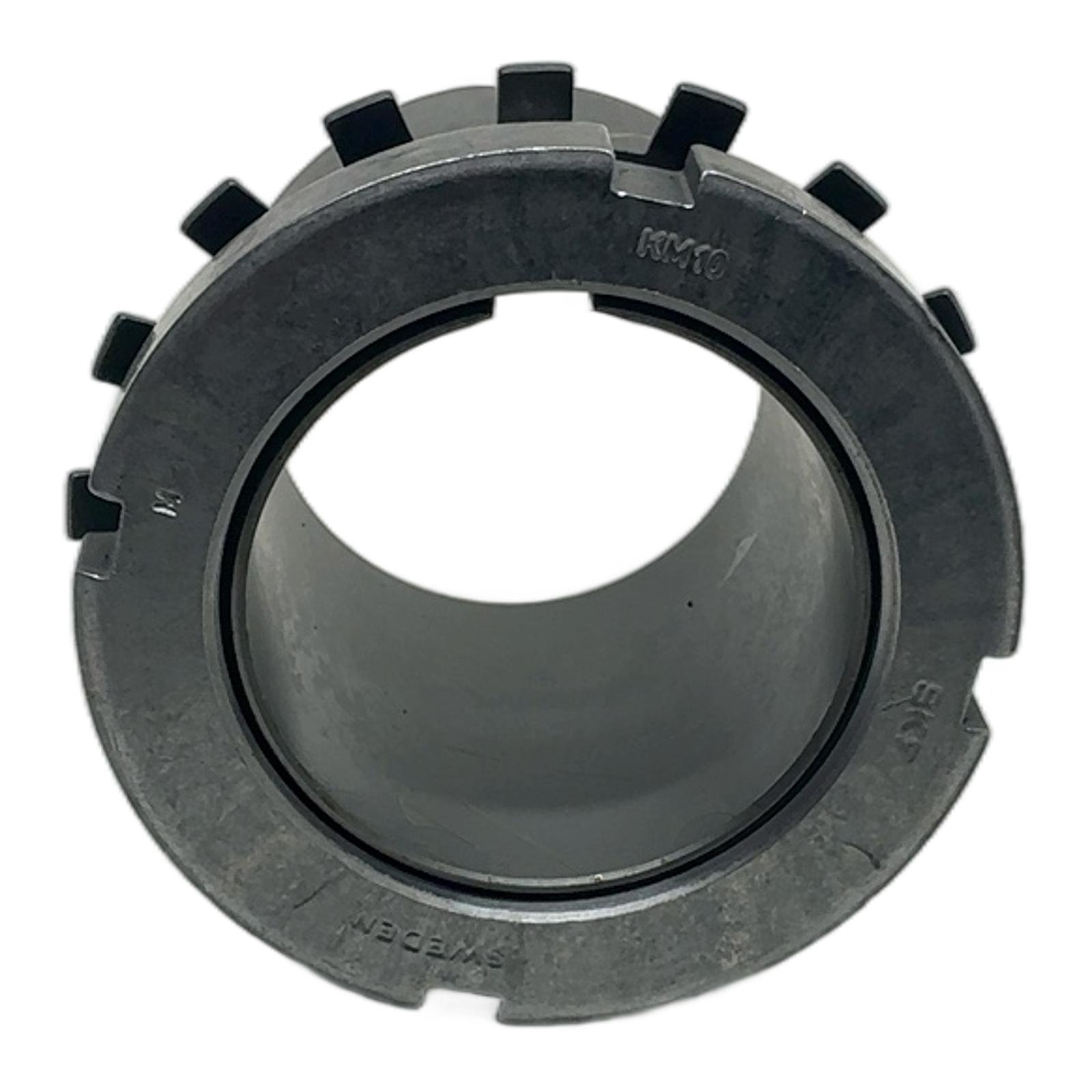 SKF H 2310 Adapter Sleeve Assembly Description The SKF H 2310 is a complete adapter sleeve assembly designed for mounting bearings with a tapered bore onto 45 mm cylindrical shafts. This high-quality component simplifies the installation process, allowing for wider shaft tolerances while ensuring a secure and reliable fit. This assembly includes the H 2310 sleeve, a KM 10 lock nut, and an MB 10 locking washer, providing a full solution for your application. Specifications Manufacturer: SKF Model: H 2310 Product Type: Adapter Sleeve Bore Diameter (Shaft Size): 45 mm Thread Size (G): M50x1.5 Included Lock Nut: KM 10 Included Locking Washer: MB 10 Material: Steel Label Info Part Number: H 2310 EAN: 7316577008664 Application Adapter sleeves are the most commonly used components for locating bearings with a tapered bore onto a cylindrical seat as they can be used on plain or stepped shafts. They are easy to install and require no additional location on the shaft. Country of Origin This product is manufactured in Sweden. CO2 Impact Opting for this pre-owned adapter sleeve prevents the emission of approximately 1.18 kg of CO2 compared to manufacturing a new one. This saving is equivalent to the carbon captured by a tree in over a month. Availability This item is in stock and ready for immediate dispatch. Order now from profideals for expert support and fast delivery. FAQ What is the correct procedure for mounting a bearing using the H 2310 adapter sleeve?The bearing should be pushed up the tapered sleeve until the required reduction in radial internal clearance is achieved. The lock nut is then tightened and secured by bending one of the locking washer tabs into a slot on the nut. Can the H 2310 adapter sleeve be reused after dismounting?Yes, if the sleeve, nut, and washer are in good condition without significant wear, burrs, or thread damage, they can be reused. However, it is often recommended to use a new locking washer for each new installation for maximum security. What are the compatible SKF lock nut and locking washer for the H 2310 sleeve?The H 2310 is designed to be used with the SKF KM 10 lock nut and the SKF MB 10 locking washer. These components are typically supplied together as a set. profideals is not an authorized distributor, reseller or representative of the products featured on this website. All product names, trademarks, brands and logos used on this site are the property of their respective owners. Friday, March 13, 2026