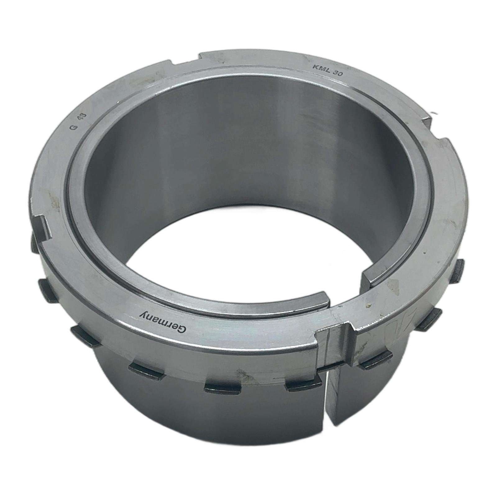 FAG H3030 Adapter Sleeve for 140mm Shafts Description The FAG H3030 is a premium-quality adapter sleeve designed for the simple and reliable mounting of bearings with a tapered bore onto cylindrical shafts. As a product of the Schaeffler Group, it guarantees exceptional precision, durability, and performance, making it suitable for a wide range of industrial applications, including conveyors, industrial fans, and power transmission systems. Specifications Manufacturer: FAG Model: H3030 Shaft Diameter (d1): 140 mm Outer Diameter (d): 175 mm Overall Width (B1): 102 mm Associated Lock Nut: KM 30 Associated Lock Washer: MB 30 Material: High-grade steel Label Info Part Number: H3030 Order Code: 29061200 EAN: 4012801216869 Application Adapter sleeves are the most commonly used components for locating bearings with a tapered bore onto a cylindrical shaft seating. They can be used on plain shafts, allowing for a less precise shaft tolerance and simplifying the mounting and dismounting process. Country of Origin This product is proudly manufactured in Germany. CO2 Impact Opting for this component helps save 8.8 kg of CO2 compared to new production. This is equivalent to driving a car for 44 kilometers. Availability This item is in stock and ready for immediate dispatch. Order now from profideals for expert support and fast delivery. FAQ Question? What are the required lock nut and lock washer for the FAG H3030 adapter sleeve? The H3030 adapter sleeve is designed to be used with a KM 30 lock nut and an MB 30 lock washer. These components are necessary to securely fasten the bearing onto the sleeve and the sleeve onto the shaft. Question? What is the correct procedure for mounting a bearing onto an H3030 sleeve? Mounting should be done by either measuring the clearance reduction or by measuring the locknut tightening angle. The most reliable method is measuring the reduction in radial internal clearance using a feeler gauge. This ensures the correct interference fit is achieved without overloading the bearing. Refer to the FAG mounting instructions for detailed values. Question? Is this adapter sleeve suitable for high-speed applications? Yes, the H3030 is a standard precision component suitable for a wide range of applications, including those with high rotational speeds. However, proper balancing of the entire shaft assembly, correct lubrication, and achieving the right operational clearance are critical for optimal performance and longevity at high speeds. profideals is not an authorized distributor, reseller or representative of the products featured on this website. All product names, trademarks, brands and logos used on this site are the property of their respective owners. Friday, March 13, 2026