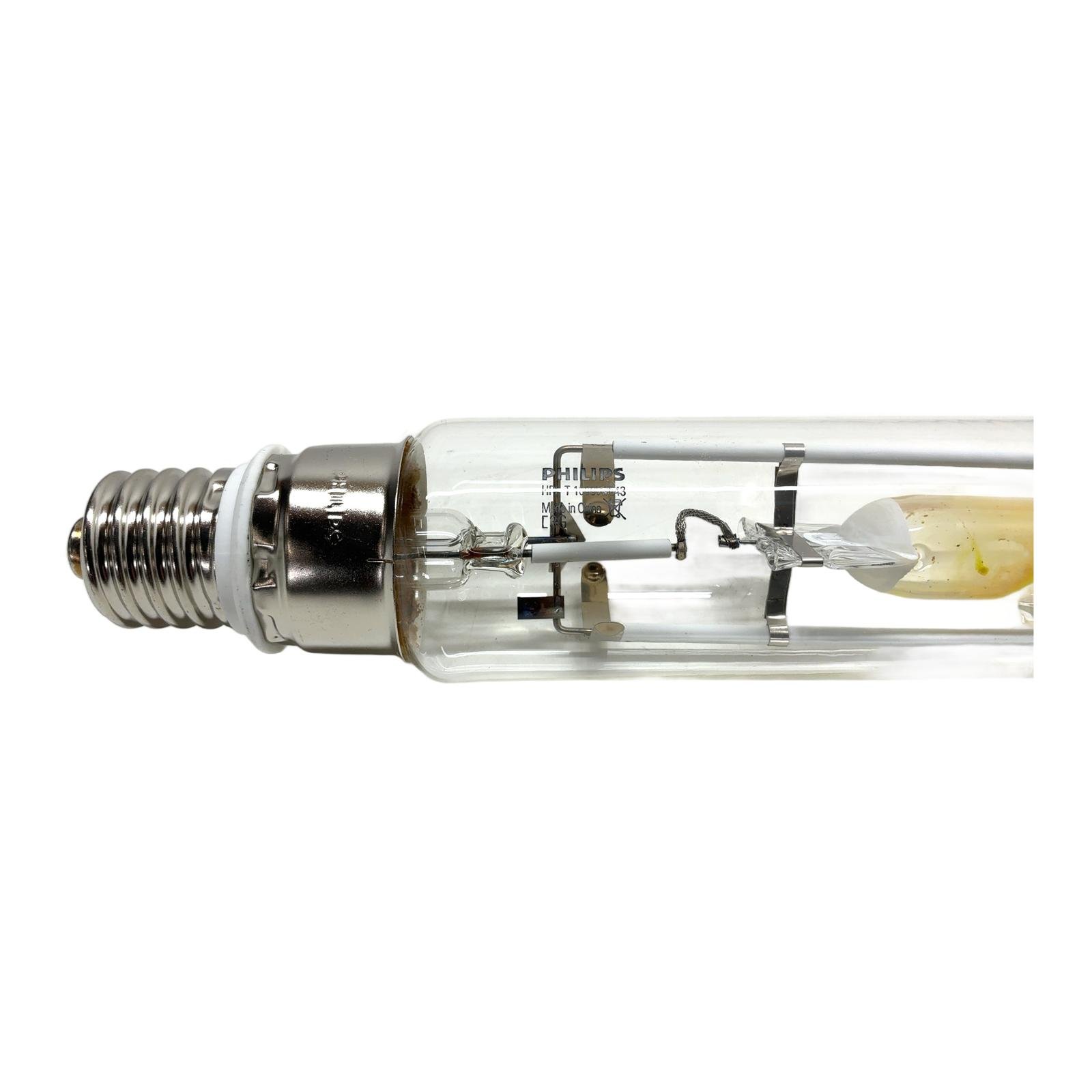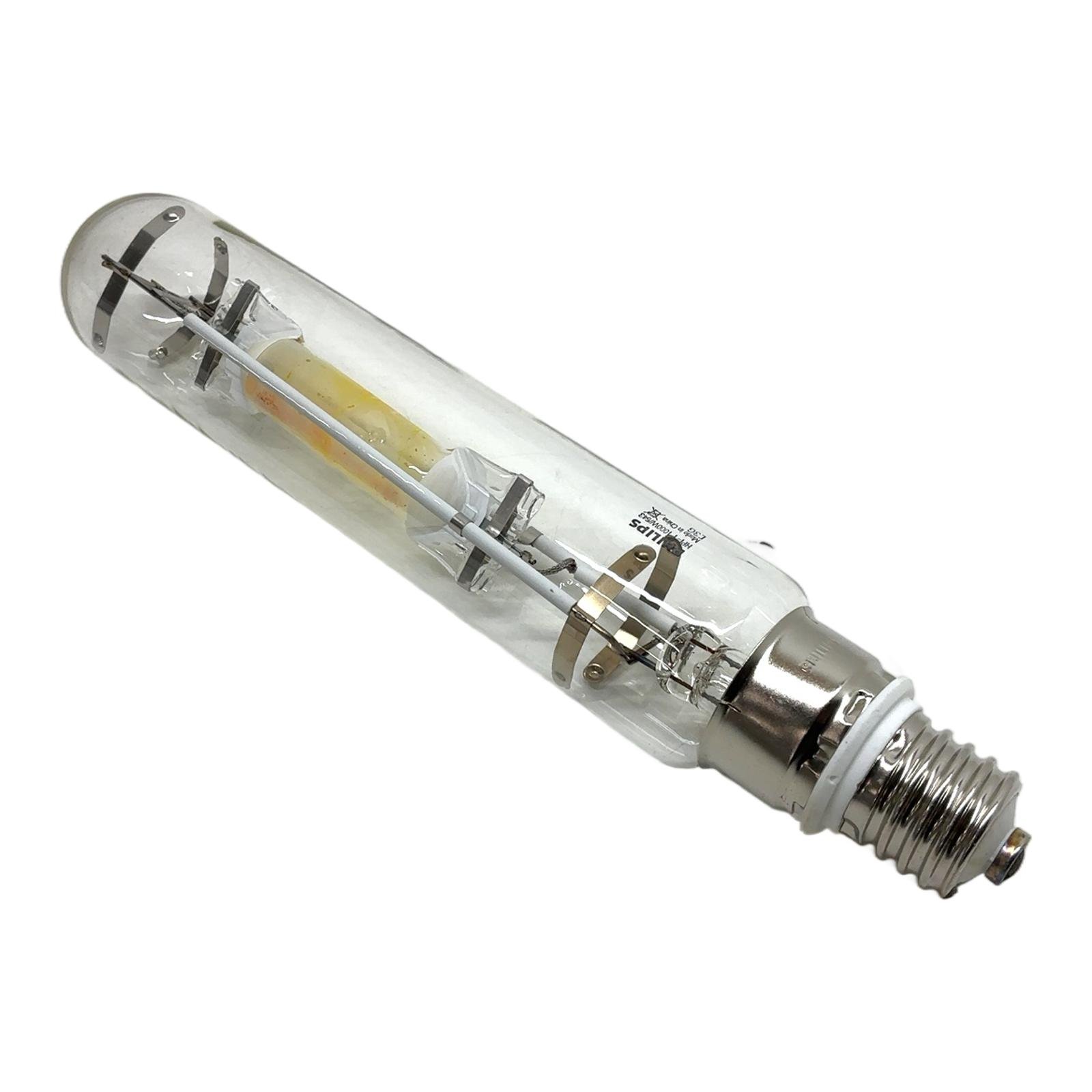 Philips HPI-T 1000W/543 E40 Metal Halide Lamp Description The Philips HPI-T 1000W/543 is a high-performance metal halide lamp designed for professional lighting applications. It delivers a powerful 1000W output with a neutral white light (4300K), making it ideal for illuminating large indoor and outdoor spaces where high visibility is crucial. Its robust tubular design and standard E40 base ensure compatibility with a wide range of industrial fixtures. This lamp requires a compatible ballast and ignitor for operation. Specifications Manufacturer: Philips Model: HPI-T 1000W/543 Power Rating: 1000 W Lamp Base: E40 Color Code: 543 Color Temperature: 4300 K (Neutral White) Luminous Flux: Approximately 85,000 lm Operating Position: Universal Label Info Brand: PHILIPS Type: HPI-T 1000W/543 Order Code: 183736 EAN: 8711500183736 Application This lamp is suitable for sports lighting, floodlighting of buildings and monuments, and lighting for industrial areas, harbors, and construction sites. Country of Origin Made in China. CO2 Impact Opting for this reused lamp over a new one avoids the emission of approximately 20 kg of CO2, equivalent to driving a car for 100 km. Availability This item is in stock and ready for immediate dispatch. Order now from profideals for expert support and fast delivery. FAQ Question?Do I need a special ballast to operate this HPI-T 1000W lamp?Yes, this is a high-intensity discharge lamp and it requires a specific 1000W ballast compatible with HPI/metal halide lamps, as well as an appropriate ignitor. It cannot be connected directly to mains voltage. Question?Can this lamp be operated in any position?Yes, this specific Philips HPI-T model is rated for a universal operating position, meaning it can be installed vertically, horizontally, or at any angle without affecting its performance or lifespan. Question?How long does the lamp take to reach full brightness after being switched on?Like most metal halide lamps, the HPI-T 1000W has a warm-up period of approximately 5 to 10 minutes to reach its full luminous output and stable color temperature. If turned off and on again while hot, it will also have a hot-restrike delay. Last Update: Friday, March 13, 2026 profideals is not an authorized distributor, reseller or representative of the products featured on this website. All product names, trademarks, brands and logos used on this site are the property of their respective owners.