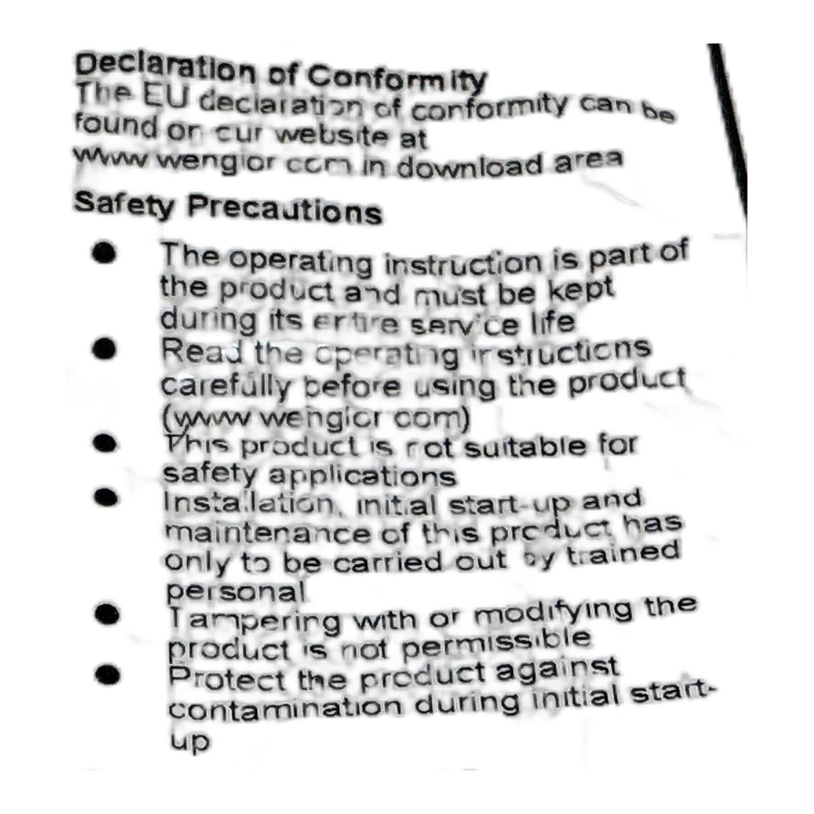 Wenglor I30H008 Inductive Proximity Sensor Description The Wenglor I30H008 is a high-performance inductive sensor with an increased switching distance, designed for reliable object detection in industrial environments. Its M30 threaded metal housing allows for easy and secure mounting. This sensor is ideal for applications in factory automation, packaging, and material handling where long-range detection is critical. Specifications Manufacturer: Wenglor Type Number: I30H008 Sensing Range: 22 mm Output Type: PNP, Normally Open (NO) Operating Voltage: 10 to 30 V DC Max Output Current: 150 mA Housing: M30 x 1.5, Chrome-plated brass Mounting: Semi-flush Connection: M12 connector, 4-pin Label Info Range: 22 mm Ub: 10…30 V DC PNP 150 mA Application This sensor is commonly used for position detection of metallic parts on conveyor systems, presence detection in assembly lines, and end-of-travel sensing in automated machinery. Country of Origin Made in Germany. CO2 Impact Opting for a reconditioned I30H008 sensor prevents the emission of approximately 4.8 kg of CO2, which is comparable to the savings from not driving a standard car for 24 kilometers. Availability This item is in stock and ready for immediate dispatch. Order now from profideals for expert support and fast delivery. FAQ Question?What does “semi-flush” mounting mean for the I30H008 sensor? Answer:Semi-flush (or quasi-flush) mounting means the sensor can be partially embedded into a metal surface without significantly affecting its sensing distance. For the I30H008, the datasheet specifies the exact mounting conditions, allowing for a more compact installation than a purely non-flush sensor while offering a better range than a flush-mountable one. Always refer to the manufacturer’s mounting guidelines for optimal performance. Question?Is the PNP output of this sensor a Normally Open (NO) or Normally Closed (NC) type? Answer:The Wenglor I30H008 features a PNP Normally Open (NO) switching output. This means the output is switched ON (conducts current) when a metal object is detected within its 22mm sensing range and is OFF when no object is present. Question?Can this sensor be used to detect non-ferrous metals like aluminum or brass? Answer:Yes, the I30H008 can detect non-ferrous metals, but its switching distance will be reduced. Inductive sensors work best with ferrous metals like steel. For other metals, a correction factor applies. For example, the Wenglor datasheet specifies a correction factor of approximately 0.34 for aluminum, meaning the effective sensing distance for an aluminum target would be around 7.48mm. profideals is not an authorized distributor, reseller or representative of the products featured on this website. All product names, trademarks, brands and logos used on this site are the property of their respective owners. Last Update: Friday, March 13, 2026