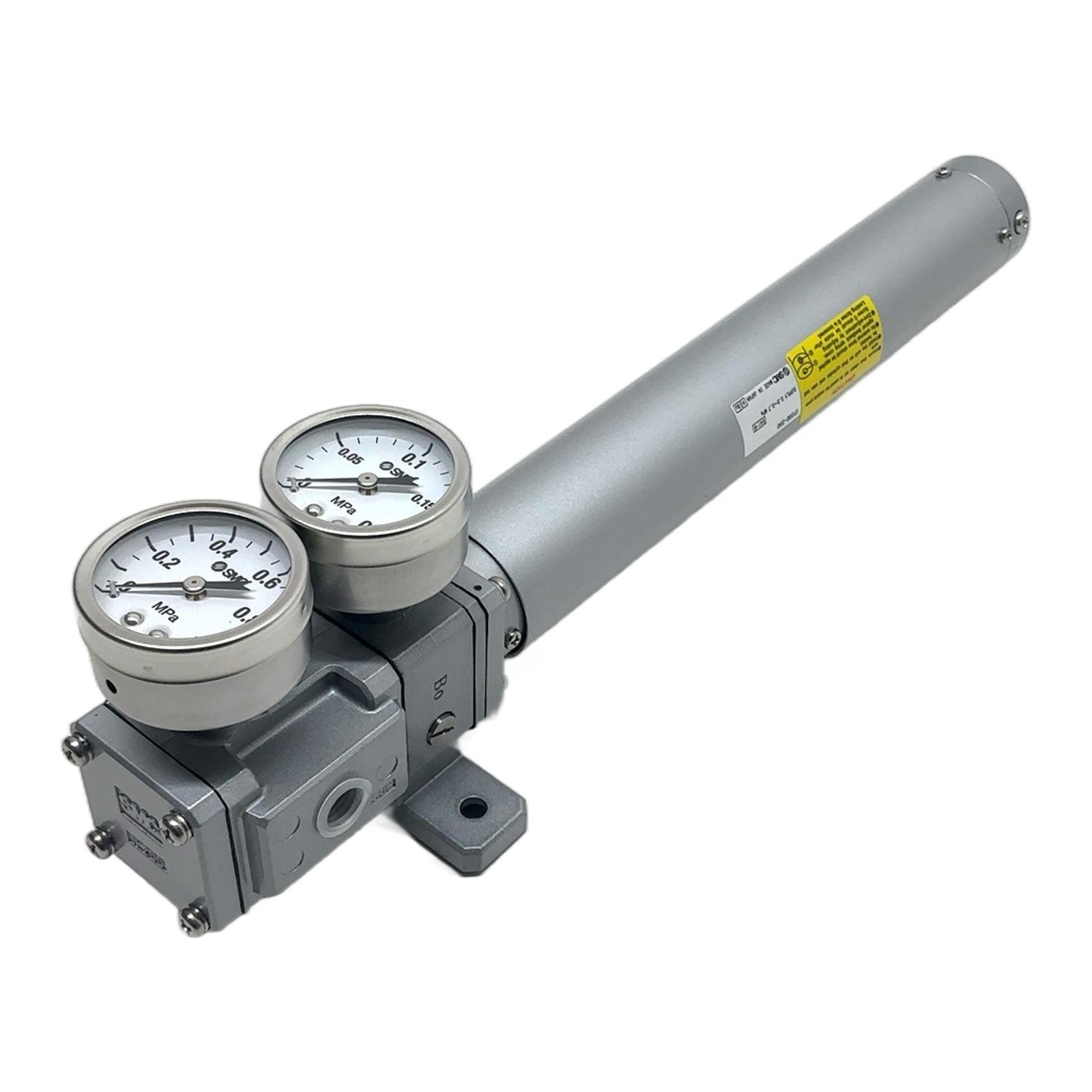 SMC Pneumatic Positioner IP200-200 with 200mm Stroke Description The SMC IP200-200 is a high-precision linear pneumatic positioner designed to provide accurate and responsive control for linear pneumatic actuators. It operates based on a pneumatic input signal, adjusting the actuator’s position with high reliability. This unit is built for durability in demanding industrial settings, ensuring consistent performance in process control applications. Specifications Manufacturer: SMC Type: Linear Pneumatic Positioner Model: IP200-200 Stroke: 200 mm Supply Pressure: 0.2 to 0.7 MPa Action: Designed for single or double-acting actuators Label Info Model: IP200-200 Order Code: IP2A49 Supply Pressure: 0.2 ~ 0.7 MPa Application This positioner is ideally suited for applications requiring precise modulation of control valves, dampers, louvers, and other linear-motion devices in industries such as chemical processing, water treatment, and power generation. Country of Origin Made in Japan. CO2 Impact By purchasing this reconditioned component, you are contributing to a circular economy and avoiding 70.0 kg of CO2 emissions, which is comparable to driving a car 350 kilometers. Availability This is a New-Old-Stock (NOS) item in its original, opened packaging. It is in excellent condition and available for immediate dispatch. Order now from profideals for expert support and fast delivery. FAQ What is the required input signal for the IP200-200?This is a pneumatic-to-pneumatic (P/P) positioner. It requires a pneumatic input signal, typically in the range of 0.02 to 0.1 MPa, to control the output position. It does not accept a 4-20mA electrical signal directly. Can this positioner be used for double-acting actuators?Yes, the SMC IP200 series is designed to control both single-acting and double-acting linear pneumatic actuators by appropriately connecting the output ports. What is the ambient temperature range for operating this device?The standard operating temperature range for the IP200 series is from -5 to 60 deg C (23 to 140 deg F), ensuring reliable operation in most industrial environments. profideals is not an authorized distributor, reseller or representative of the products featured on this website. All product names, trademarks, brands and logos used on this site are the property of their respective owners. Last Update: Friday, March 13, 2026