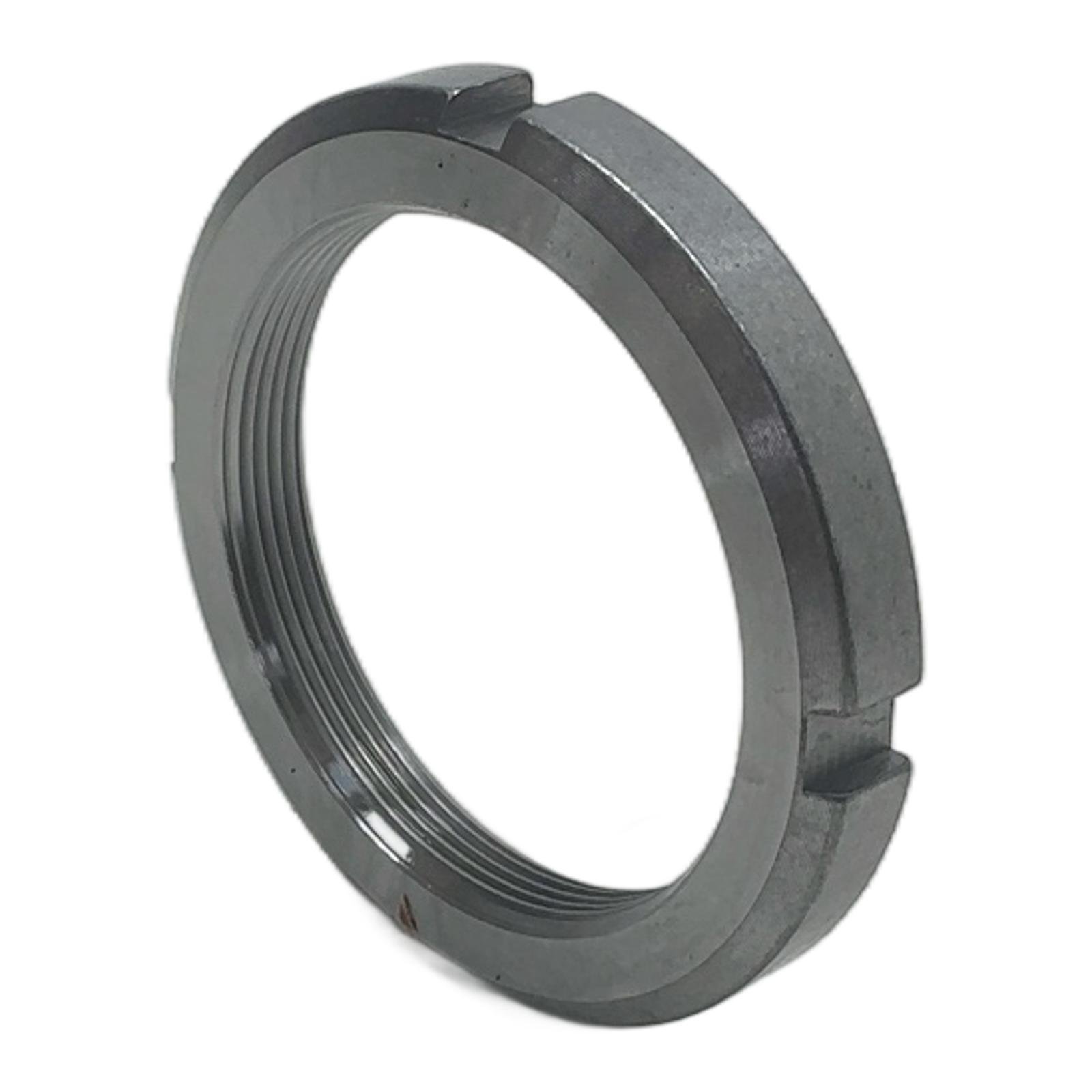 FAG KM15 Lock Nut for Bearing Mounting Description The FAG KM15 is a precision-engineered lock nut, also known as a shaft or axle nut, designed according to DIN 981 standards. It is used to securely locate bearings and other machine components on a shaft. This nut facilitates the mounting of bearings with a tapered bore onto a tapered shaft seat or adapter sleeve and is essential for their correct and reliable operation. It features an M75x2 metric fine thread for precise adjustment and tightening. Specifications Brand: FAG Model: KM15 Thread: M75x2 Outside Diameter: 100 mm Width: 12 mm Standard: DIN 981 Material: Steel Corresponding Locking Washer: MB15 (not included) Label Info Manufacturer: FAG Part Number: KM15 Order Code: 05011100 Application Commonly used in mechanical engineering, power transmission, agricultural machinery, and industrial gearboxes to secure bearings, ensuring longevity and performance. Country of Origin Germany CO2 Impact By choosing this reused part, you are contributing to a circular economy and avoiding approximately 0.69 kg of CO2 emissions compared to a new production. This is equivalent to the emissions of driving a car for 3.5 kilometers. Availability This item is in stock and ready for immediate dispatch. Order now from profideals for expert support and fast delivery. FAQ What is the correct tightening procedure for a KM15 lock nut?The KM15 should be tightened to remove clearance and then secured using a corresponding MB15 locking washer. The washer tab is bent into one of the four slots on the nut’s circumference to prevent it from loosening. Is this nut compatible with adapter sleeves?Yes, the KM15 lock nut is specifically designed for use with adapter sleeves (e.g., H series) and withdrawal sleeves (e.g., AH series) to mount bearings with a tapered bore. Can I reuse a locking washer with this nut?It is strongly recommended to use a new MB15 locking washer each time the nut is installed to ensure a secure and reliable lock. Reusing a washer can lead to metal fatigue and failure of the locking tab. Last Update: Friday, March 13, 2026 profideals is not an authorized distributor, reseller or representative of the products featured on this website. All product names, trademarks, brands and logos used on this site are the property of their respective owners.