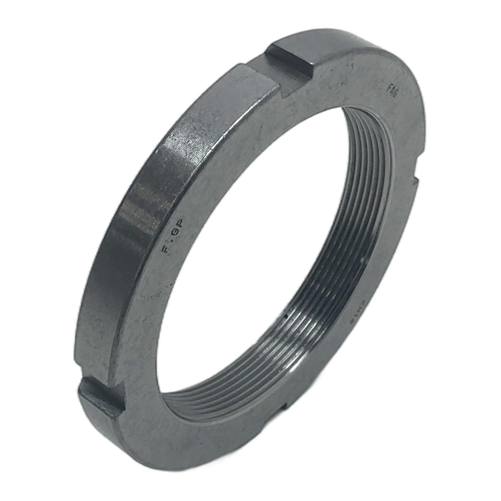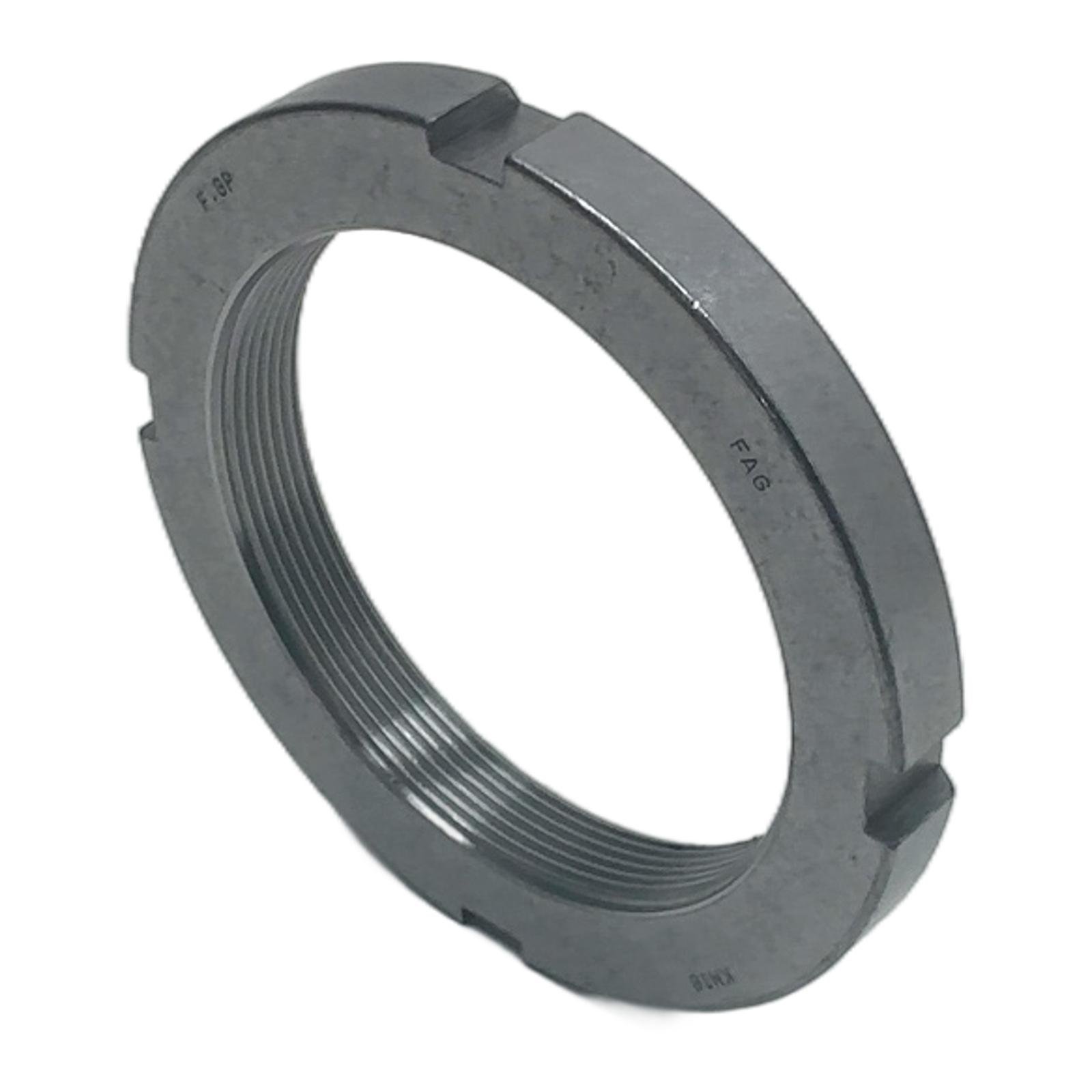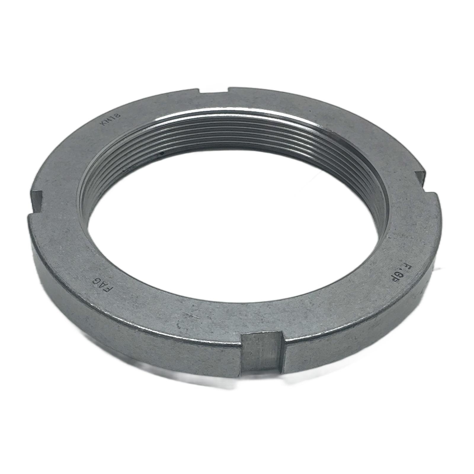 FAG KM18 Lock Nut – M90x2 Description The FAG KM18 is a high-precision lock nut, designed for securing bearings and other components onto a shaft. It is manufactured to strict tolerances to ensure a reliable and secure fit, preventing axial movement and maintaining bearing preload. Its simple yet effective design with four peripheral slots allows for easy tightening and adjustment using a standard hook spanner. Specifications Type: Lock Nut Model: KM18 Thread Size: M90x2 Outside Diameter: 120 mm Width: 15 mm Material: Steel Label Info Brand: FAG Model: KM18 Part Number: 24081100 Application Used extensively in mechanical engineering and machine building for applications requiring the secure mounting of bearings on shafts or adapter sleeves. Common in gearboxes, pumps, conveyors, and other rotating machinery. Country of Origin Germany CO2 Impact Opting for this component helps avoid the CO2 emissions associated with new production, contributing to a more sustainable industrial environment. This single item saves approximately 0.88 kg of CO2. Availability This item is in stock and available for immediate dispatch. Order now from profideals for expert support and fast delivery. FAQ What is the correct locking device for a KM18 nut? The standard corresponding locking device is an MB18 lock washer, which engages with one of the nut’s slots and a keyway in the shaft to prevent rotation. What tool is used to tighten a KM18 lock nut? A hook spanner (or C-spanner) is required. For the KM18, the corresponding tool designation is typically a HN 18 or a universal hook spanner suitable for a 120 mm diameter. What is the recommended tightening procedure for this nut? The procedure varies by application. It generally involves tightening the nut to a specific torque or angle of rotation to achieve the correct bearing internal clearance or preload, as specified by the machine or bearing manufacturer. profideals is not an authorized distributor, reseller or representative of the products featured on this website. All product names, trademarks, brands and logos used on this site are the property of their respective owners. Last Update: Friday, March 13, 2026