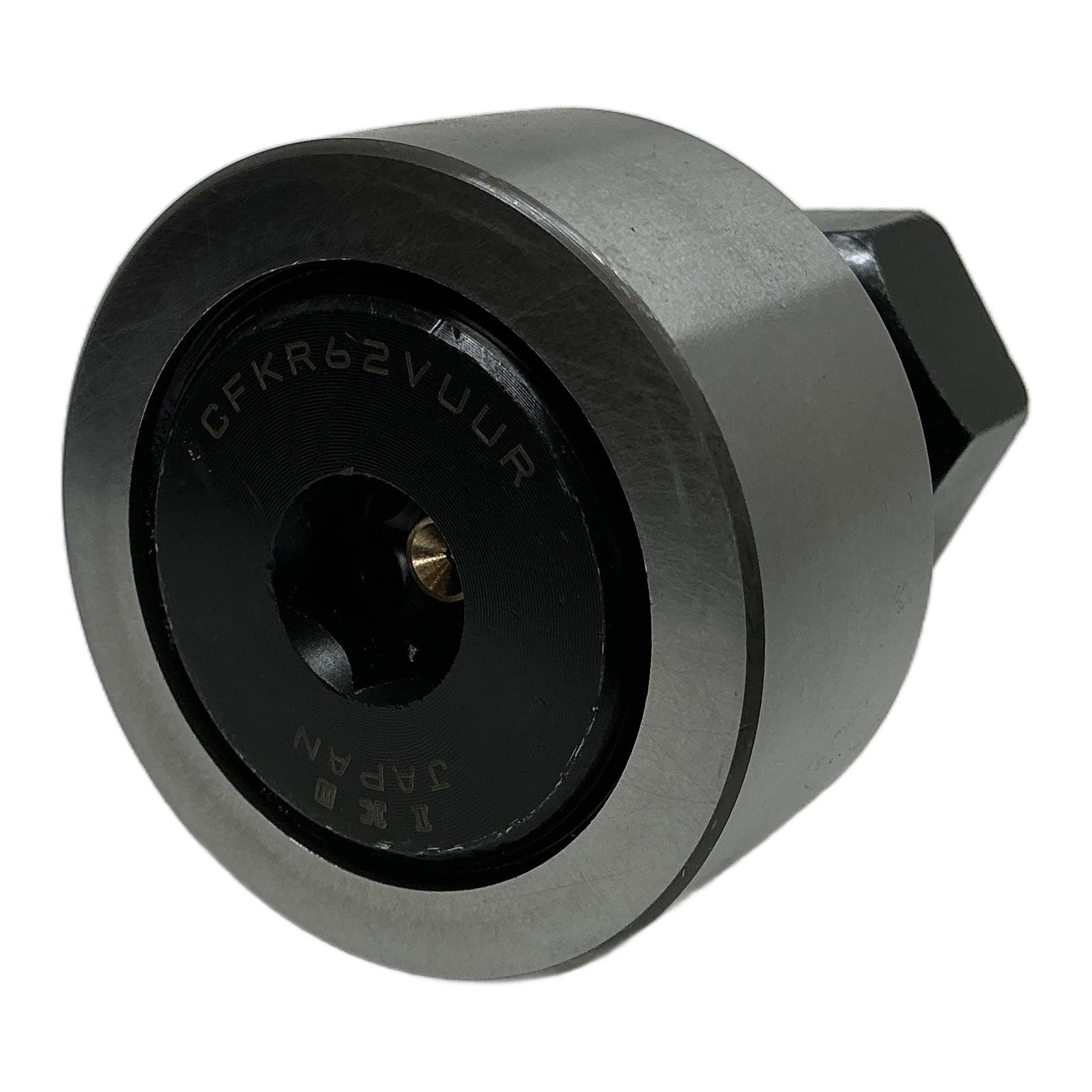 IKO CFKR62VUUR Cam Follower Bearing Description The IKO CFKR62VUUR is a high-rigidity, stud-type cam follower designed for demanding automation and linear motion applications. It features a thick outer ring and a full complement of needle rollers, allowing it to handle high load capacities with minimal deformation. The crowned outer ring helps to mitigate edge loading, ensuring smooth operation and extended bearing life. This model includes contact seals on both sides for excellent dust and splash protection. Specifications Manufacturer: IKO Type: KRV 62 PP / CFKR62VUUR Category: Cam Follower Bearing Outer Diameter: 62 mm Stud Diameter: 24 mm Roller Width: 29 mm Overall Length: 70 mm Sealing: Double Contact Seals (VUU) Mounting Style: Hexagon Socket Label Info Brand: IKO Model: KRV 62 PP Part Number: CFKR62VUUR Application Ideal for use in machine tools, industrial robots, electronic component machinery, and office automation equipment where precision and high load capacity are essential. Country of Origin Made in Japan. CO2 Impact By choosing this reused component, you are avoiding the production of a new one, saving an estimated 1.5 kg of CO2. This is comparable to the emissions saved by driving a car for 7.5 kilometers. Availability This item is in stock and ready for immediate dispatch. Order now from profideals for expert support and fast delivery. FAQ What is the advantage of a ‘crowned’ outer ring on the CFKR62VUUR? The crowned (slightly convex) profile of the outer ring helps to prevent excessive edge loading when the cam follower is misaligned relative to the track surface. This reduces wear and extends the service life of both the bearing and the cam track. What does the ‘VUU’ suffix signify in this IKO model number? The ‘VUU’ suffix indicates that the bearing is equipped with double seals of the contact type. These seals, made from synthetic rubber, are fitted on both sides of the inner ring to effectively prevent the ingress of dust and foreign particles while retaining grease, ensuring long-term maintenance-free operation. What is the correct lubrication procedure for this cam follower? The CFKR62VUUR is pre-packed with high-quality lithium-soap grease. For most applications, it is ready for use without initial lubrication. For relubrication, grease can be supplied through the oil hole in the center of the stud head. It is crucial to use a compatible grease and follow the machinery manufacturer’s recommended lubrication intervals. profideals is not an authorized distributor, reseller or representative of the products featured on this website. All product names, trademarks, brands and logos used on this site are the property of their respective owners. Last Update: Friday, March 13, 2026