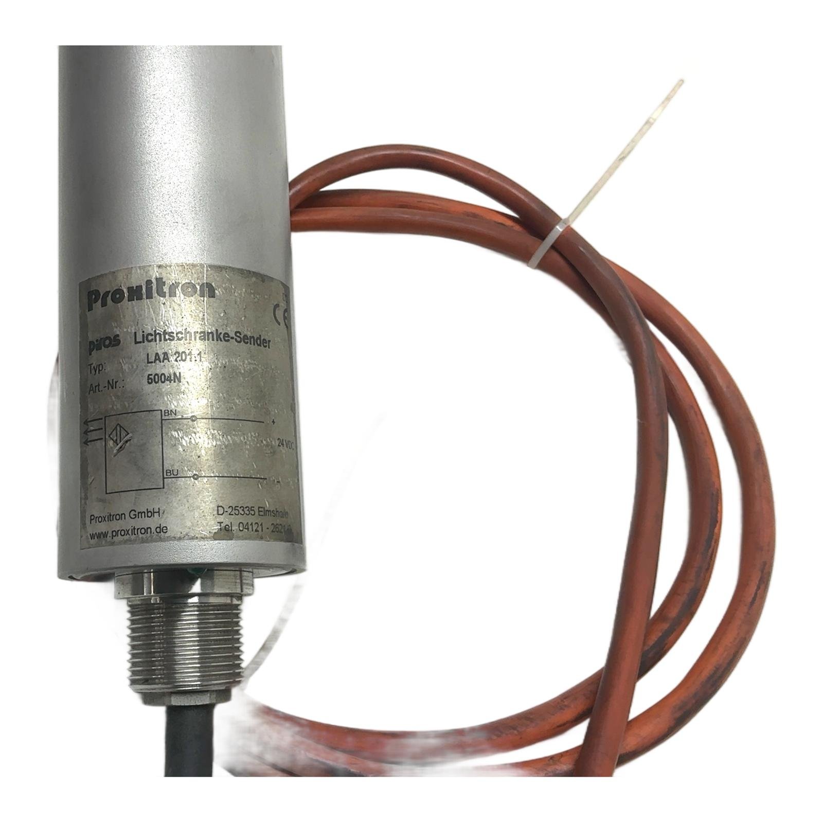 Proxitron Infrared Light Barrier Transmitter Description This is a LAA 201.1 infrared through-beam transmitter from Proxitron’s robust ‘piros’ series. Engineered for reliability in challenging industrial settings, this sensor provides a powerful infrared beam for long-distance detection tasks. It operates on a 24V DC power supply and features a durable aluminum casing. This unit is the transmitter (‘Sender’) and requires a compatible Proxitron receiver to form a complete light barrier system. Specifications Manufacturer: Proxitron Type: Infrared Through-beam Transmitter Model: LAA 201.1 Article Number: 6004N Operating Voltage: 24V DC Housing: Aluminium Sensing Range: Up to 120 m (with corresponding receiver LAE 201.1) Label Info Brand: Proxitron Product: piros Lichtschranke-Sender Typ: LAA 201.1 Art.-Nr.: 6004N Application Ideal for process control and automation in heavy industries such as steel mills, foundries, and large-scale manufacturing. It is used for presence detection, positioning, and monitoring of materials over long distances where environmental factors like dust or steam may be present. Country of Origin Made in Germany. CO2 Impact Choosing this reused component saves approximately 20 kg of CO2, equivalent to the emissions from a 100 km car journey. Your purchase supports a sustainable circular economy. Availability This item is in stock and ready for immediate dispatch. Order now from profideals for expert support and fast delivery. FAQ What is the required receiver unit for this LAA 201.1 transmitter?The designated corresponding receiver unit for this transmitter is the Proxitron LAE 201.1. Using the correct pair ensures optimal performance and maximum sensing range. What is the maximum sensing range of this light barrier system?When paired with the correct LAE 201.1 receiver, this system can achieve a maximum sensing range of up to 120 meters, making it suitable for very large areas. Is this sensor suitable for high-temperature environments?This standard aluminum model has a specified operating temperature range. For extreme heat applications, Proxitron offers versions with specialized cooling jackets or protective housings. Please check the datasheet to confirm if this version meets your temperature requirements. profideals is not an authorized distributor, reseller or representative of the products featured on this website. All product names, trademarks, brands and logos used on this site are the property of their respective owners. Laatst bijgewerkt: Friday, March 13, 2026
