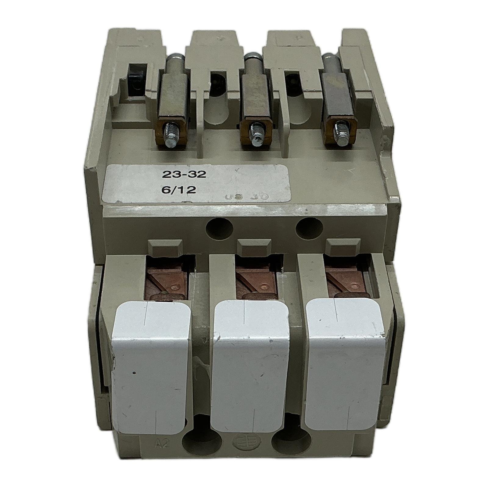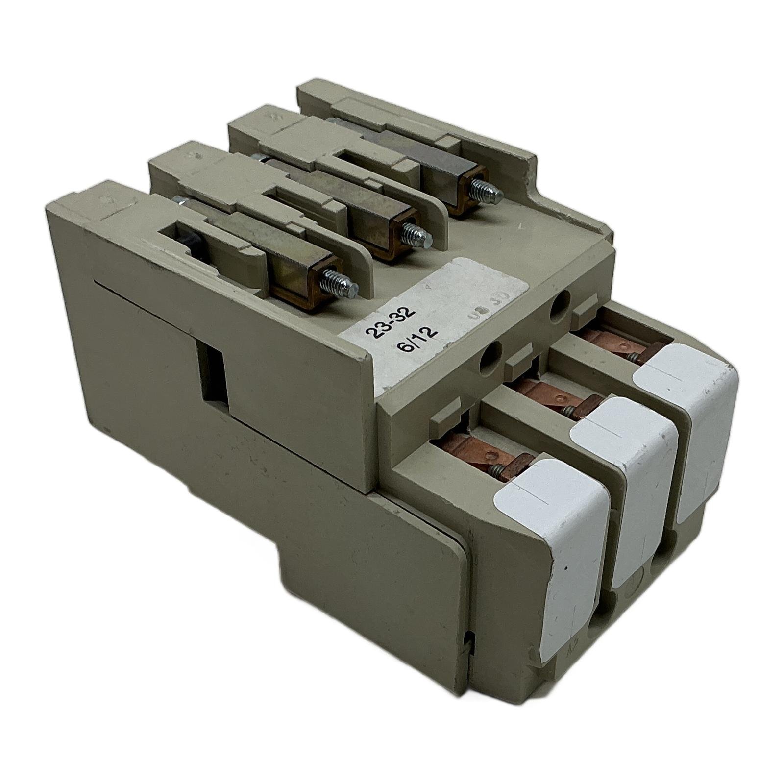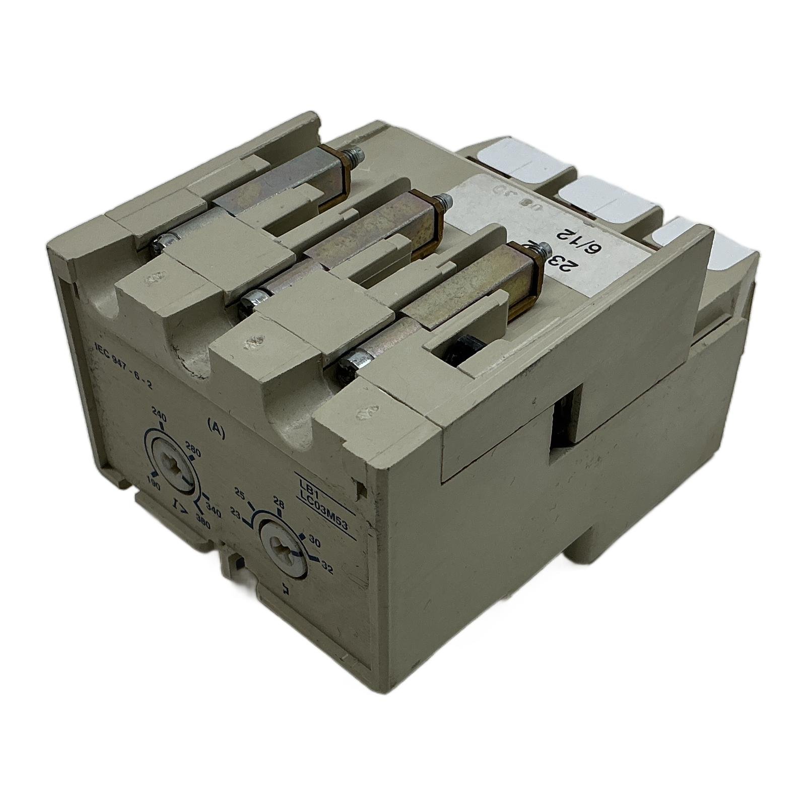 Telemecanique LB1LC03M32 Thermal Overload Relay Description The Telemecanique LB1LC03M32 is a 3-pole thermal overload relay designed to protect motors from overcurrents, phase loss, and prolonged starting times. It offers a wide, adjustable current setting range from 23A to 32A, making it suitable for a variety of motor applications. This relay is engineered for direct mounting onto Telemecanique LC1-D series contactors, providing a compact and efficient motor starter solution. Specifications Manufacturer: Telemecanique (Schneider Electric) Model: LB1LC03M32 Product Type: Thermal Overload Relay Number of Poles: 3 Thermal Protection Adjustment Range: 23 to 32 A Rated Insulation Voltage (Ui): 690V AC Trip Class: Adjustable Class 10 / Class 20 Mounting: Direct mount on contactor Label Info Brand: Telemecanique Model: LB1 LC03M.. Ui: 690V a.c. max. Certifications: UL, SP, NOM, CE Application This relay is ideal for protecting AC motors in industrial environments, including applications such as pumps, fans, conveyors, and machine tools, particularly where reliable overload protection is critical. Country of Origin Made in France. CO2 Impact Opting for this pre-owned component avoids the emission of approximately 6 kg of CO2 compared to manufacturing a new one. This choice supports sustainable industrial practices. Availability This item is a reliable, tested component from our inventory. Order now from profideals for expert support and fast delivery. FAQ What contactors is the LB1LC03M32 compatible with? The LB1LC03M32 is designed for direct mounting on Telemecanique (Schneider Electric) TeSys D-line contactors, specifically models LC1-D09, LC1-D12, LC1-D18, LC1-D25, LC1-D32, and LC1-D38. How do I set the trip class between Class 10 and Class 20? On the side of the relay, there is a small dial labeled “CLASS”. Using a flat-head screwdriver, you can turn this dial to select either the Class 10 or Class 20 trip curve. Class 10 is for standard motor starting conditions, while Class 20 is for heavy-duty applications with longer start times. Does this relay have a manual or automatic reset function? Yes, the LB1 series features a selectable manual/automatic reset function. This is typically controlled by a blue push-button on the front of the unit. Pushing it in selects manual reset, while pulling it out selects automatic reset. It also features a red ‘Stop’ button and a yellow ‘Trip’ indicator. profideals is not an authorized distributor, reseller or representative of the products featured on this website. All product names, trademarks, brands and logos used on this site are the property of their respective owners. Last Update: Friday, March 13, 2026