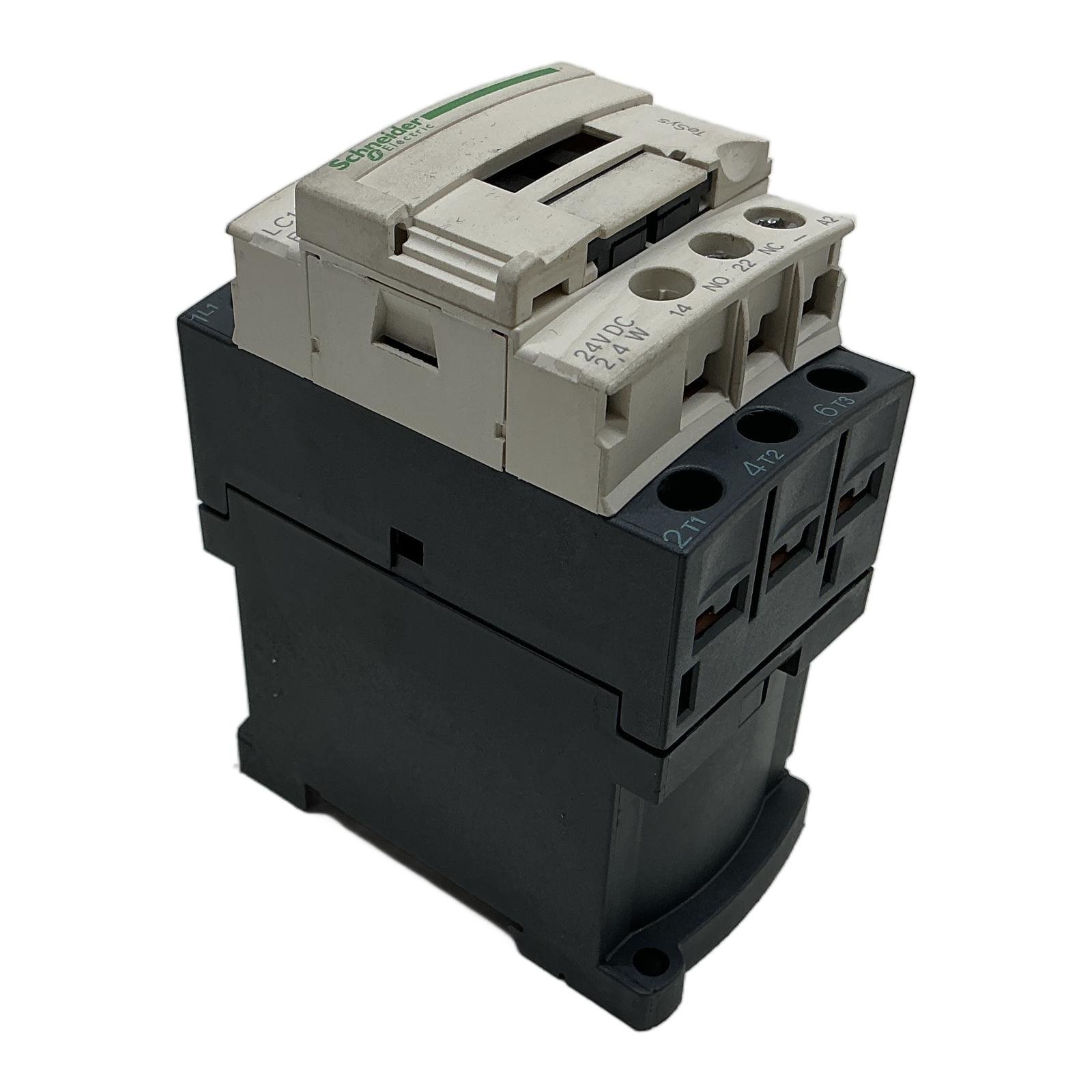 Schneider Electric TeSys D Contactor with 24V DC Coil Description This is a robust 3-pole TeSys D contactor, model LC1D09BL, from Schneider Electric. It is engineered for high-performance motor control and resistive load switching. Featuring a 24V DC low-consumption coil, it is ideal for modern automation systems controlled by PLCs. This unit comes complete with an integrated LAD4TBDL surge suppressor to protect your sensitive electronics. Its reliability and long electrical life make it a top choice for industrial applications. Order now from profideals for expert support and fast delivery. Specifications Manufacturer: Schneider Electric Series: TeSys D Model: LC1D09BL Coil Voltage: 24V DC (Low Consumption, 2.4 W) Main Contacts: 3-Pole Rated Operational Current (AC-3, 440V): 9 A Motor Power Rating (AC-3, 400V): 4 kW Auxiliary Contacts: 1 NO (Normally Open), 1 NC (Normally Closed) Surge Suppressor Module: LAD4TBDL included Label Info Ith: 25A Ui: 690V 50/60Hz Uimp: 6kV Standards: IEC/EN 60947-4-1, UL, CSA Application Designed for controlling three-phase motors, pumps, fans, conveyors, and other industrial machinery. Its low-power DC coil makes it particularly suitable for applications requiring direct interface with programmable logic controllers (PLCs) or other digital control systems. Country of Origin Made in France. CO2 Impact Opting for a reconditioned part like this one prevents the emission of approximately 14 kg of CO2, which is comparable to driving a car for 70 kilometers. This choice supports a circular economy and reduces industrial waste. Availability This item is in stock and available for immediate dispatch. We ship worldwide. FAQ What is the purpose of the LAD4TBDL module attached to this LC1D09BL contactor?The LAD4TBDL is a transient voltage surge suppressor (TVSS), specifically a bidirectional peak limiting diode. It is designed to clip voltage spikes generated when the 24V DC coil is de-energized, protecting sensitive control electronics like PLC outputs from potential damage. Can I use this contactor for a single-phase motor?Yes, you can. While it is a 3-pole contactor designed for three-phase applications, you can wire it for single-phase use. Refer to the manufacturer’s documentation for correct wiring diagrams to ensure all poles share the load appropriately and to prevent premature wear. What does the ‘BL’ in the part number LC1D09BL signify?The ‘BL’ suffix in the Schneider Electric TeSys D series indicates a low-consumption 24V DC coil. This type of coil requires significantly less power to hold the contactor in the closed position, making it highly efficient and suitable for direct control by PLC outputs without the need for an interposing relay. profideals is not an authorized distributor, reseller or representative of the products featured on this website. All product names, trademarks, brands and logos used on this site are the property of their respective owners. Last Update: Friday, March 13, 2026