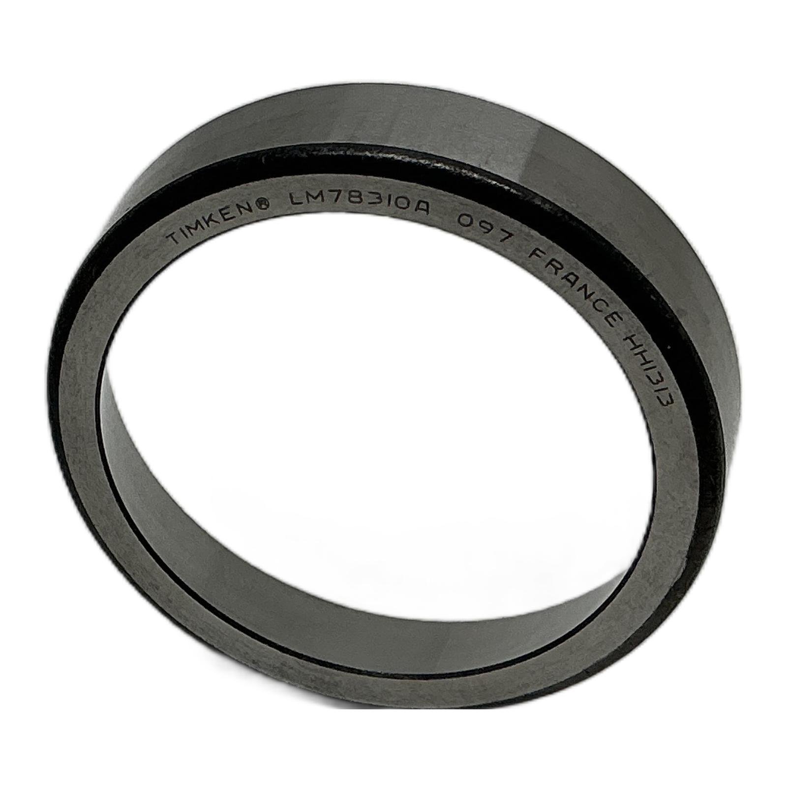 Timken LM78310A Tapered Roller Bearing Cup Description The Timken LM78310A is a single cup (outer ring) for a tapered roller bearing, designed to be used with a corresponding cone assembly (LM78349). Manufactured from high-quality, case-hardened steel, it provides superior durability and reliability for applications subjected to heavy radial and thrust loads. This component is a crucial part of a complete bearing set used in gearboxes, automotive axles, and various industrial machinery. Specifications Manufacturer: Timken Part Number: LM78310A Component: Bearing Cup (Outer Ring) Outer Diameter: 82.550 mm (3.2500 in) Width: 21.430 mm (0.8437 in) Material: Case-Hardened Bearing Steel Label Info TIMKEN LM78310A-20082 EAN: 053893402886 Application This bearing cup is commonly used in automotive transaxles, industrial gear reducers, and agricultural equipment where robust performance and long service life are required. Country of Origin Made in France. CO2 Impact Choosing this component saves approximately 0.52 kg of CO2 compared to manufacturing a new one, contributing to a more sustainable operation. Availability This item is in stock and ready for immediate dispatch. Order now from profideals for expert support and fast delivery. FAQ What cone assembly is compatible with the LM78310A cup?The LM78310A cup is designed to be paired with the Timken LM78349 cone assembly to form a complete single-row tapered roller bearing set. Are there specific installation instructions for this bearing cup?Yes, proper installation is critical. The cup should be pressed squarely into the housing bore using a suitable press and fitting tool that applies force evenly to the cup’s face. Refer to Timken’s official maintenance and installation guides for detailed procedures and lubrication requirements. What is the material of this bearing cup and what applications is it suitable for?This bearing cup is made from high-quality, case-hardened bearing steel for durability and resistance to wear. It is suitable for a wide range of industrial applications, including automotive axles, gearboxes, and heavy machinery where high radial and axial loads are present. profideals is not an authorized distributor, reseller or representative of the products featured on this website. All product names, trademarks, brands and logos used on this site are the property of their respective owners. Last Update: Friday, March 13, 2026