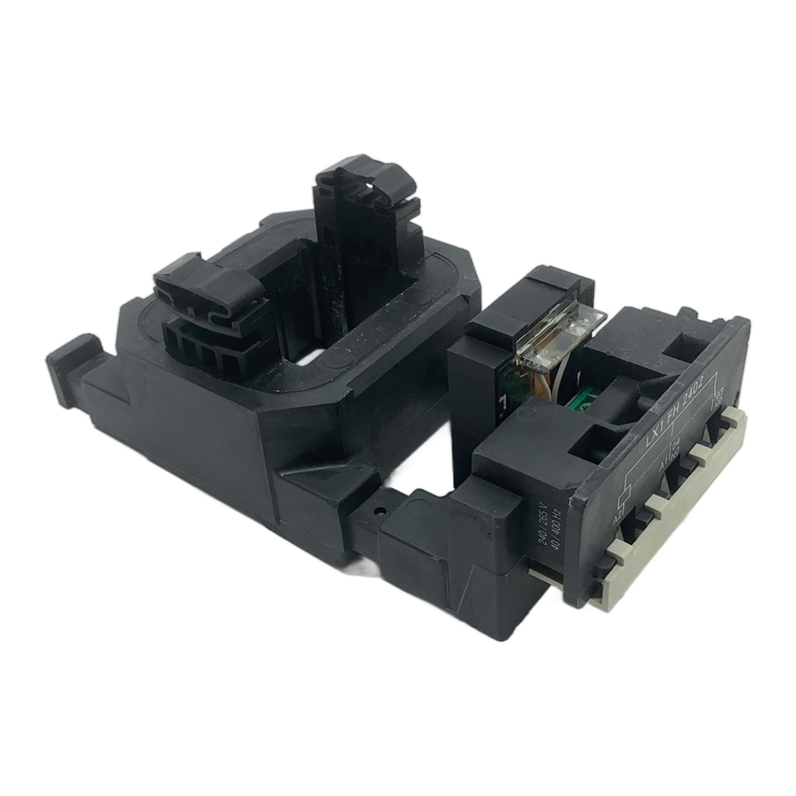 Telemecanique LX1 FH2402 Contactor Coil Description The Telemecanique LX1 FH2402 is a high-quality replacement coil designed for the TeSys F range of contactors. This component is essential for the proper electromagnetic operation of contactors, ensuring reliable switching of motor and power circuits. It operates on a versatile voltage range of 240-265V AC and a wide frequency of 40 to 400 Hz. Specifications Manufacturer: Telemecanique (Schneider Electric) Type: LX1 FH2402 Part Number: 055336 Product Type: Contactor Coil Control Circuit Voltage: 240-265V AC Operating Frequency: 40-400 Hz Compatibility: Suitable for LC1F115 to LC1F225 contactors Label Info Coil / Bobine / Spule 240/265V 40 a 400Hz LX1 FH2402 055336 Application This coil is used as a spare part for repairing or maintaining TeSys F contactors in various industrial settings, including motor control centers, HVAC systems, and manufacturing machinery. Country of Origin Made in France. CO2 Impact By choosing this pre-owned component, you are avoiding the production of a new one, which saves an estimated 10.0 kg of CO2. This is comparable to the emissions of driving a car for 50 kilometers. Availability This item is an obsolete, New Old Stock (NOS) product. Availability is limited. Order now from profideals for expert support and fast delivery. FAQ How can I verify if this LX1 FH2402 coil is compatible with my specific LC1 F contactor?This coil is designed for TeSys F contactors in the range of LC1F115 to LC1F225. To confirm compatibility, check the data sheet of your specific contactor model or inspect the old coil for a matching part number. The physical dimensions and mounting points should align perfectly. What are the symptoms of a failing contactor coil like this one?Common symptoms of a failing coil include the contactor not pulling in (closing the contacts) when voltage is applied, a humming or buzzing sound louder than usual, or intermittent operation. Overheating of the coil body is also a clear sign of an internal fault. The specified frequency range is 40-400 Hz. Can I use this on a standard 50Hz or 60Hz supply?Yes, absolutely. The wide frequency range of 40-400 Hz makes this coil suitable for standard 50Hz and 60Hz power systems, as well as specialized applications like those found in aviation or military equipment. The coil will function correctly within this entire range. profideals is not an authorized distributor, reseller or representative of the products featured on this website. All product names, trademarks, brands and logos used on this site are the property of their respective owners. Last Update: Friday, March 13, 2026