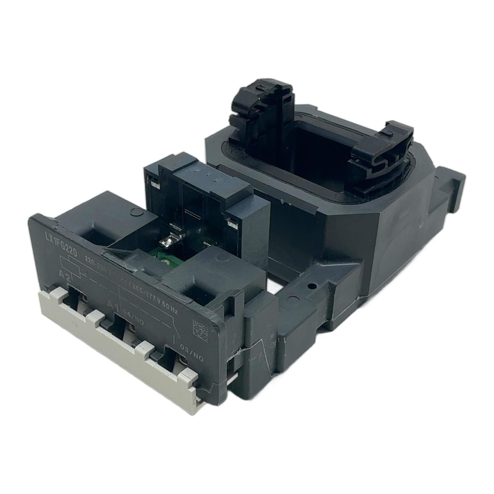 Schneider Electric LX1FG220 TeSys F Contactor Coil Description The LX1FG220 is a high-quality replacement coil designed for the Schneider Electric TeSys F range of contactors. This component is essential for the electromagnetic operation of contactors, providing reliable switching for demanding motor control applications. It operates on a control circuit voltage of 220-230V AC at 50/60 Hz. Specifications Manufacturer: Schneider Electric Product Range: TeSys F Model: LX1FG220 Product Type: Contactor Coil Control Circuit Voltage: 220-230V AC at 50 Hz, 265-277V AC at 60Hz Compatibility: Suitable for TeSys F contactors LC1F115 through LC1F265 Average Resistance: 104 Ohm at 20 deg C Label Info Brand: Schneider Electric Part Number: LX1 FG220 Commercial Reference: 008326 EAN: 3389110083262 Application This coil is used as a spare part for repairing or maintaining TeSys F contactors in various industrial environments, including manufacturing, HVAC, and material handling systems, to ensure continued and reliable operation. Country of Origin Made in Czech Republic. CO2 Impact By purchasing this pre-owned component, you are helping to avoid the emission of 18.8 kg of CO2, which is equivalent to the carbon footprint of manufacturing a new unit. This is comparable to driving a car for 94 kilometers. Availability This item is in stock and ready for immediate dispatch. Order now from profideals for expert support and fast delivery. FAQ How can I verify if this LX1FG220 coil is compatible with my specific TeSys F contactor?The LX1FG220 coil is designed for Schneider Electric TeSys F contactors in the range of LC1F115 to LC1F265. Always check the datasheet of your contactor to confirm the correct coil replacement part number before installation. What is the inrush and sealed power consumption of this coil?The inrush power consumption at 20 deg C is approximately 650-800 VA, and the sealed (holding) consumption is around 6-10 VA at 50/60 Hz. These values are crucial for calculating power supply requirements and heat dissipation. Does this coil have built-in surge suppression?No, the standard LX1FG220 coil does not include a built-in surge suppression device. For applications requiring surge protection, a separate suppressor module, such as the LA4DFB, should be added. profideals is not an authorized distributor, reseller or representative of the products featured on this website. All product names, trademarks, brands and logos used on this site are the property of their respective owners. Last Update: Friday, March 13, 2026