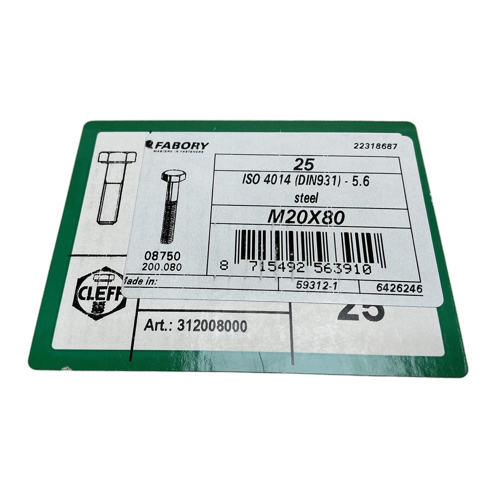 FABORY M20X80 08750 DIN931 ISO4014 5.6