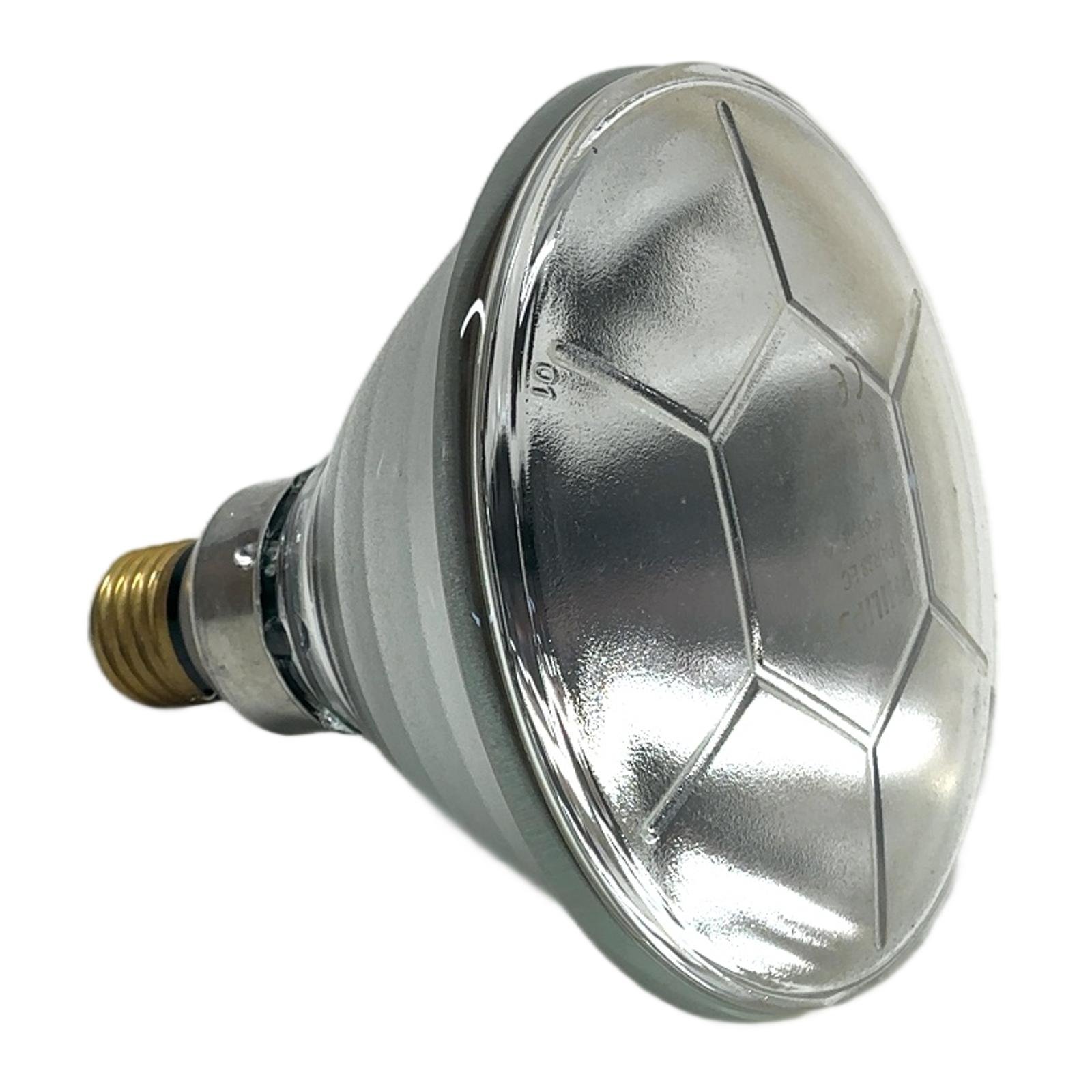 Philips PAR38 120W 24V Incandescent Reflector Lamp Description This Philips PAR38 is an incandescent reflector lamp designed for low-voltage applications. It provides a focused 10-degree spot beam of warm white light, making it suitable for specific industrial, marine, or display lighting systems requiring a 24V power supply. With its standard E27 screw base and robust construction, it’s an excellent choice for replacing lamps in legacy equipment. Specifications Brand: Philips Power: 120W Voltage: 24V Base: E27 (Edison Screw) Bulb Type: PAR38 Reflector Luminous Flux: 1545 lumens Color Temperature: 2700K (Warm White) Beam Angle: 10 degrees (Spot) Dimmable: Yes Label Info Ordering Code: 38073915 12NC: 9238 100 20511 EAN: 8711500380739 Application Perfect for specialized lighting tasks in environments with a 24V infrastructure, such as on boats, in recreational vehicles, for specific machine lighting, or in off-grid solar-powered systems. Country of Origin Made in Poland. CO2 Impact Choosing this reused component prevents the emission of approximately 12.0 kg of CO2 compared to manufacturing a new one. This saving is equivalent to the emissions from driving a car for 60 kilometers. Availability This item is an obsolete product but is available from our stock. Order now from profideals for expert support and fast delivery. FAQ Is this bulb dimmable? Yes, as an incandescent lamp, it is fully dimmable with standard dimmers compatible with low-voltage systems. What does PAR38 signify? PAR stands for Parabolic Aluminized Reflector. The number 38 indicates the diameter of the lamp in eighths of an inch, meaning this lamp is 38/8 inches or 4.75 inches (approx. 120mm) in diameter. Can I use this in a standard 230V household socket? No, this is a low-voltage 24V lamp. Connecting it directly to a 230V or 120V mains supply will instantly destroy the bulb and could create a safety hazard. It must be used with a suitable 24V transformer. profideals is not an authorized distributor, reseller or representative of the products featured on this website. All product names, trademarks, brands and logos used on this site are the property of their respective owners. Last Update: Friday, March 13, 2026