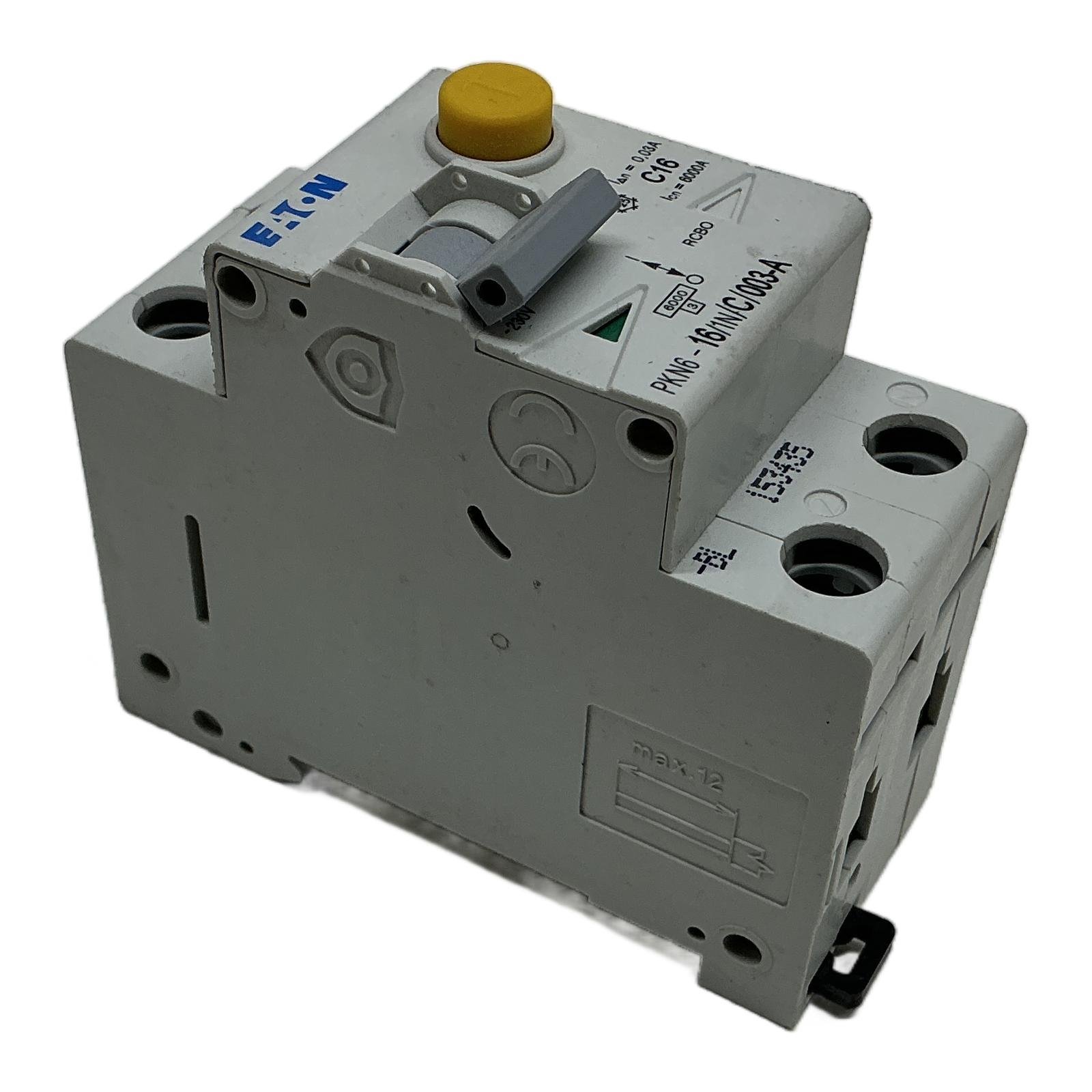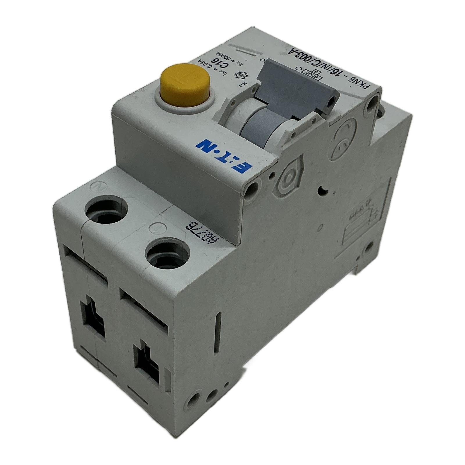 Eaton PKN6 Series RCBO Circuit Breaker Description The Eaton PKN6-16/1N/C/003-A-BL is a high-quality Residual Current Circuit Breaker with Overcurrent protection (RCBO). This device combines the functionality of a residual current device (RCD) and a miniature circuit breaker (MCB) in a single compact unit. It provides comprehensive protection for electrical circuits against short-circuits, overloads, and earth fault currents, ensuring the safety of both personnel and equipment. Specifications Manufacturer: Eaton Model: PKN6-16/1N/C/003-A-BL Article Number: 153435 Rated Current: 16 A Rated Residual Current: 30 mA Tripping Characteristic: C-Curve Number of Poles: 1P+N Rated Breaking Capacity: 6 kA Residual Current Type: A Standard: IEC/EN 61009 Label Info PKN6-16/1N/C/003-A-BL C16 / Ian=0.03A Icn=6000A EAN: 4015081502042 Application This RCBO is ideal for use in final distribution boards for residential, commercial, and industrial applications. It is particularly suited for protecting circuits with equipment that may produce pulsating DC fault currents, such as those with electronic components. Country of Origin Made in Romania. CO2 Impact Opting for this pre-owned component saves an estimated 8.0 kg of CO2 compared to manufacturing a new one. This choice supports a sustainable circular economy in the industrial sector. Availability This item is in stock and ready for immediate dispatch. Order now from profideals for expert support and fast delivery. FAQ What is the difference between a Type A and a Type AC RCBO?A Type AC RCBO is designed to trip on sinusoidal AC fault currents only. This Type A RCBO, however, trips on both sinusoidal AC and pulsating DC fault currents, offering broader protection for modern electronic equipment. What does the ‘C’ in C16 signify for this breaker?The ‘C’ refers to the tripping characteristic. C-curve breakers are designed to trip between 5 and 10 times the rated current. They are suitable for general applications with moderate inrush currents, such as lighting, sockets, and small motors. Can this 1P+N RCBO be used in a three-phase system?This is a single-phase (1 Pole + Neutral) device and is designed to protect a single-phase circuit. For a three-phase system, you would typically use a 4-pole (3P+N) RCBO or individual RCBOs for each phase if required. profideals is not an authorized distributor, reseller, or representative of the products featured on this website. All product names, trademarks, brands, and logos used on this site are the property of their respective owners. Last Update: Friday, March 13, 2026