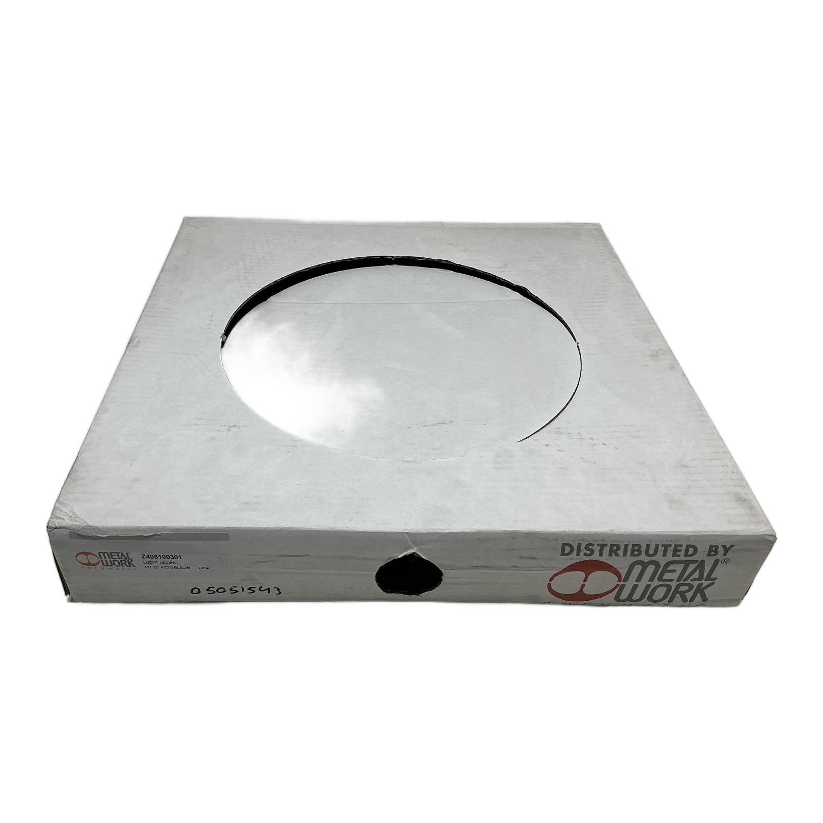 Polyurethane Pneumatic Tubing 4×2.5 Blue Product Description For sale is a 25-meter coil of high-quality Metal Work pneumatic tubing, model Z408100301. This durable blue polyurethane (PU) hose is designed for a wide range of pneumatic applications, offering excellent flexibility and resistance to abrasion. Product Specifications – Manufacturer: Metal Work- Part Number: Z408100301- Product Type: Pneumatic Tubing / Air Hose- Material: Polyurethane (PU)- Color: Blue- Length: 25 meters- Outer Diameter: 4 mm- Inner Diameter: 2.5 mm- HS Item Description: Polyurethane pneumatic tubing- HS Code (Commodity Code): 39173200 Product Label Info Model Code / Product Markings: PU slang 4×2,5 blauw Z408100301 Application This pneumatic tubing is suitable for a wide range of pneumatic applications in industrial environments. Country of Origin This product is manufactured in Italy. Method of Application Simply connect the tubing to compatible push-in fittings for reliable and efficient airflow in your automation and control systems. Safety Instructions No specific safety instructions apply to this product. Availability Order now from profideals, items in stock and ready for fast worldwide delivery. Need urgent and express delivery, sourcing, or repairs? Contact us now. Documentation Official datasheet or product page Metal Work Resources Additional resources and manuals are available upon request. Contact us for details. Internal & External Links All products from Metal Work Explore similar products in Pneumatics Frequently Asked Questions What is the Polyurethane Pneumatic Tubing 4×2.5 Blue used for? This part is typically used in industrial pneumatic systems. It handles airflow efficiently and is known for its durability. What are the key advantages of Polyurethane Pneumatic Tubing 4×2.5 Blue? It offers excellent flexibility and resistance to abrasion, ensuring reliable performance in various applications. Is PU slang 4×2,5 blauw Z408100301 compatible with my system? If you’re using Metal Work control systems, especially the compatible push-in fittings, then this model will be fully compatible. Contact us to verify. Alternatives to PU slang 4×2,5 blauw Z408100301 Consider other sizes or colors of Metal Work pneumatic tubing for your specific application requirements. Can I sell my surplus stock to profideals? Yes, profideals accepts surplus stock for resale. Contact us for more information on surplus recovery and resale agreements. Need Help? Call us at +31(0)165 20 11 80 or get in touch online. Last Update: 11/03/2026 profideals is not an authorized distributor of the products listed. Product names, trademarks, and logos belong to their respective owners. Our listings are for identification purposes only and do not imply affiliation or authorization.