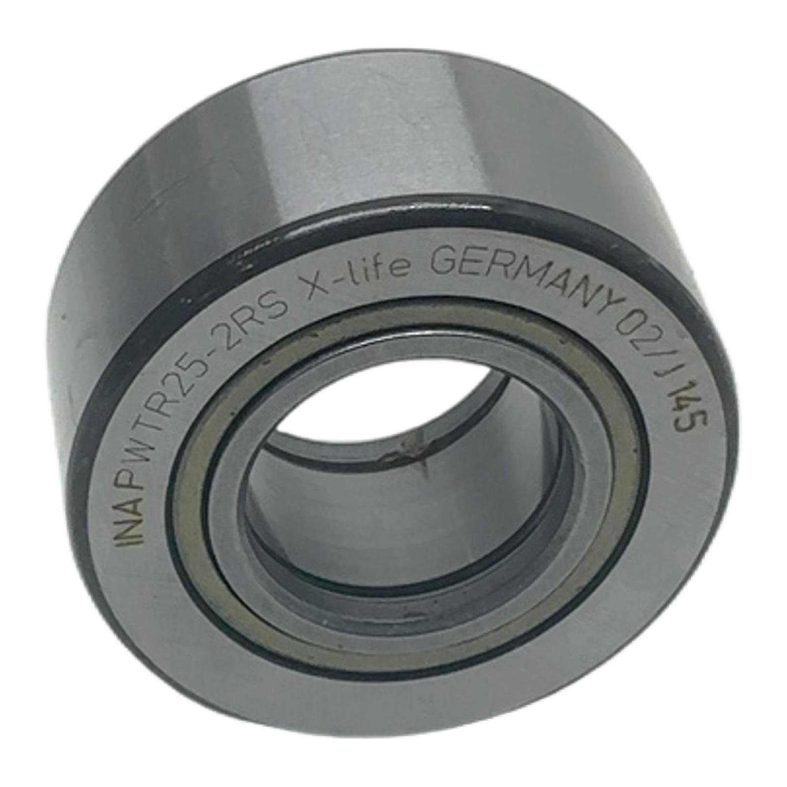 INA PWTR25-2RS-XL Yoke Type Track Roller Description The INA PWTR25-2RS-XL is a premium X-life yoke type track roller designed for high radial loads and long-term reliability. Featuring lip seals on both sides, it is well-protected against contaminants and lubricant loss, making it suitable for demanding industrial environments. This bearing is part of Schaeffler’s high-performance range, ensuring optimized operation and extended service life. Specifications Manufacturer: INA (Schaeffler Group) Type: Yoke Type Track Roller Model: PWTR25-2RS-XL Inner Diameter (d): 25 mm Outer Diameter (D): 52 mm Width (B): 25 mm Sealing: 2RS – Contact lip seals on both sides Quality: X-life for enhanced performance Label Info Part Number: PWTR25-2RS-XL Manufacturer Code: 054260116-0000-02 Application This track roller is ideal for applications such as cam drives, conveyor systems, guideways, and lifting equipment where precise and reliable linear motion is critical. Country of Origin Made in Germany. CO2 Impact Opting for this component helps avoid 0.56 kg of CO2, equivalent to driving an average car for 2.8 km. This sustainable choice supports a circular economy. Availability This item is in stock and ready for immediate dispatch. Order now from profideals for expert support and fast delivery. FAQ What does the ‘2RS’ suffix signify in the PWTR25-2RS-XL model number? The ‘2RS’ suffix indicates that the track roller is equipped with contact seals, specifically lip seals made from nitrile butadiene rubber (NBR), on both sides. These seals provide effective protection against contamination and moisture, while also retaining the grease lubricant within the bearing, ensuring a long and maintenance-free service life. How does the ‘X-life’ quality differ from a standard INA bearing? ‘X-life’ is INA’s quality seal for premium products. Bearings with this designation, like the PWTR25-2RS-XL, feature optimized internal geometry, improved surface finishes, and higher-quality materials. This results in a significantly higher dynamic load rating, lower friction, and a longer operational lifespan compared to standard non-X-life versions. Can this track roller be relubricated? No, the PWTR25-2RS-XL is a sealed bearing that is lubricated for life with a high-quality lithium complex soap grease. The integrated 2RS seals are designed to retain this initial grease fill throughout the bearing’s lifespan. Attempting to relubricate it is not necessary and could potentially damage the seals. profideals is not an authorized distributor, reseller or representative of the products featured on this website. All product names, trademarks, brands and logos used on this site are the property of their respective owners. Last Update: Friday, March 13, 2026