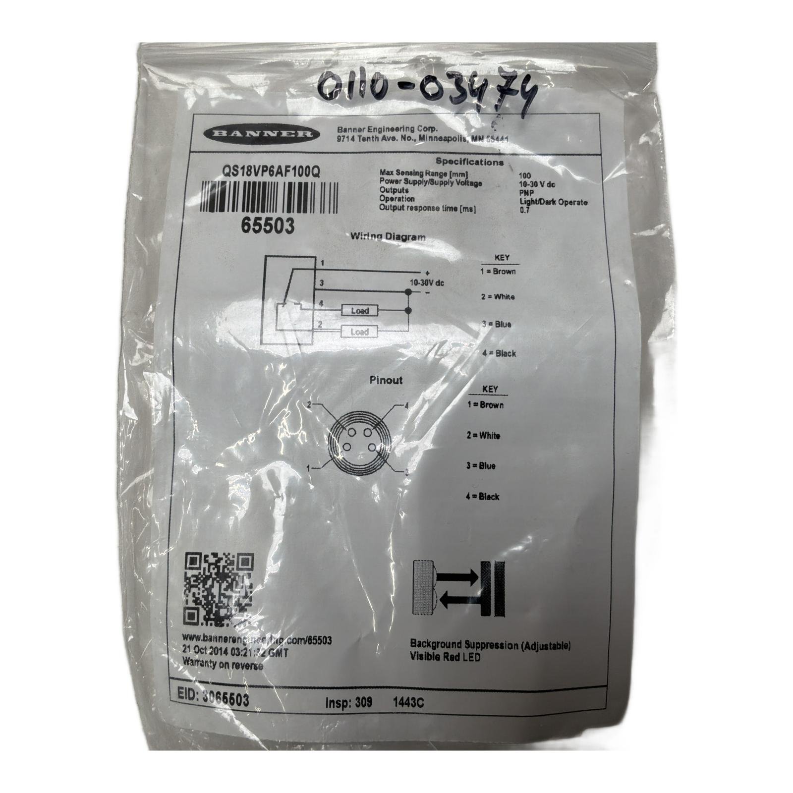 QS18VP6AF100Q Banner Photoelectric Sensor with Adjustable Background Suppression |