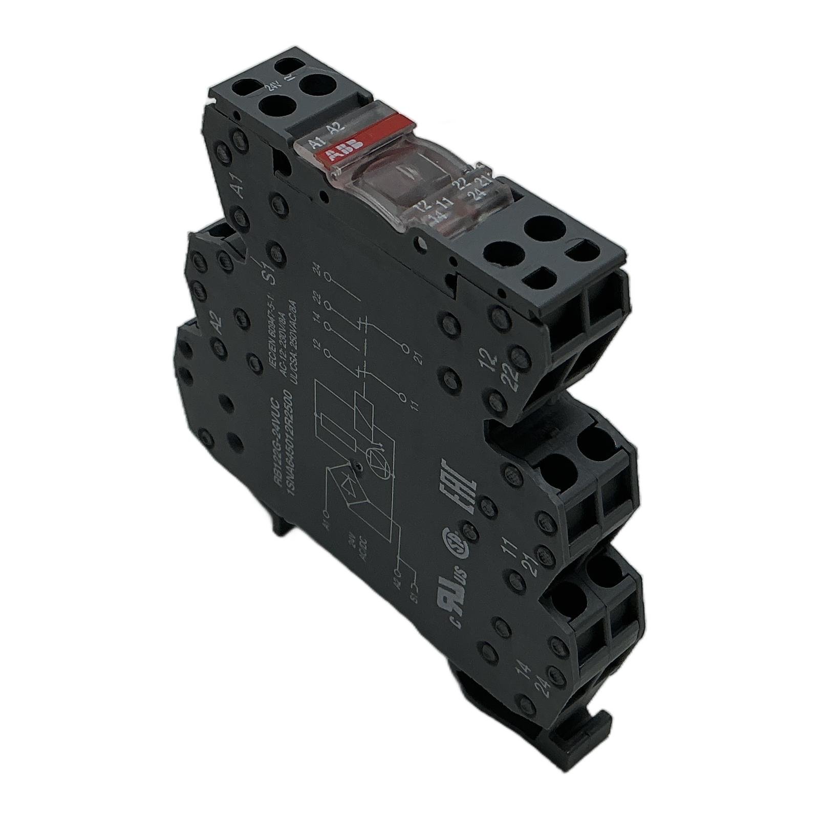 ABB Interface Relay 24V AC/DC 8A 2c/o RB122G-24VUC Description The ABB RB122G-24VUC is a high-quality pluggable interface relay designed for industrial control applications. It provides reliable galvanic isolation and signal amplification between control circuits and load circuits. This model features a universal coil that operates on 24V AC or DC, offering excellent flexibility. Its compact design for DIN rail mounting saves valuable cabinet space. Specifications Manufacturer: ABB Type: RB122G-24VUC Part Number: 1SNA645012R2500 Coil Voltage: 24V AC/DC Contact Configuration: 2 c/o (Changeover), DPDT Rated Switching Current: 8 A Rated Switching Voltage: 250V AC Mounting Type: DIN Rail Protection Degree: IP20 Label Info IEC/EN 60947-5-1 AC-12: 230V/8A UL/CSA: 250VAC/8A Application Ideal for use in industrial automation, process control, building automation, and machine building. It is commonly used for switching contactors, solenoid valves, motors, and lamps, as well as for signal multiplication. Country of Origin Made in Morocco by ABB STOTZ-KONTAKT GmbH, Germany. CO2 Impact Opting for this pre-owned component avoids the emission of approximately 2.0 kg of CO2 compared to manufacturing a new one. This saving is comparable to the emissions from a 10 km car journey. Availability This item is in stock and ready for immediate dispatch. Order now from profideals for expert support and fast delivery. FAQ What is the advantage of a 24V AC/DC universal coil?A universal AC/DC coil provides greater flexibility in control panel design. It simplifies inventory management as one relay can be used for both AC and DC control circuits, reducing the need to stock separate models. This is particularly useful in mixed-voltage environments. What does ‘2 c/o’ or ‘DPDT’ contact configuration mean?’2 c/o’ stands for two changeover contacts, also known as Double Pole Double Throw (DPDT). This means the relay has two independent sets of contacts. Each set has a common terminal, a normally open (NO) terminal, and a normally closed (NC) terminal. This allows the relay to control two separate circuits, for example, turning one device on while simultaneously turning another off. Can the relay module itself be replaced without rewiring the base?Yes, this is a key feature of a pluggable interface relay. The relay module (the clear plastic component) can be easily pulled out of the base (the grey socket with screw terminals) and replaced with a new one. This significantly reduces downtime and maintenance effort as the field wiring remains connected to the base. profideals is not an authorized distributor, reseller or representative of the products featured on this website. All product names, trademarks, brands and logos used on this site are the property of their respective owners. Last Update: Friday, March 13, 2026