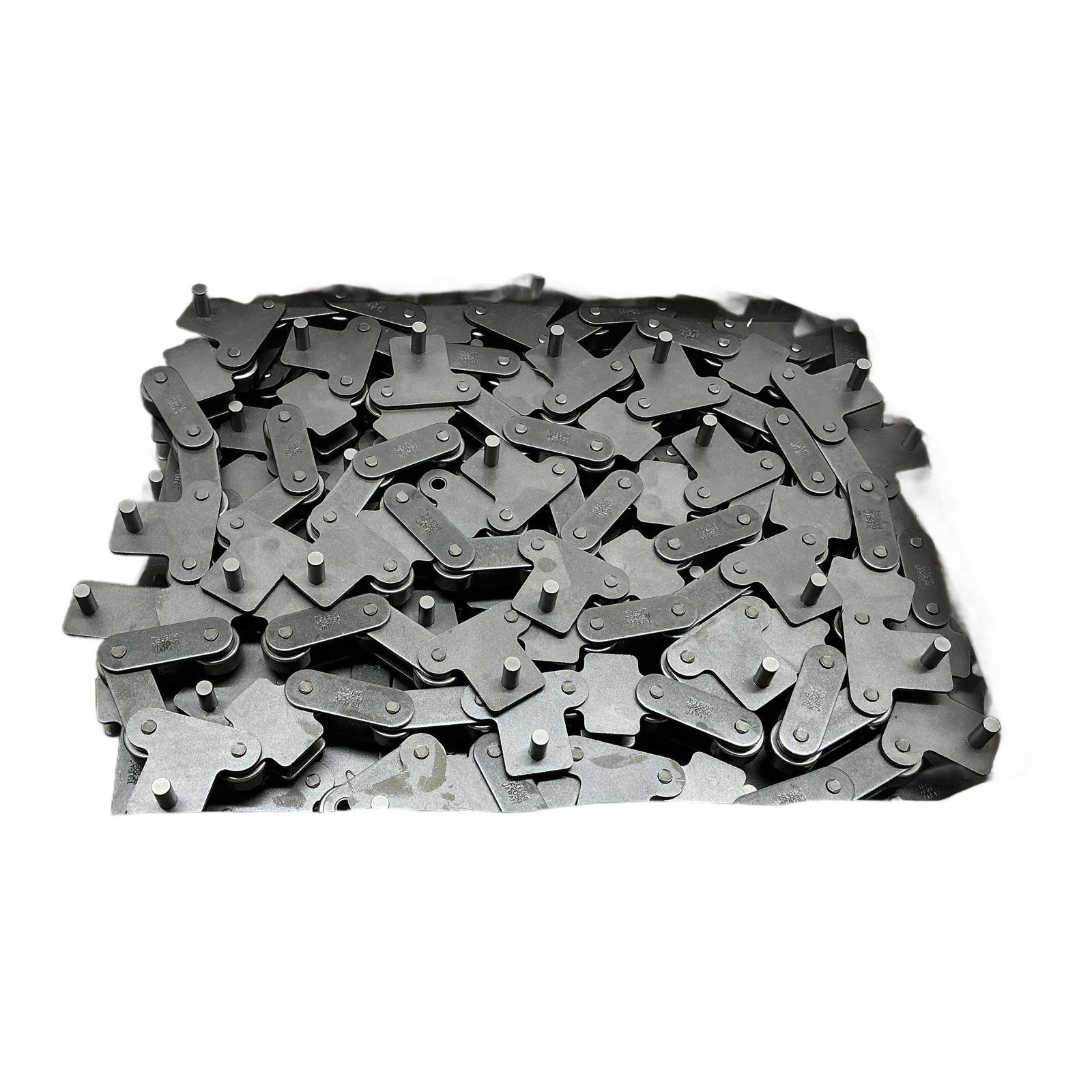 Tsubaki RF2050R Custom Conveyor Chain Description This is a new-in-box Tsubaki RF2050R Double Pitch Conveyor Chain. Manufactured in Japan, this chain is engineered for reliability and long service life in demanding industrial environments. It features a special configuration with SA1 and SKKO attachments, making it suitable for specific conveying applications requiring custom product carriers. The product is in its original packaging, ensuring it is well-preserved. Specifications Manufacturer: Tsubaki Part Number: RF2050R 1 RP 4L SPCL SA1 WITH ATTACH PIN AND 4L SPCL SKKO (RL Chain Type: Double Pitch Roller Chain Series: RF2050 Roller Type: R-Roller (Standard) Pitch: 38.10 mm (1.500 in) Attachments: Custom SA1 and SKKO configuration Material: Steel Label Info P/N: P102000245 Order No: EEC3612701 Quantity: 4 pieces, 96 links each Application Ideal for use in custom conveyor systems across various industries, including packaging, automotive, food processing, and general manufacturing, where precise product movement and support are critical. Country of Origin Made in Japan. CO2 Impact Opting for this surplus chain instead of a new one prevents the emission of approximately 30 kg of CO2, contributing to a more sustainable industrial operation. Availability This item is in stock and ready for immediate dispatch. Order now from profideals for expert support and fast delivery. FAQ What is the pitch of the Tsubaki RF2050R chain?The RF2050R chain has a double pitch of 38.10 mm or 1.500 inches. Can this custom attachment configuration be modified?As a pre-manufactured chain, this specific configuration cannot be easily modified. However, the attachments are designed for specific tasks. For different needs, a new custom chain would need to be ordered from the manufacturer. What is the recommended lubrication method for this type of conveyor chain?For optimal performance and longevity in a standard industrial environment, periodic manual lubrication with a high-quality chain lubricant or an automatic drip-feed lubrication system is recommended. profideals is not an authorized distributor, reseller or representative of the products featured on this website. All product names, trademarks, brands and logos used on this site are the property of their respective owners. Last Update: Friday, March 13, 2026