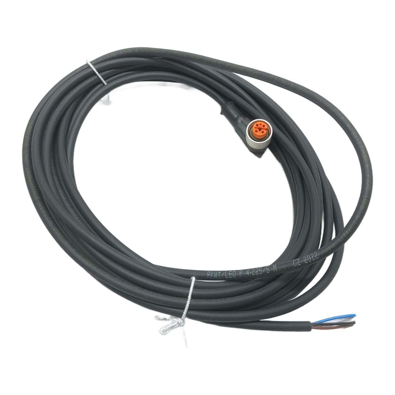 Belden 5m Sensor/Actuator Cable with M12 Connector Description This is the Belden (Lumberg Automation) sensor/actuator cordset, model RKWT/LED P 4-225/5 M with part number 934 656 105. It is a single-ended cable assembly featuring a robust, angled female M12 connector and 5 meters of high-quality PUR cable. The integrated LEDs provide instant visual feedback on operational status, making it ideal for automation, robotics, and manufacturing applications where reliability and quick diagnostics are essential. Specifications Manufacturer: Belden (Lumberg Automation) Part Number: 934 656 105 Model: RKWT/LED P 4-225/5 M Connector Type: M12 Female, Angled Number of Poles: 4-Pole, A-Coded Cable Length: 5 meters Cable Jacket Material: PUR (Polyurethane), black LED Indicators: 3 (Power, N/O, N/C) Operating Voltage: 10-30V DC Protection Class: IP67 / IP69K (when properly mated) Label Info On Cable: RKWT/LED P 4-225/5 M Date Code: CZ-2022 Application Perfect for connecting sensors, actuators, and other field devices in industrial automation systems. The durable PUR jacket ensures longevity in environments with exposure to oils, chemicals, and mechanical stress. Country of Origin This product is manufactured in the Czechia. CO2 Impact Choosing this reused industrial part saves an estimated 10.0 kg of CO2, equivalent to the emissions from driving a standard car for 50 kilometers. Make a sustainable choice for your operations. Availability This item is in stock and ready for immediate dispatch. Order now from profideals for expert support and fast delivery. FAQ What do the LEDs on the M12 connector indicate?The three LEDs provide visual status for power (green), and switching states for normally open (N/O – yellow) and normally closed (N/C – yellow) signals, which is typical for PNP sensors. What is the benefit of the PUR (Polyurethane) cable jacket?A PUR jacket offers excellent resistance to oils, coolants, and chemicals, as well as high abrasion resistance. This makes the cable suitable for use in demanding industrial environments like machine tools and automotive manufacturing. Is this cable suitable for drag chain (C-track) applications?While the PUR jacket is durable, this specific model (225 cable type) is not explicitly rated for high-flex or continuous motion in drag chains. For such applications, a cable with a specific high-flex rating should be selected. profideals is not an authorized distributor, reseller or representative of the products featured on this website. All product names, trademarks, brands and logos used on this site are the property of their respective owners. Last Update: Friday, March 13, 2026