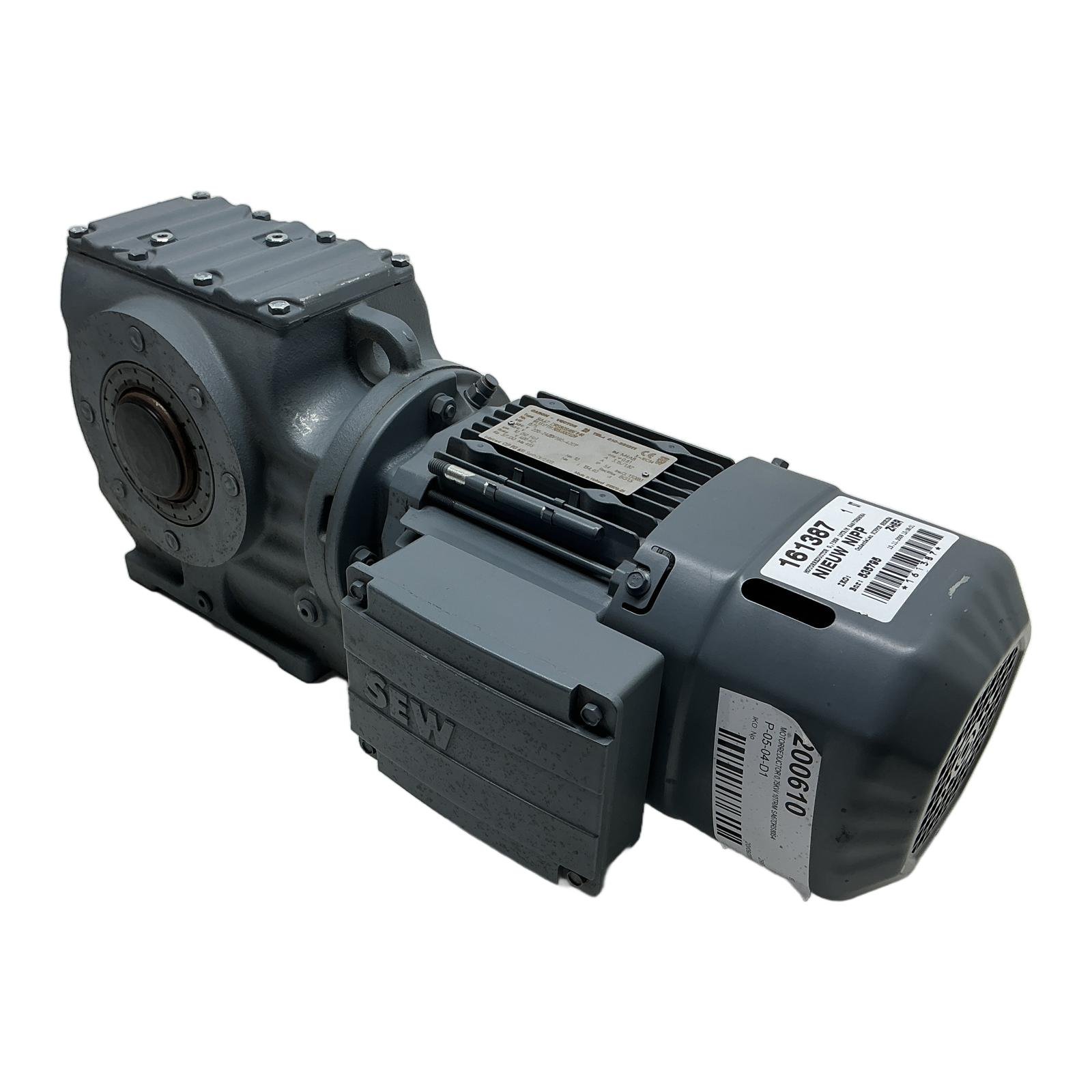 SEW-EURODRIVE SA67 Helical-Worm Gear Motor 0.75 kW Description This is a high-quality SEW-EURODRIVE SA67 helical-worm gear motor, featuring a 0.75 kW (1.0 HP) DRS80S4 induction motor. The SA67 series is specifically designed for smooth and quiet operation, combining the high efficiency of a helical gear stage with the compact torque transmission of a worm gear. This specific unit is equipped with an integrated BE1 brake and a manual HR (Hand Release) lever, making it an excellent choice for applications requiring precise stopping and safety overrides. The motor is in excellent condition and built to meet rigorous industrial standards. Specifications Manufacturer: SEW-EURODRIVE Gear Unit Model: SA67 (Helical-Worm) Motor Model: DRS80S4BE1HR Power: 0.75 kW (1.0 HP) Motor Speed: 1420 RPM (at 50Hz) Brake Type: BE1 (Integrated Disc Brake) Manual Release: HR (Hand Release Lever) Protection Class: IP54 / IP55 Total Mass: 32.0 kg Label Info Mounting Position: M1 (Standard Horizontal) Brake Voltage: Typically 230V or 400V AC (Refer to nameplate for exact coil voltage) Application Perfect for conveyors, small hoists, packaging machines, and theater technology where quiet operation and safety braking are essential. The manual release lever is particularly useful for maintenance or emergency situations where the load needs to be moved without power. Country of Origin Precision-engineered and manufactured by SEW-EURODRIVE in Germany. CO2 Impact Opting for this component saves an estimated 64.0 kg of CO2 compared to manufacturing a new one, which is comparable to driving a car for 320 km. Availability This item is in stock and ready for immediate dispatch. Order now from profideals for expert support and fast delivery. FAQ What is the advantage of the SA67 helical-worm design? The helical-worm combination is significantly more efficient than a pure worm gearbox while remaining much quieter than a pure helical unit. It allows for high reduction ratios in a very compact right-angle housing. How does the BE1 brake and HR manual release work? The BE1 is an electromagnetic disc brake that engages automatically when power is cut (fail-safe). The HR manual release allows an operator to manually pull a lever to release the brake, permitting the shaft to be rotated by hand during setup or power failure. Can this gear motor be mounted in any orientation? The “SA” prefix usually denotes a hollow shaft version. While the motor is versatile, the lubrication level is specific to the mounting position (e.g., M1, M2, M3). Ensure the oil level matches your intended mounting orientation to prevent overheating or seal failure. profideals is not an authorized distributor, reseller or representative of the products featured on this website. All product names, trademarks, brands and logos used on this site are the property of their respective owners. Last Update: Thursday, March 19, 2026